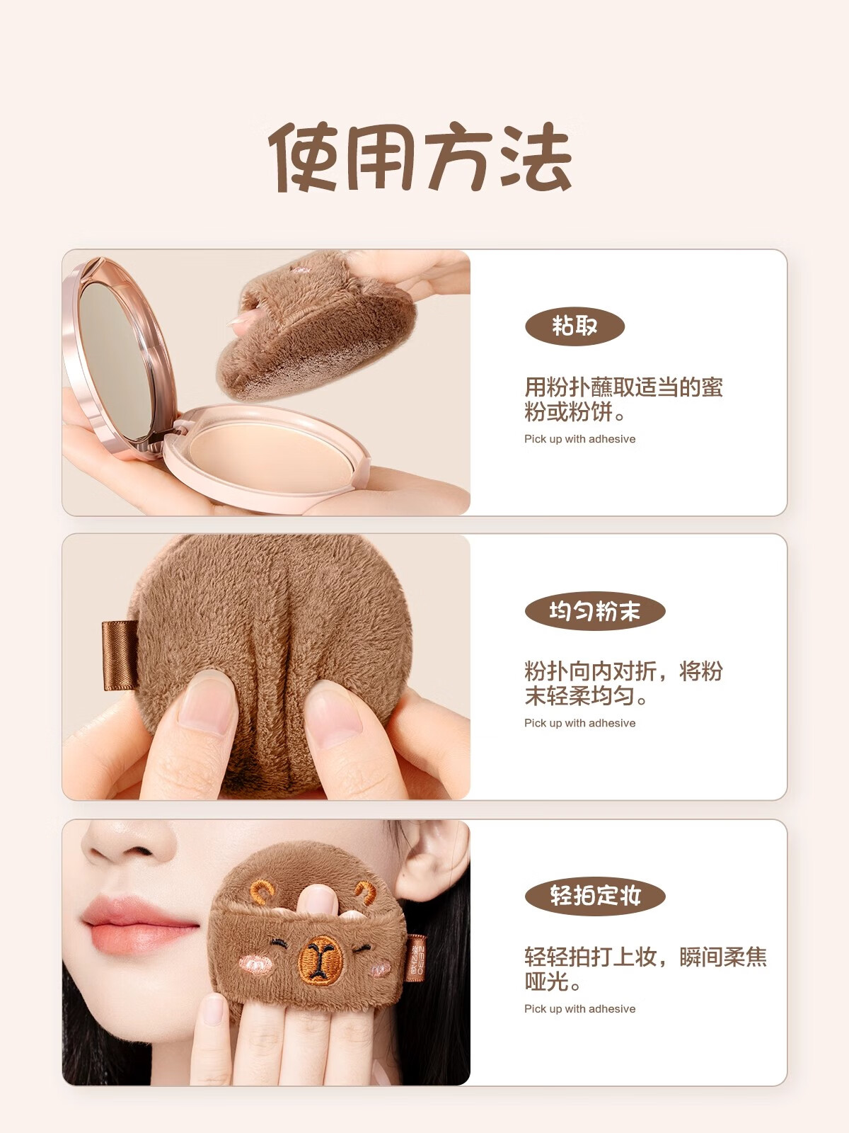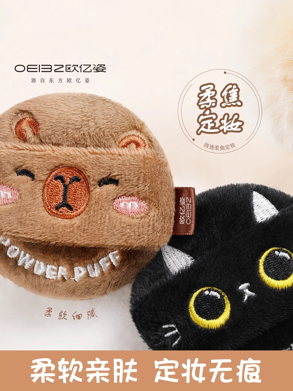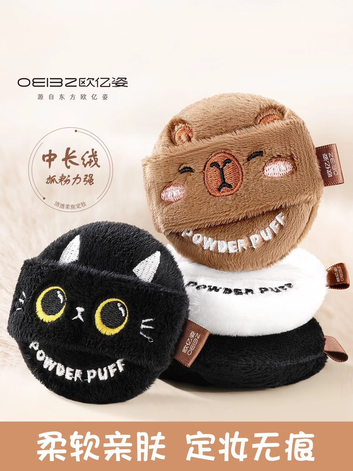 欧亿姿(oeiez)散粉扑长绒定妆粉扑植绒粉扑不易吃粉服帖不掉绒取粉力强1枚装