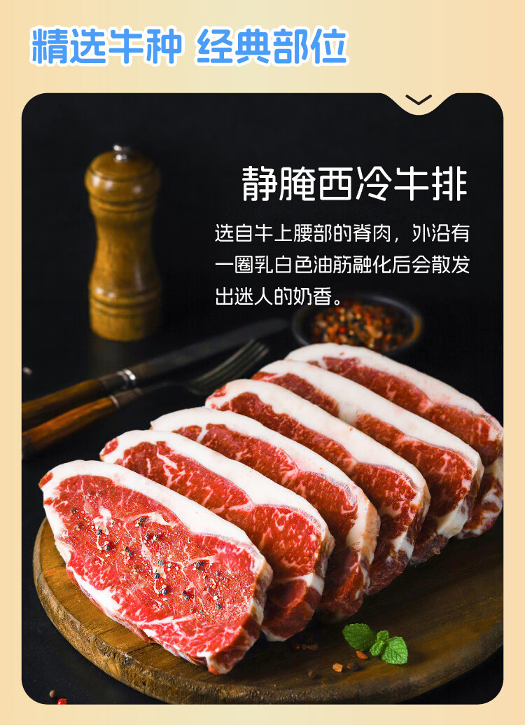 犇西诗原切静腌 静腌劲骨西冷静腌西冷牛排2040g 火锅烧烤牛肉食材 【2070g】西冷520g+劲骨西冷500g*2+带骨眼肉战斧550g