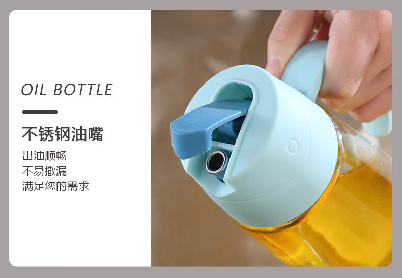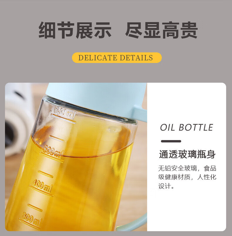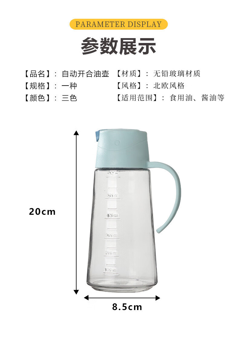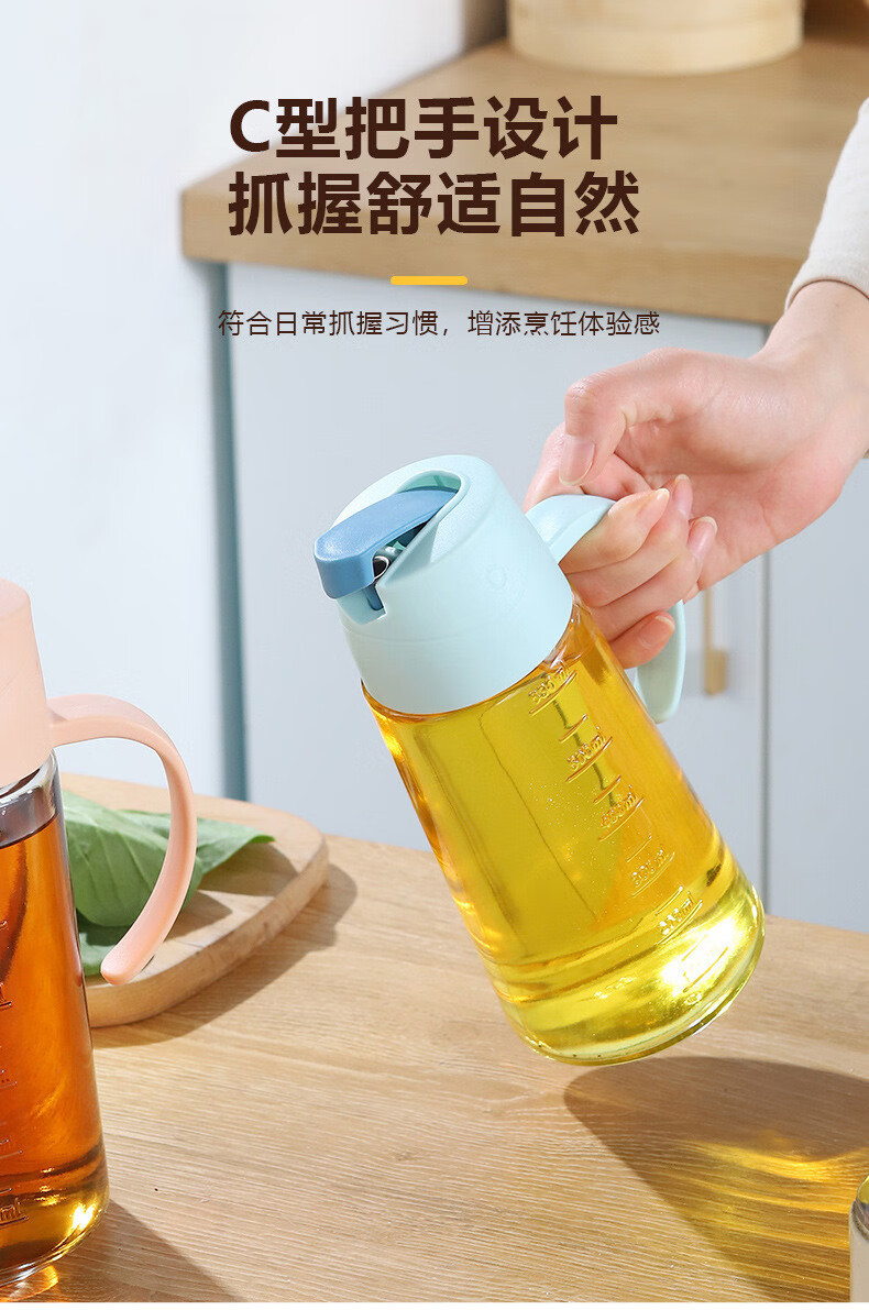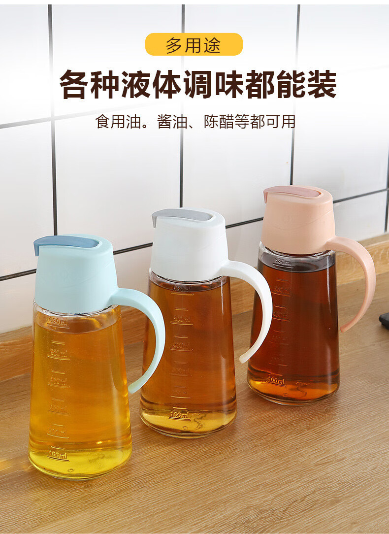 自动开合油壶大容量玻璃防漏油罐家用油瓶不挂油酱油醋壶调料瓶子 粉色