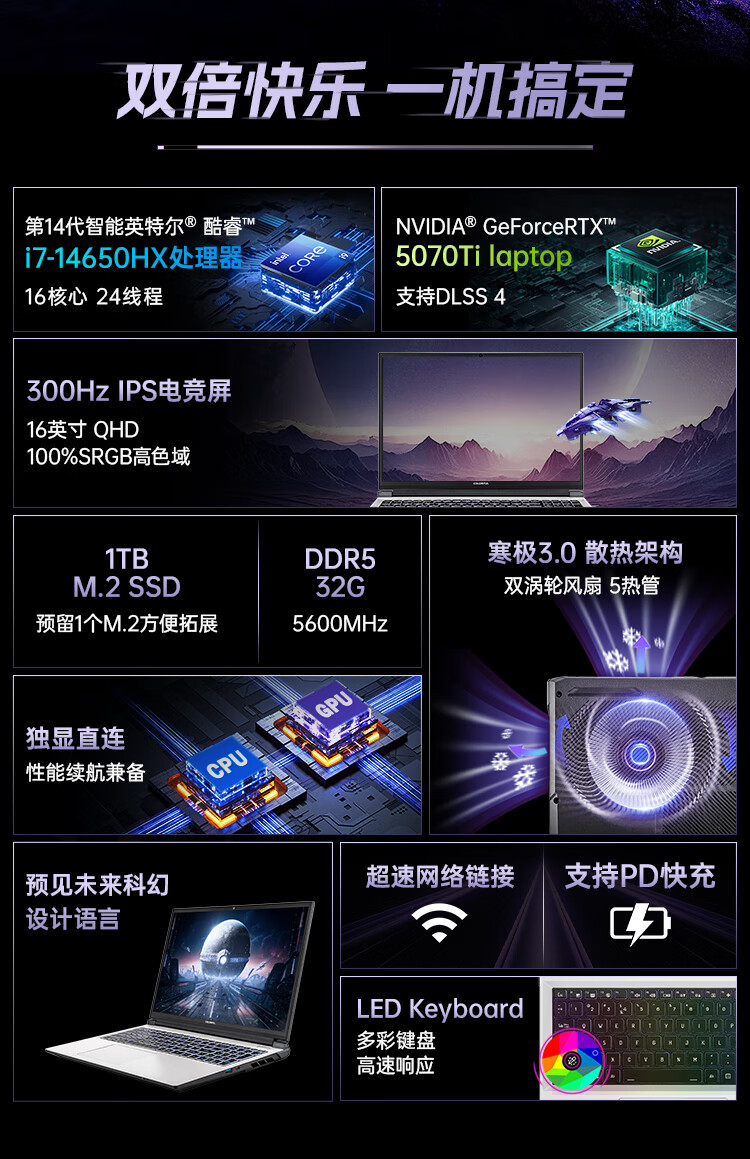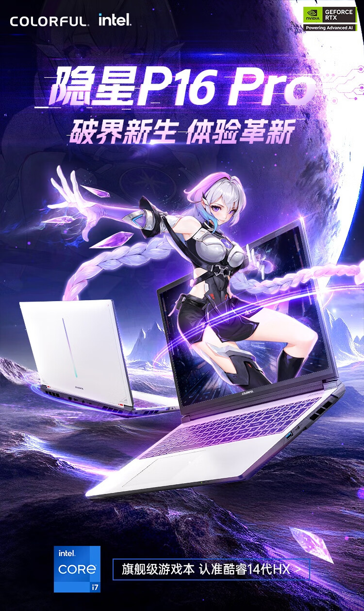 七彩虹(Colorful)隐星P16 Pro 14代酷睿i7 16英寸游戏笔记本电脑(i7-14650HX 32G 1T RTX5070 Ti 300Hz)