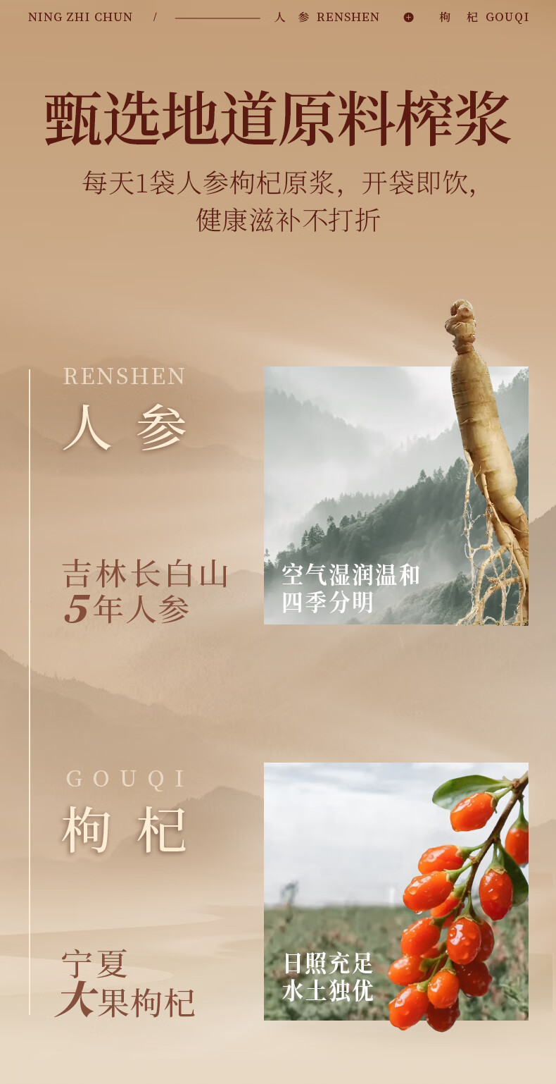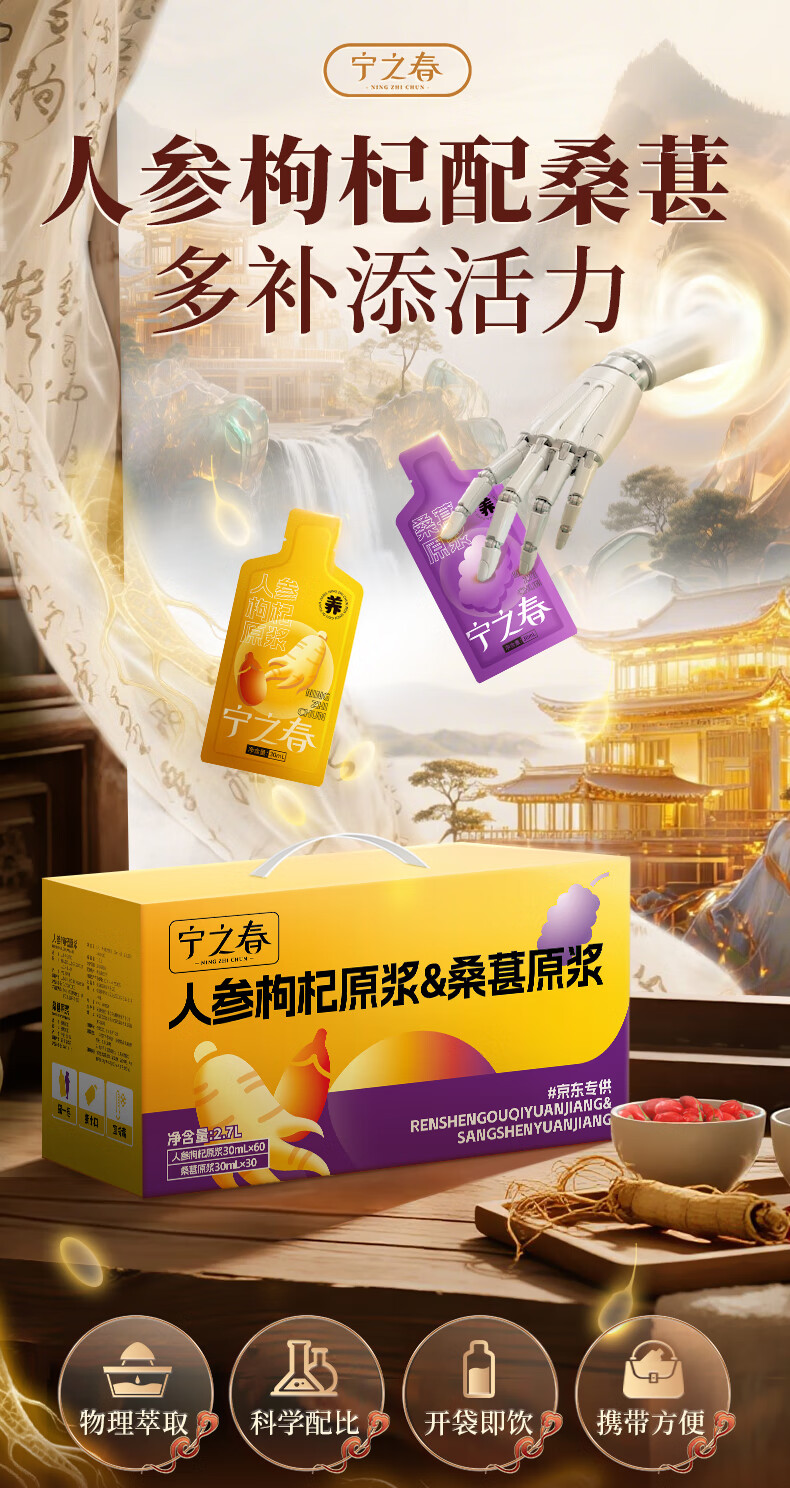 宁之春 人参枸杞桑葚原浆2.7L年货节礼品盒5年人参不添加送长辈过年礼物
