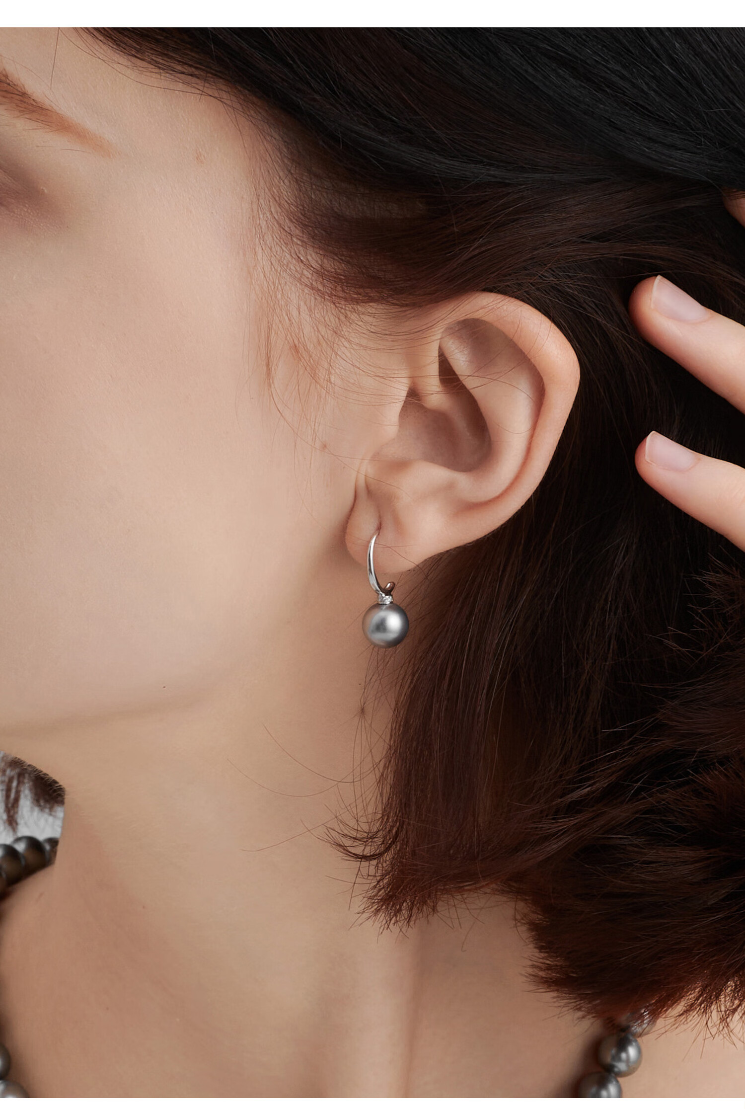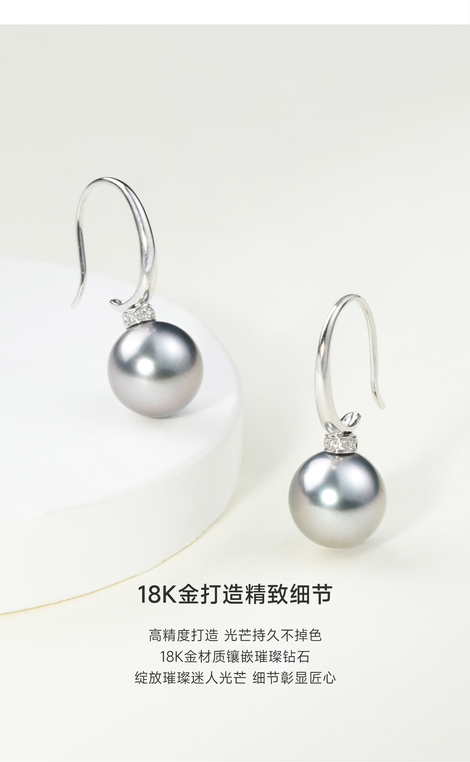 GiO珠宝 大溪地黑珍珠耳饰18K金海水珍珠耳坠耳钩新年礼物送老婆 18K金 珍珠8-9mm
