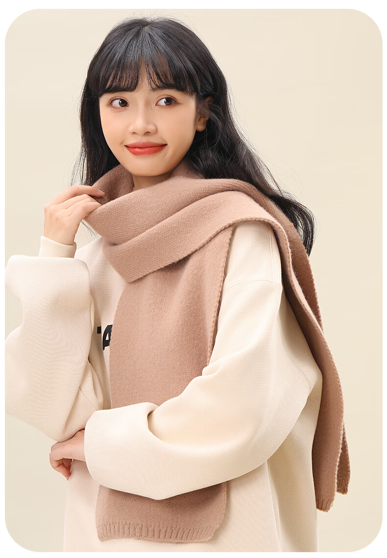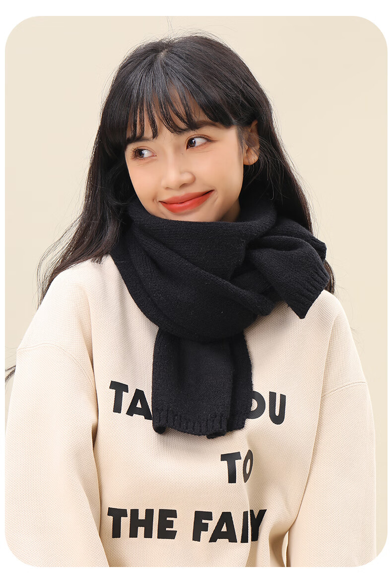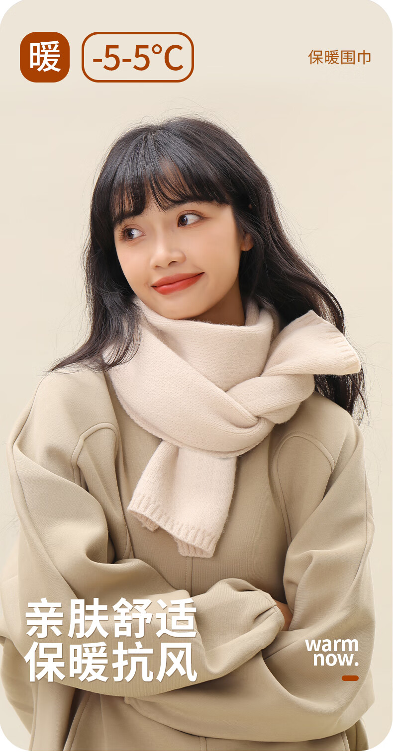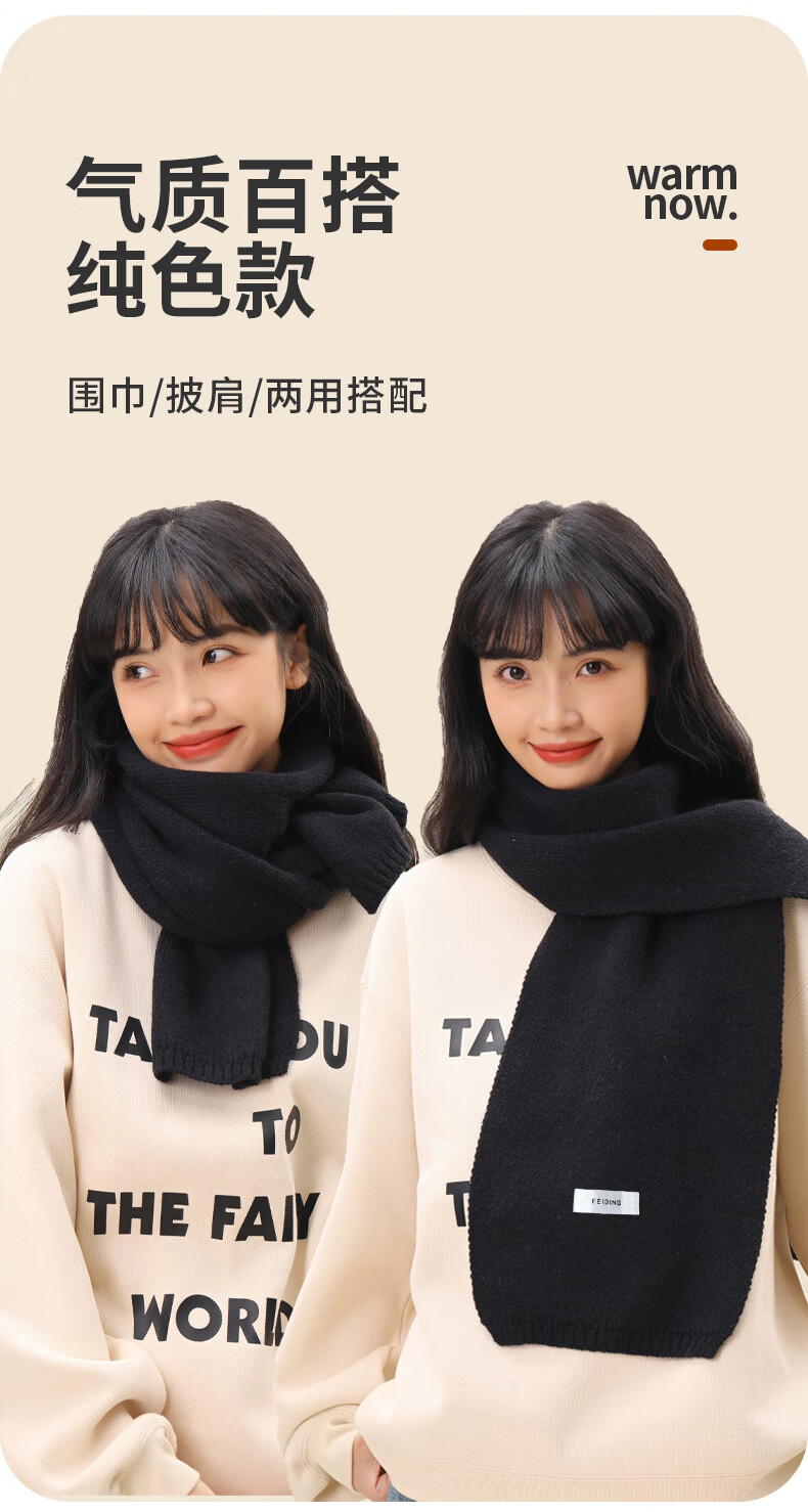俞兆林围巾女士秋冬百搭高级感保暖仿羊绒针织围巾加厚围脖 天蓝色