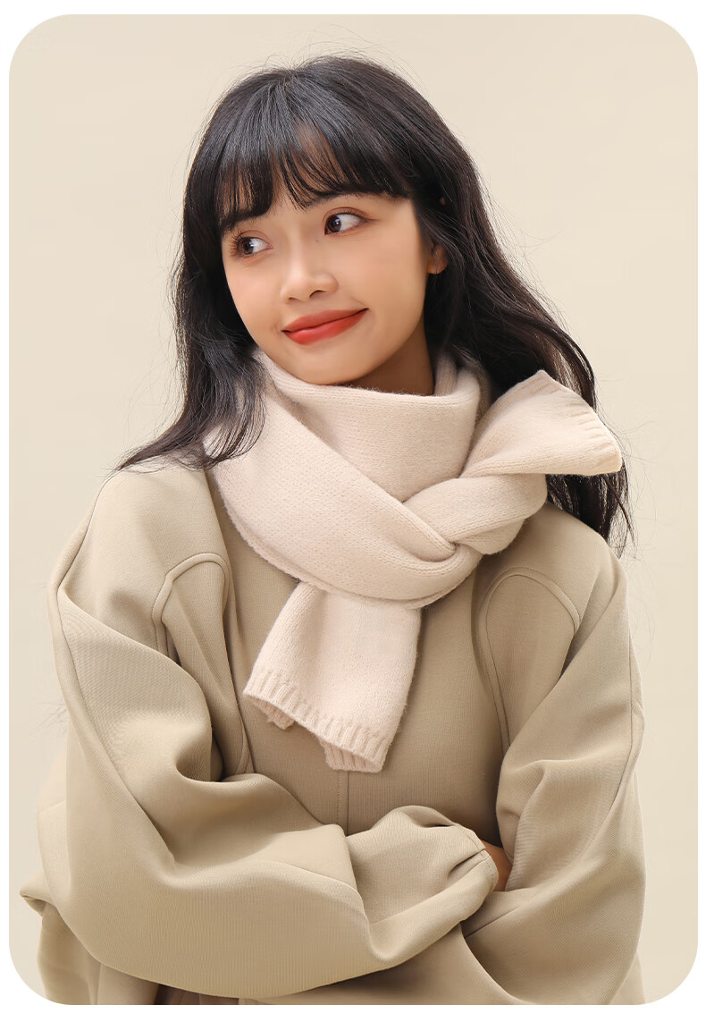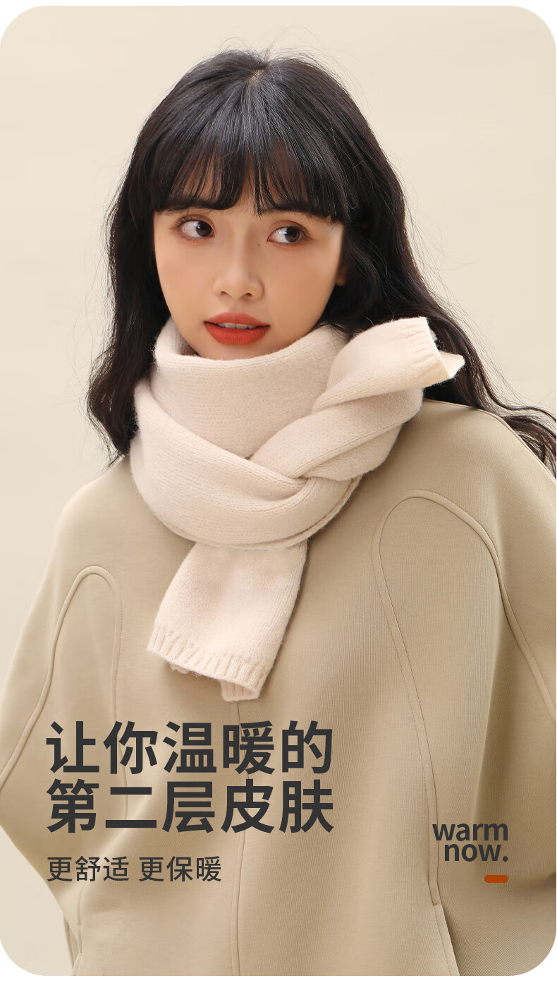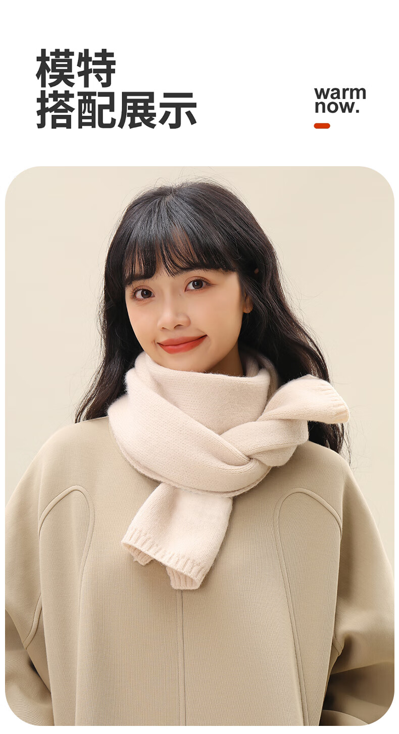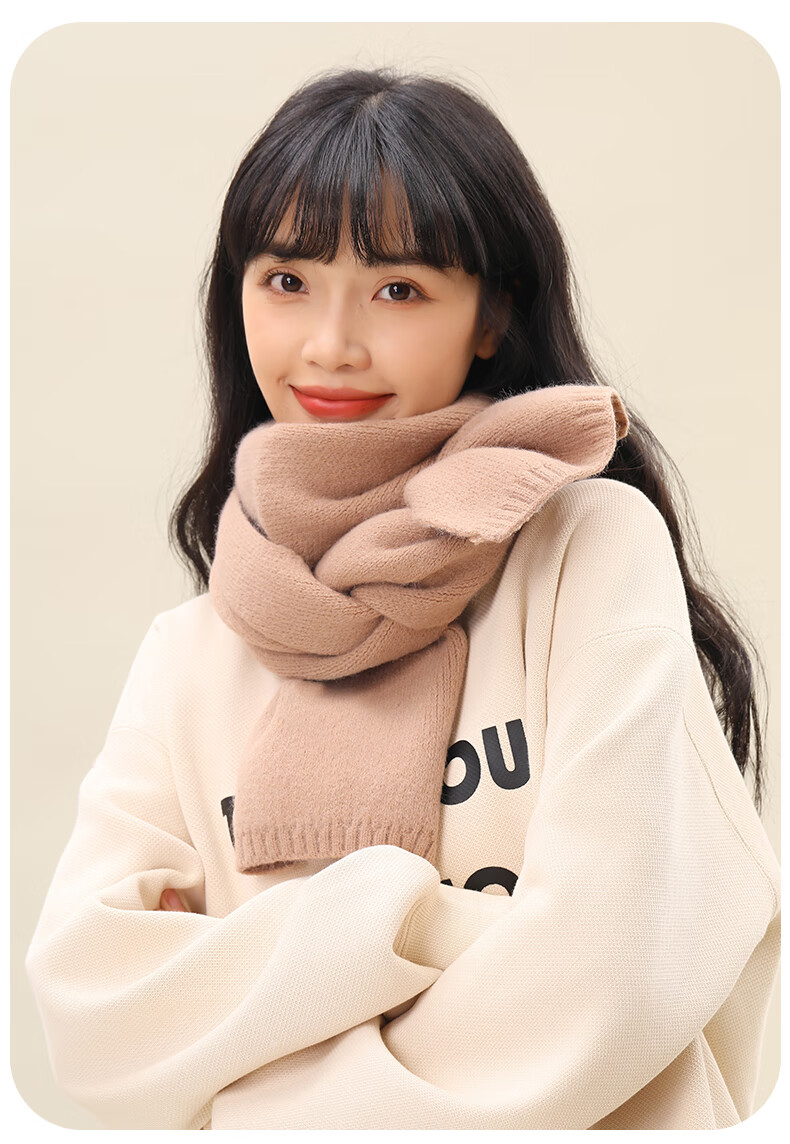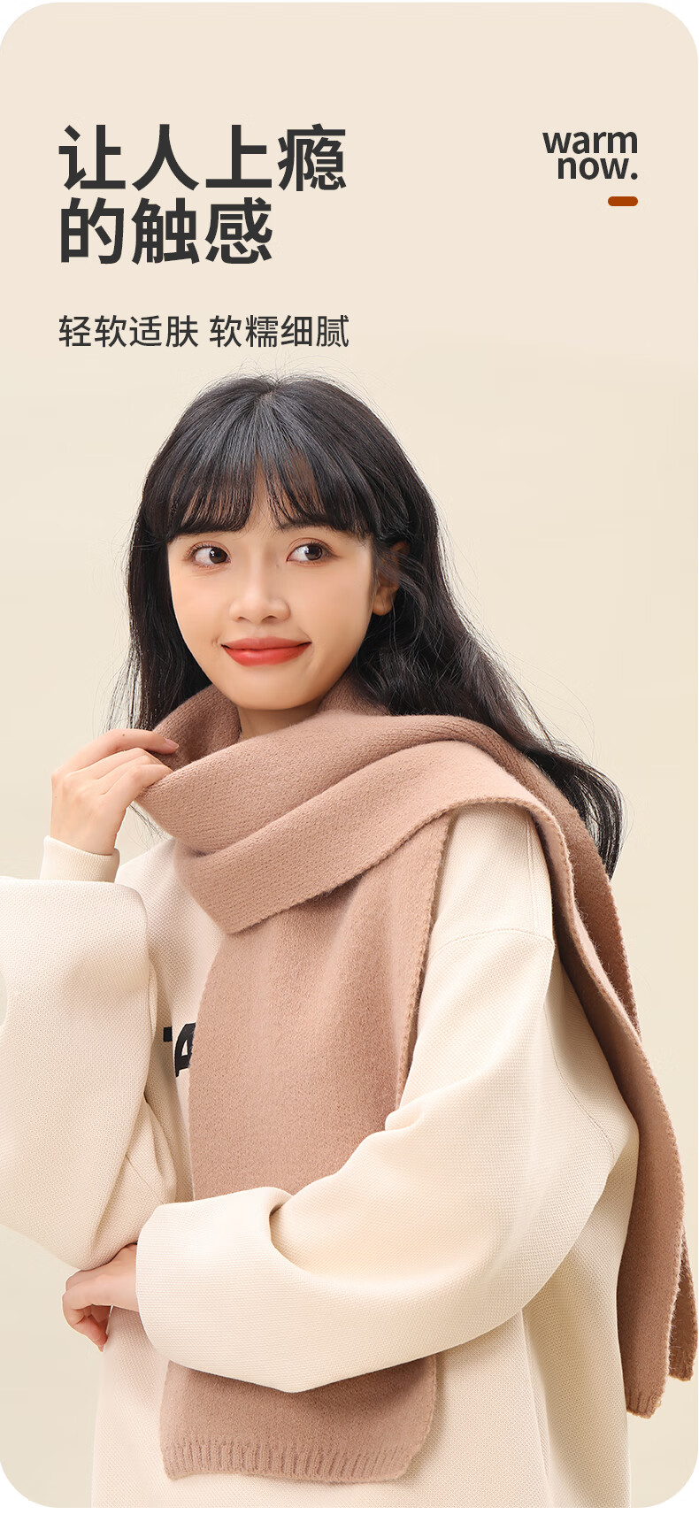 俞兆林围巾女士秋冬百搭高级感保暖仿羊绒针织围巾加厚围脖 天蓝色