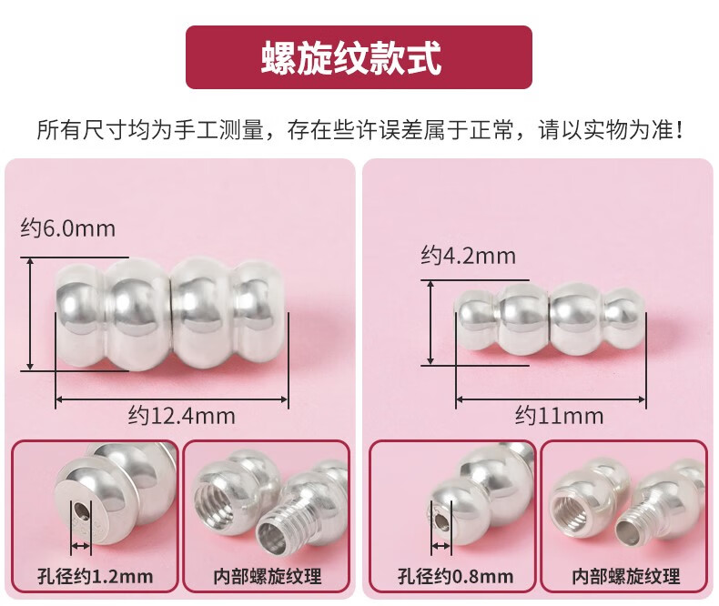 马思迷纯银珍珠项链扣头配件扣子接头diy手链连接扣材料925银专用线饰品 蝴蝶款螺纹连接扣1个