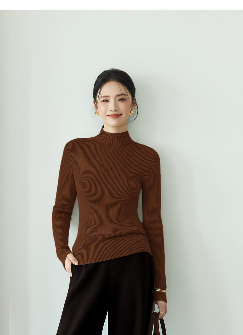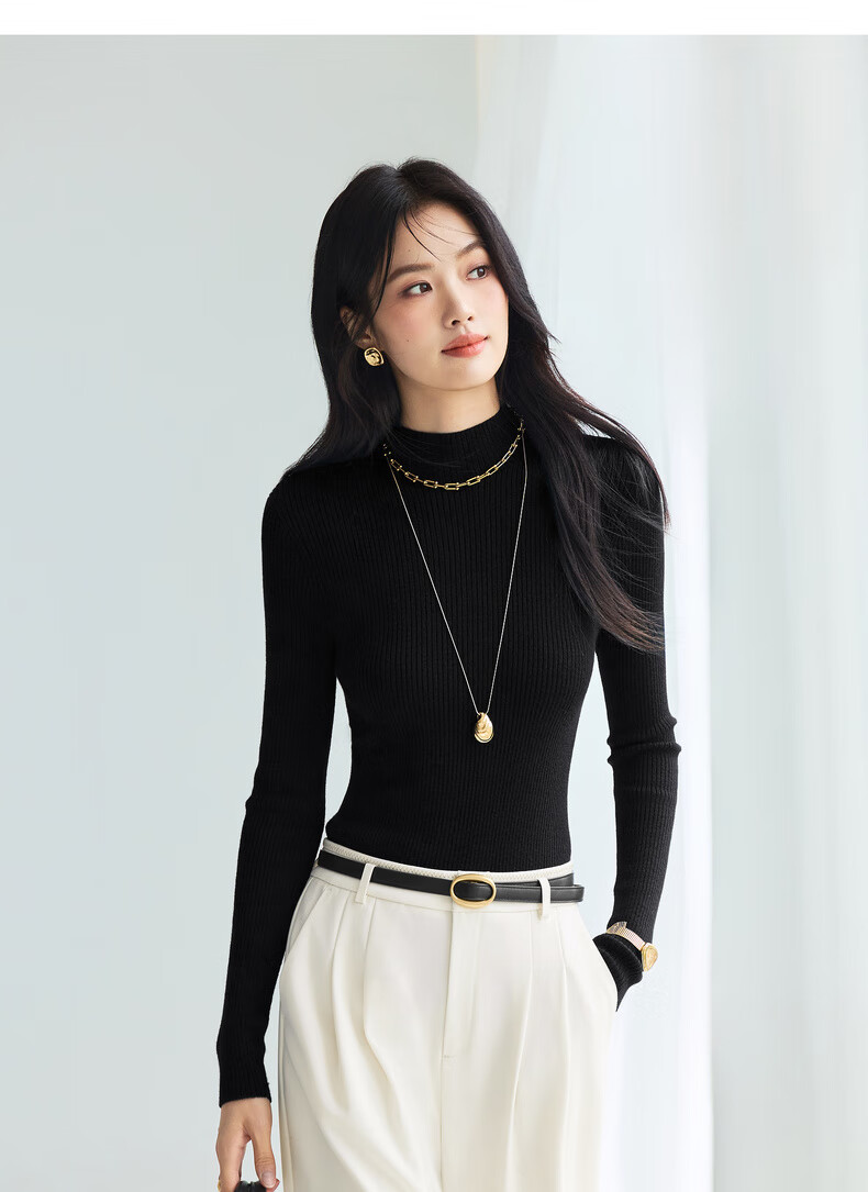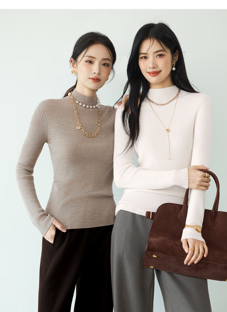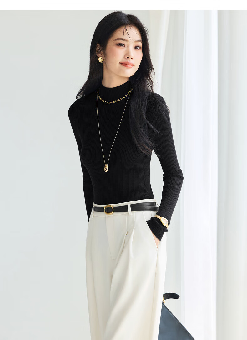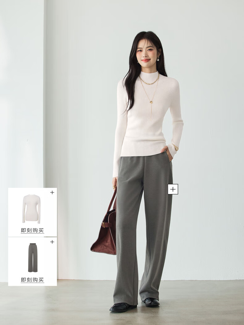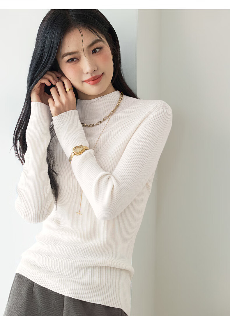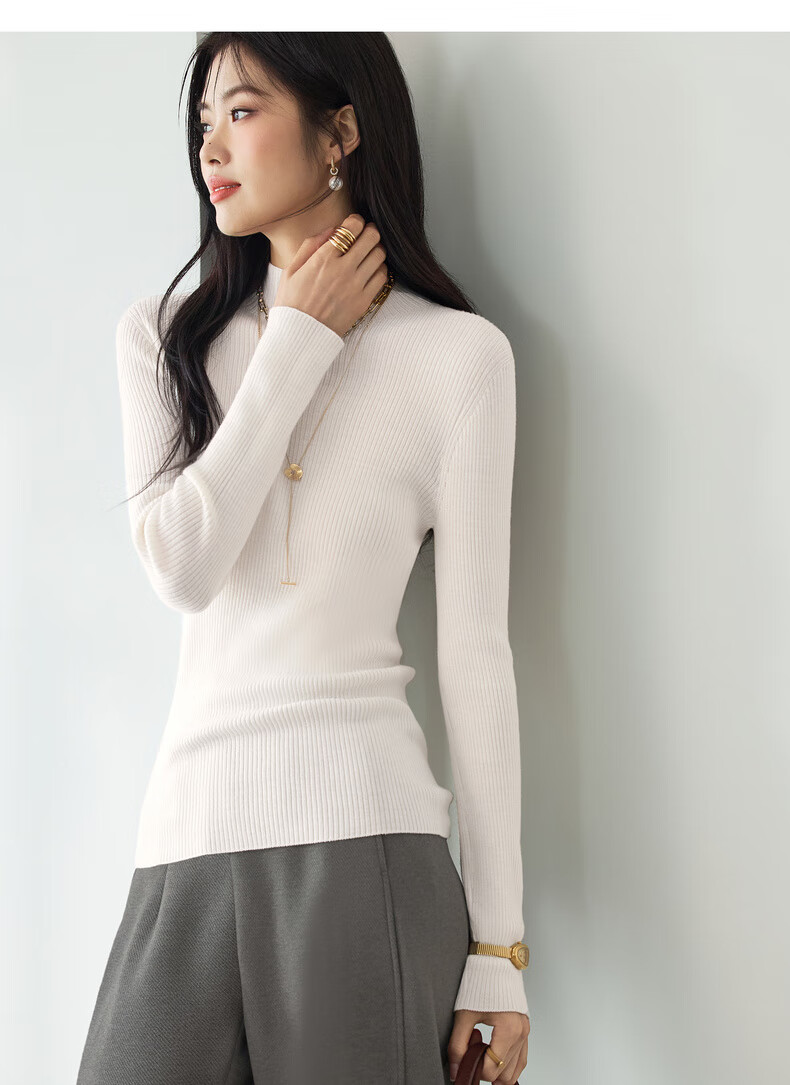 伊芙丽(eifini)蒋欣代言【100%绵羊毛可机洗扬子纱】半高领厚针织衫25秋款 白色 半高领 M 105-115斤
