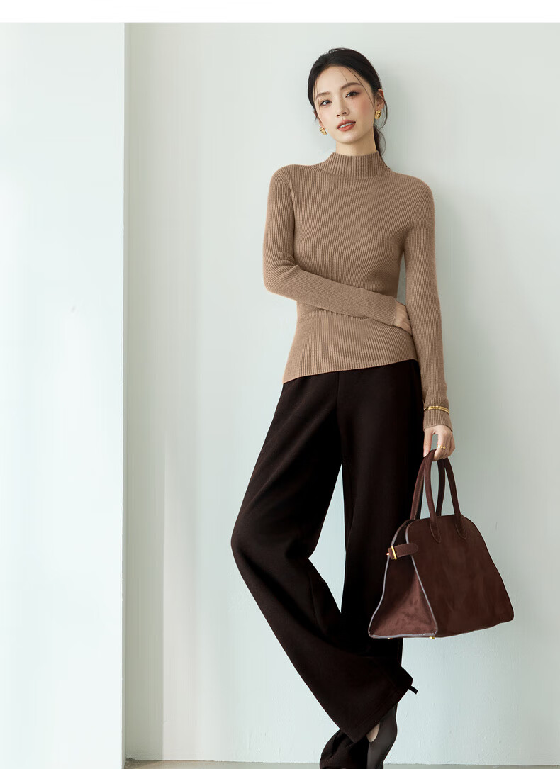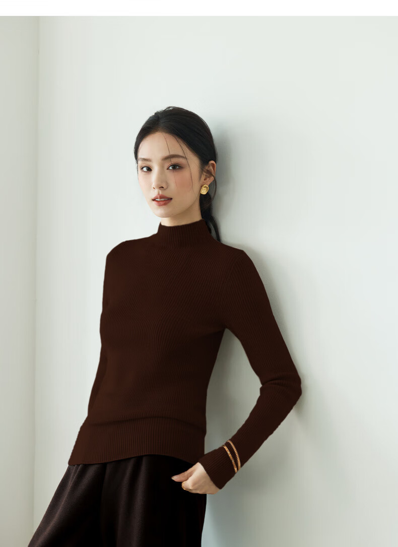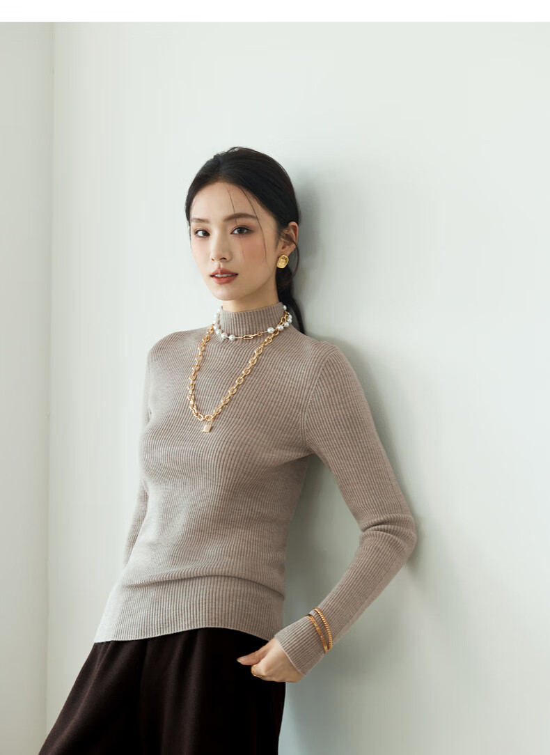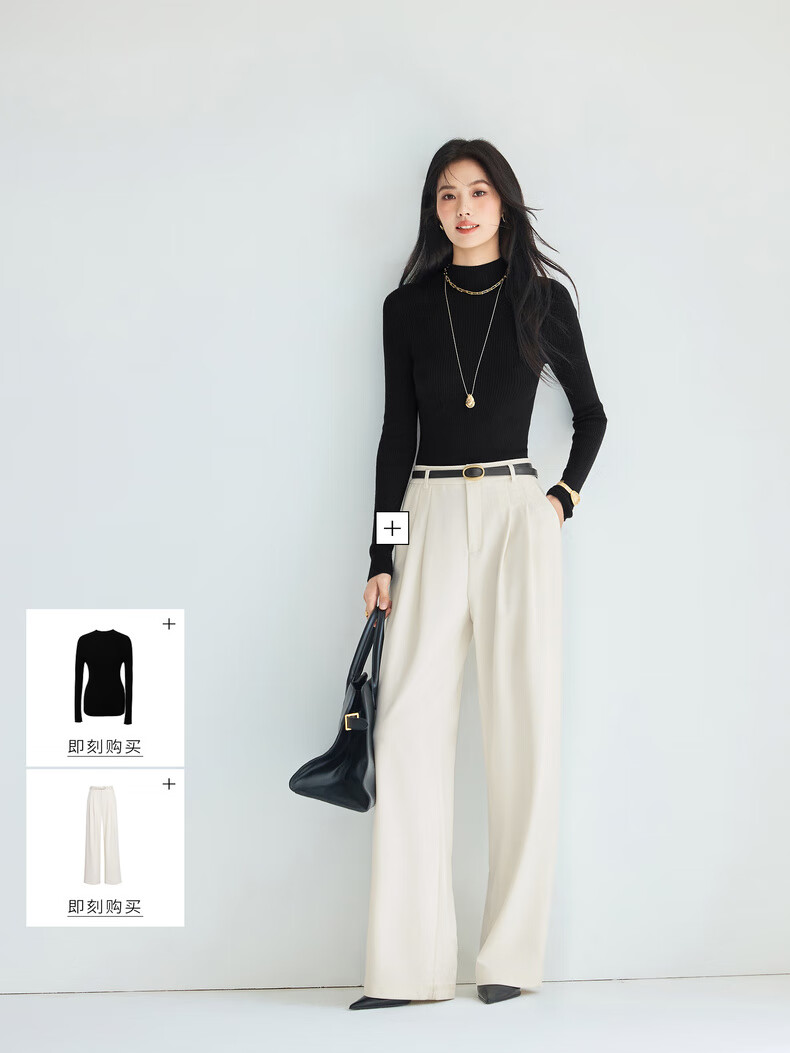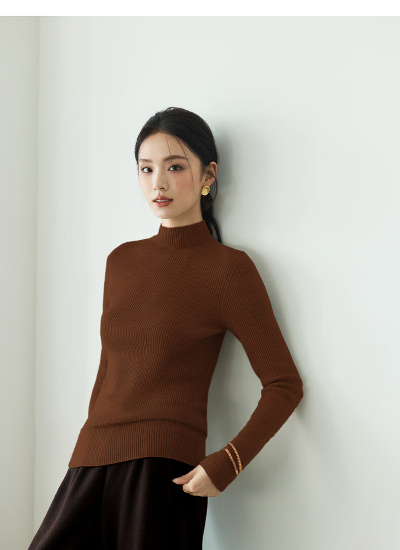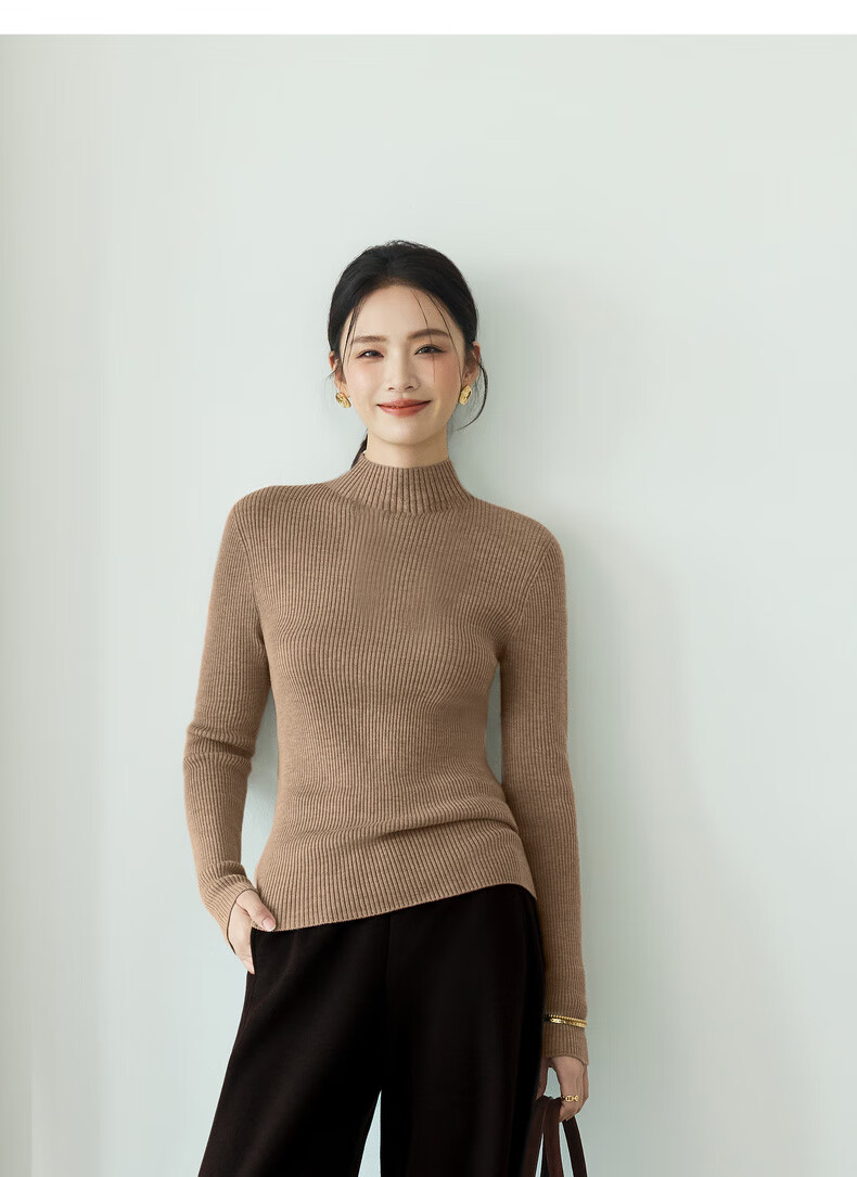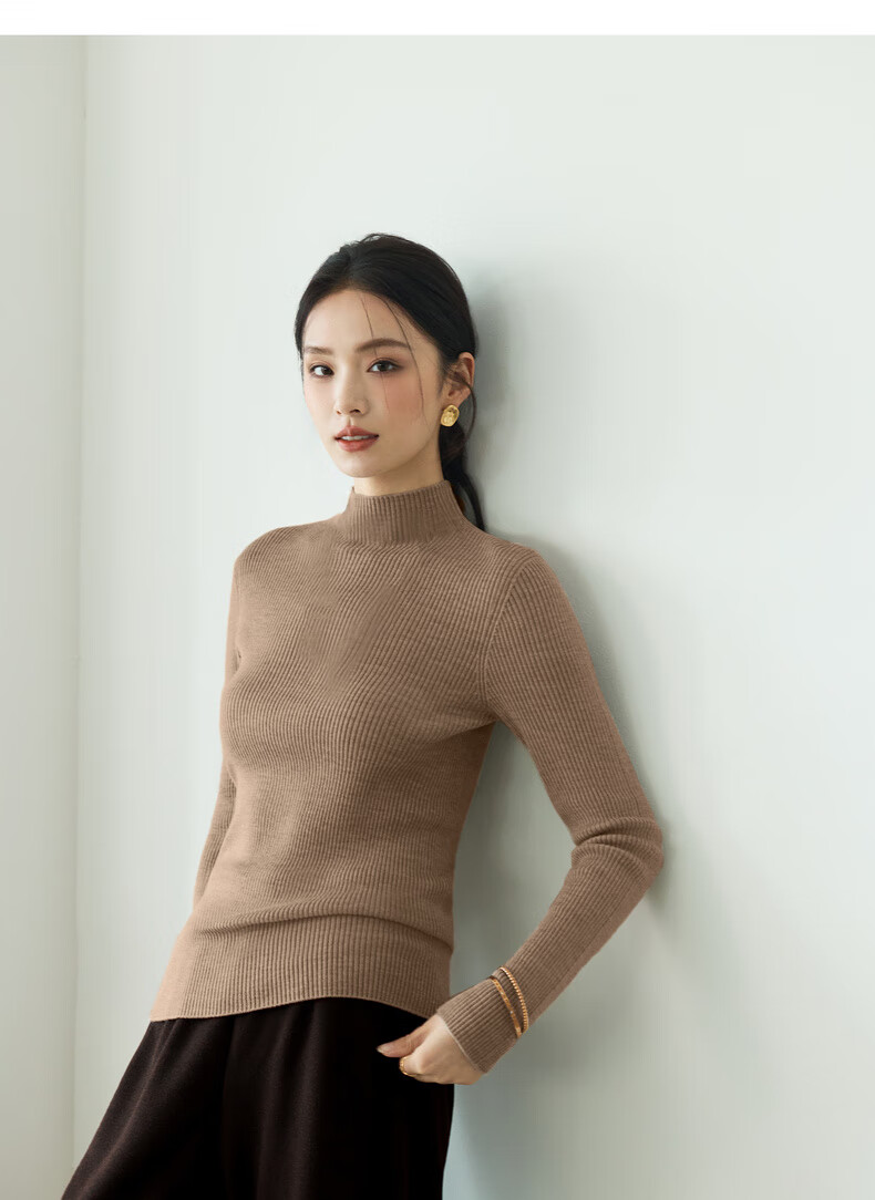 伊芙丽(eifini)蒋欣代言【100%绵羊毛可机洗扬子纱】半高领厚针织衫25秋款 白色 半高领 M 105-115斤