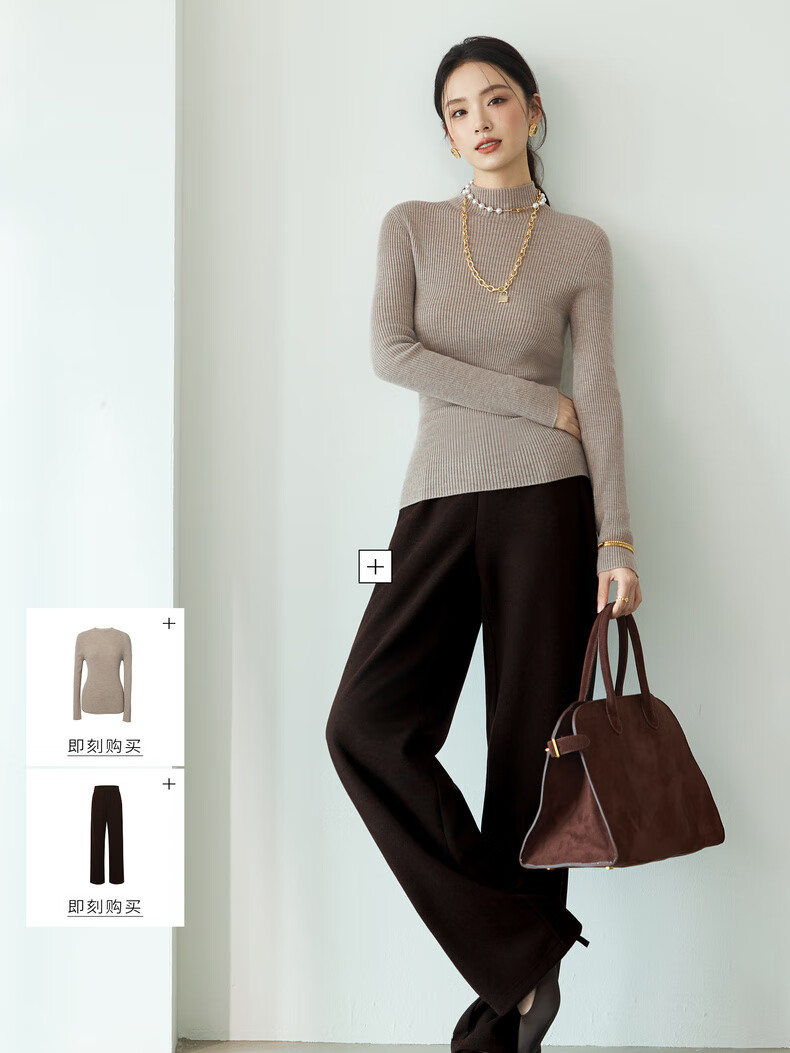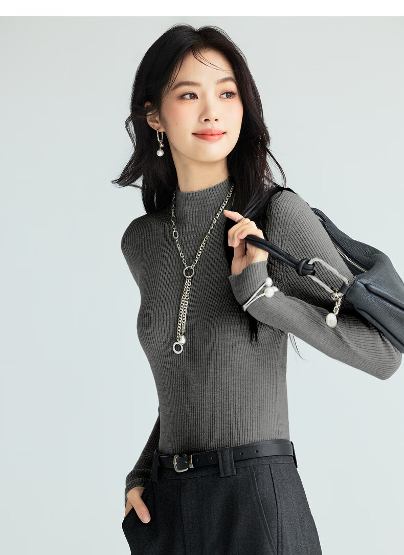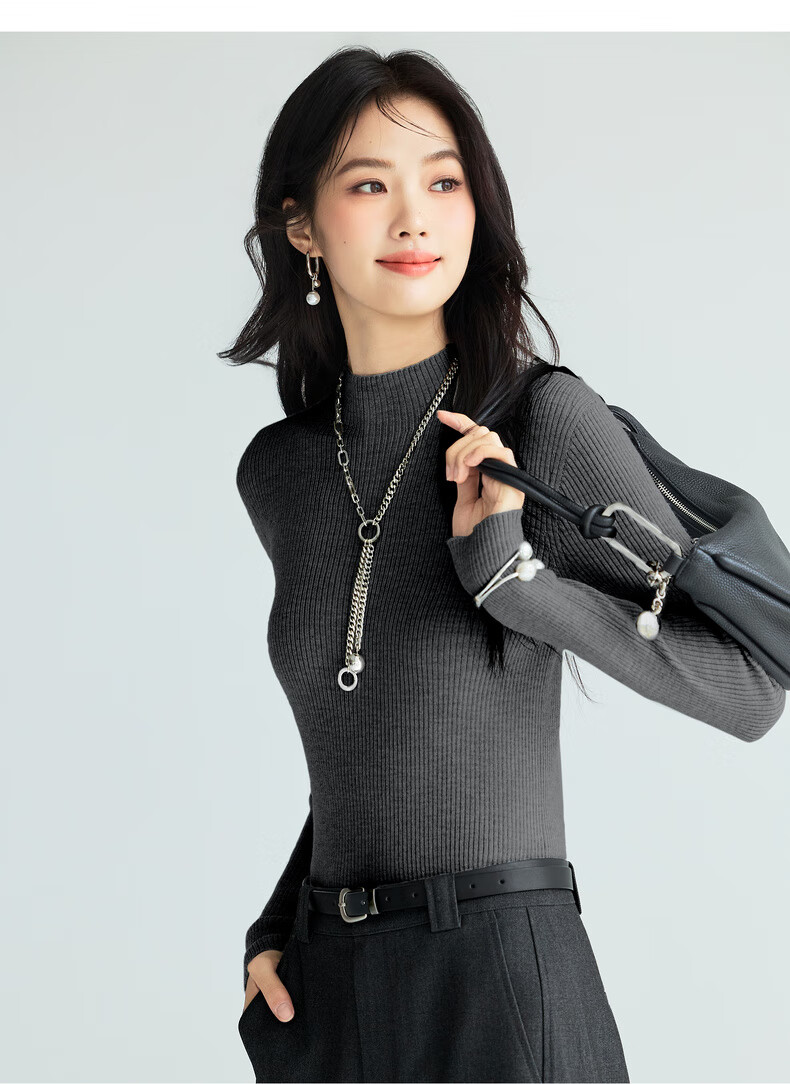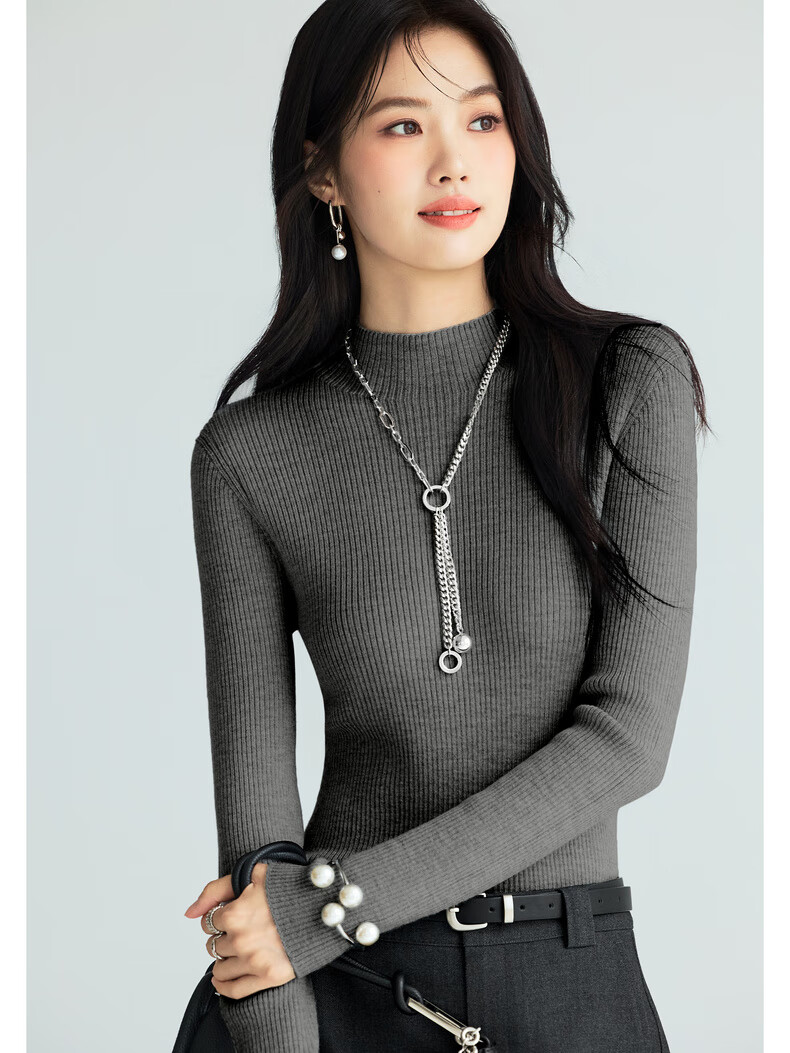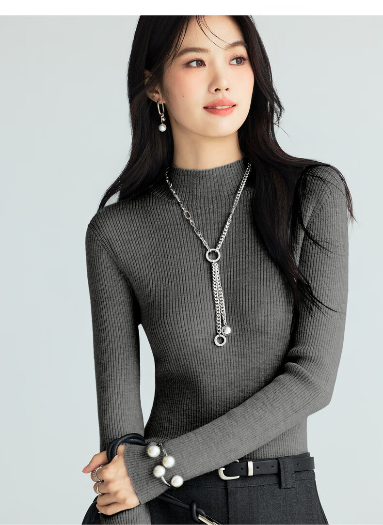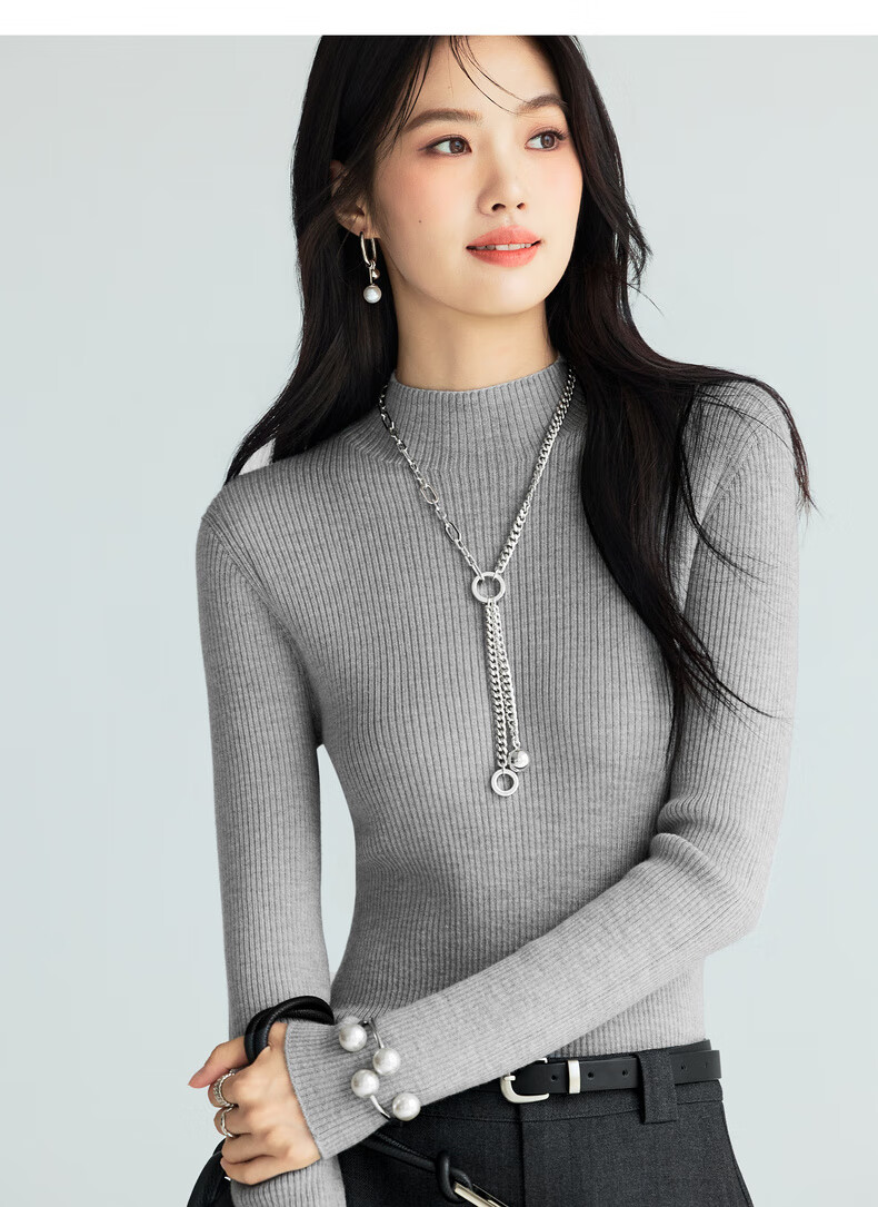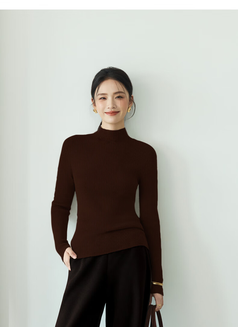 伊芙丽(eifini)蒋欣代言【100%绵羊毛可机洗扬子纱】半高领厚针织衫25秋款 白色 半高领 M 105-115斤