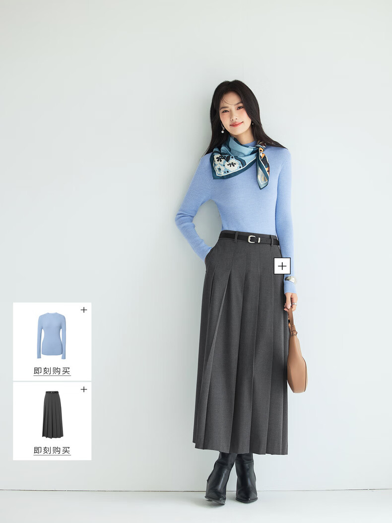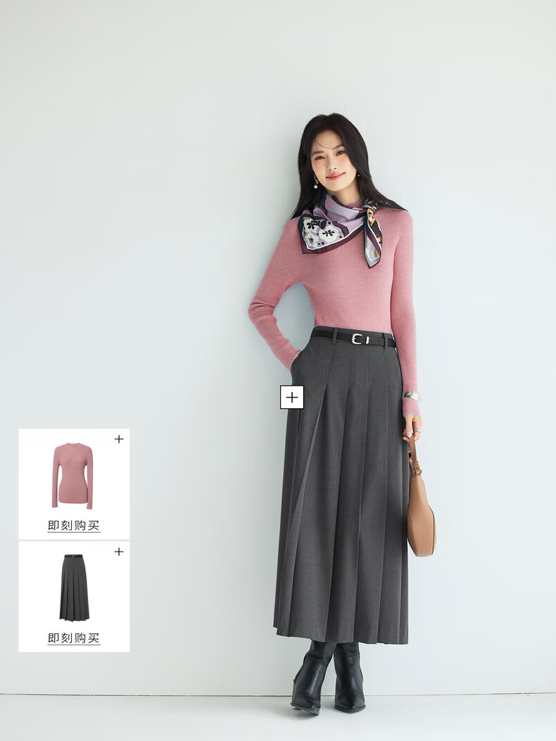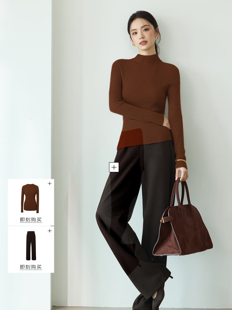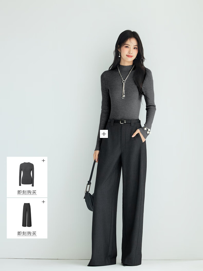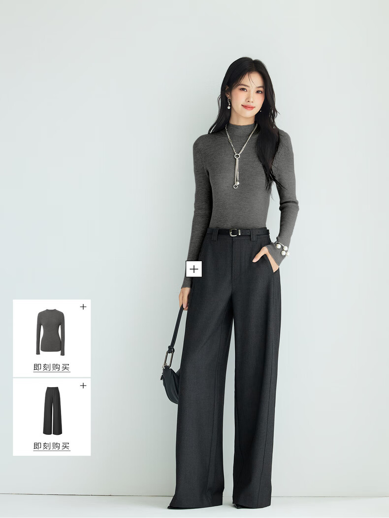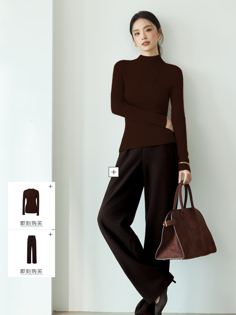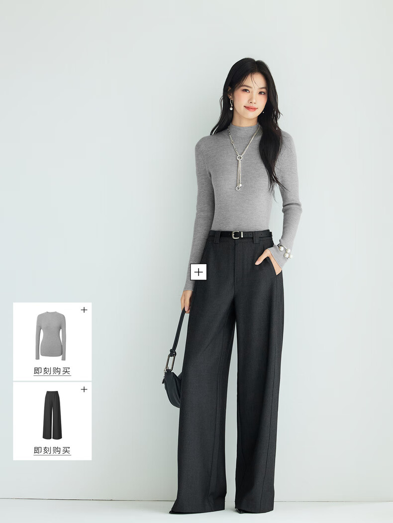 伊芙丽(eifini)蒋欣代言【100%绵羊毛可机洗扬子纱】半高领厚针织衫25秋款 白色 半高领 M 105-115斤