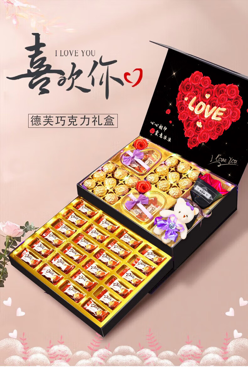 德芙(Dove)多唯巧克力礼盒生日礼物送女生女朋友老婆情人节新年年货大礼包 德芙巧克力高档实用【旗舰款】