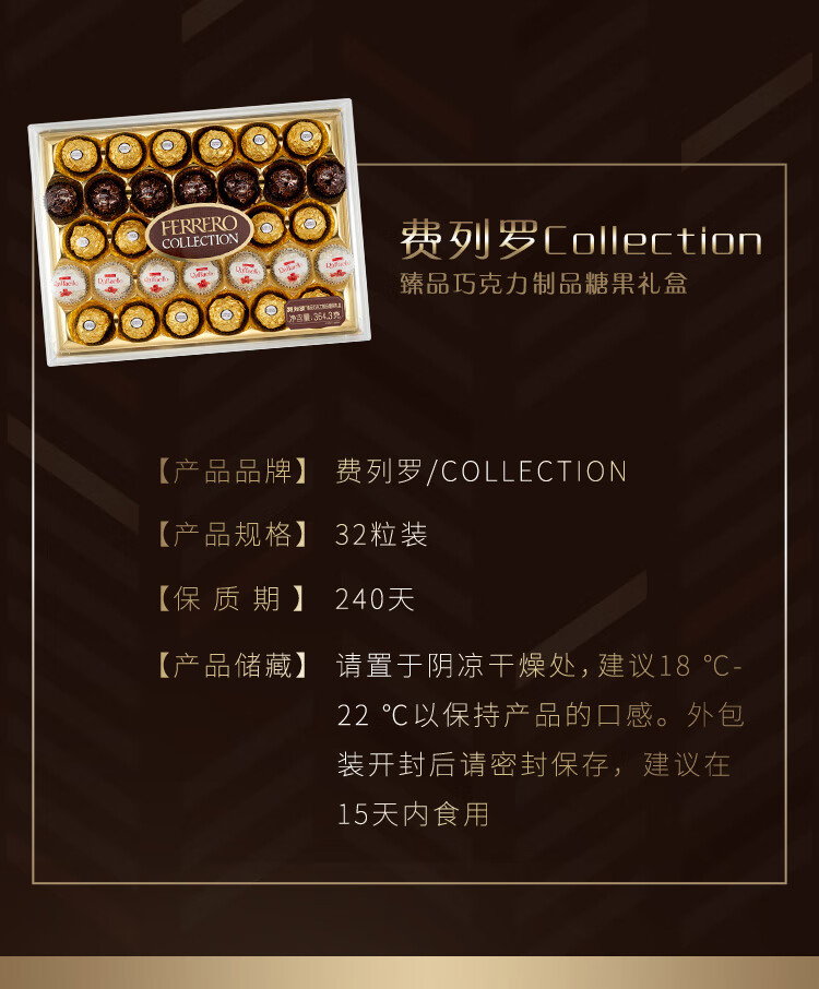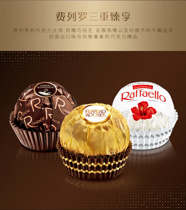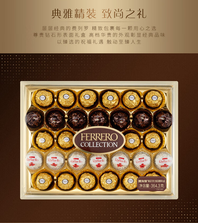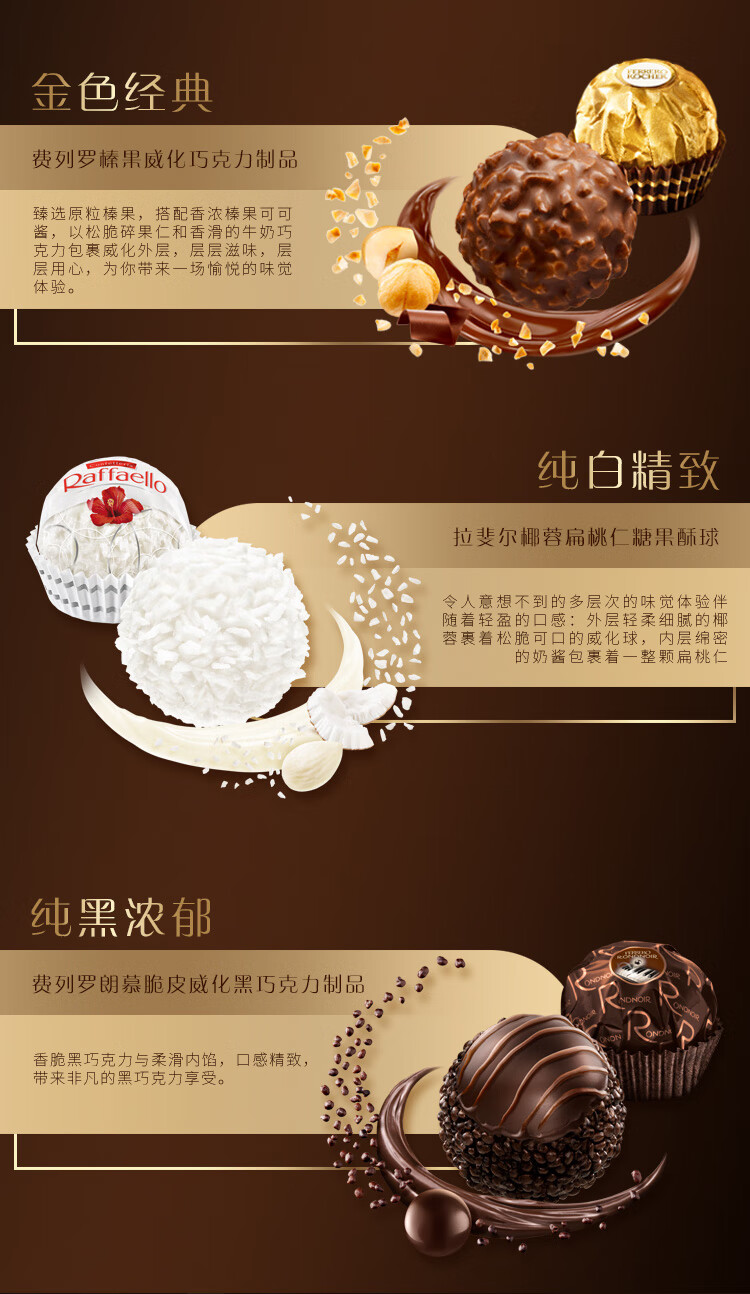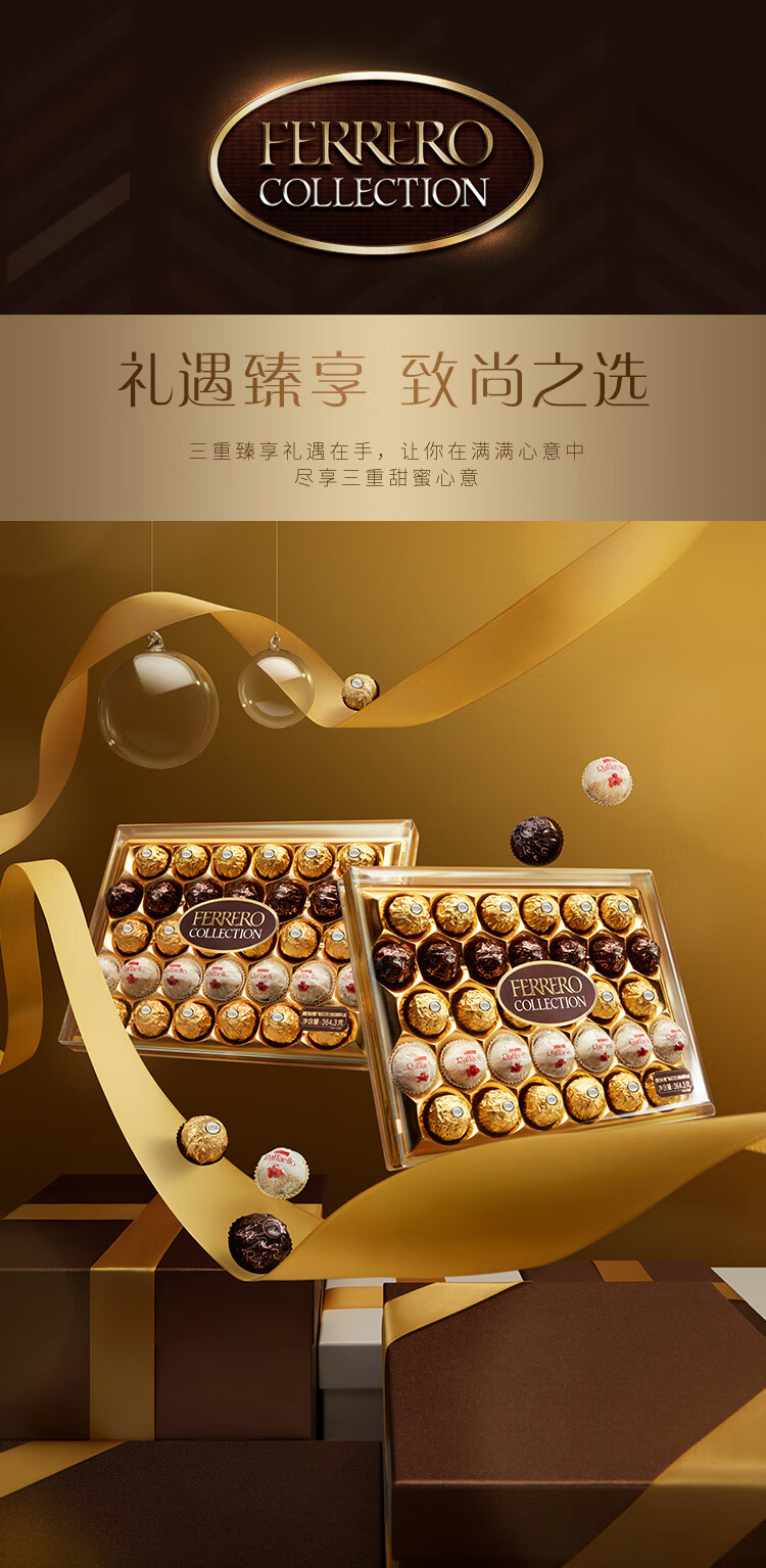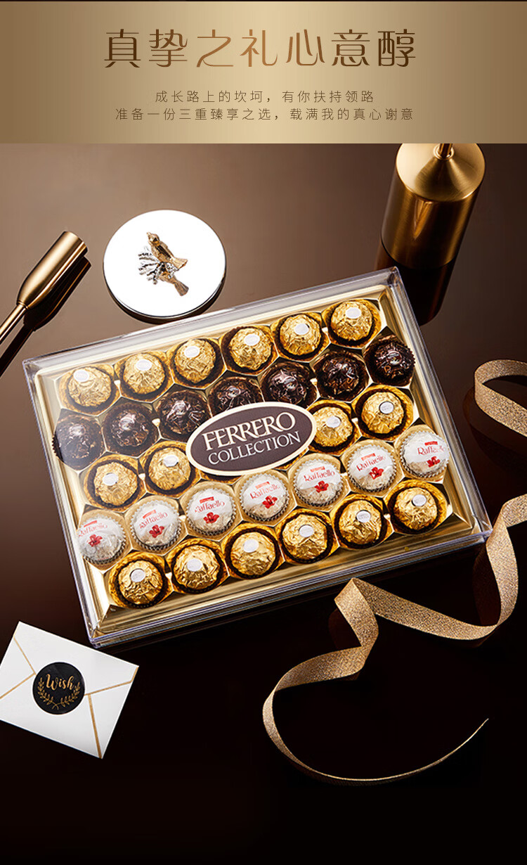 费列罗 榛果巧克力礼盒 3种口味32粒364.3g 零食 糖果 新年礼物