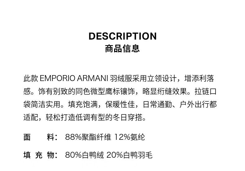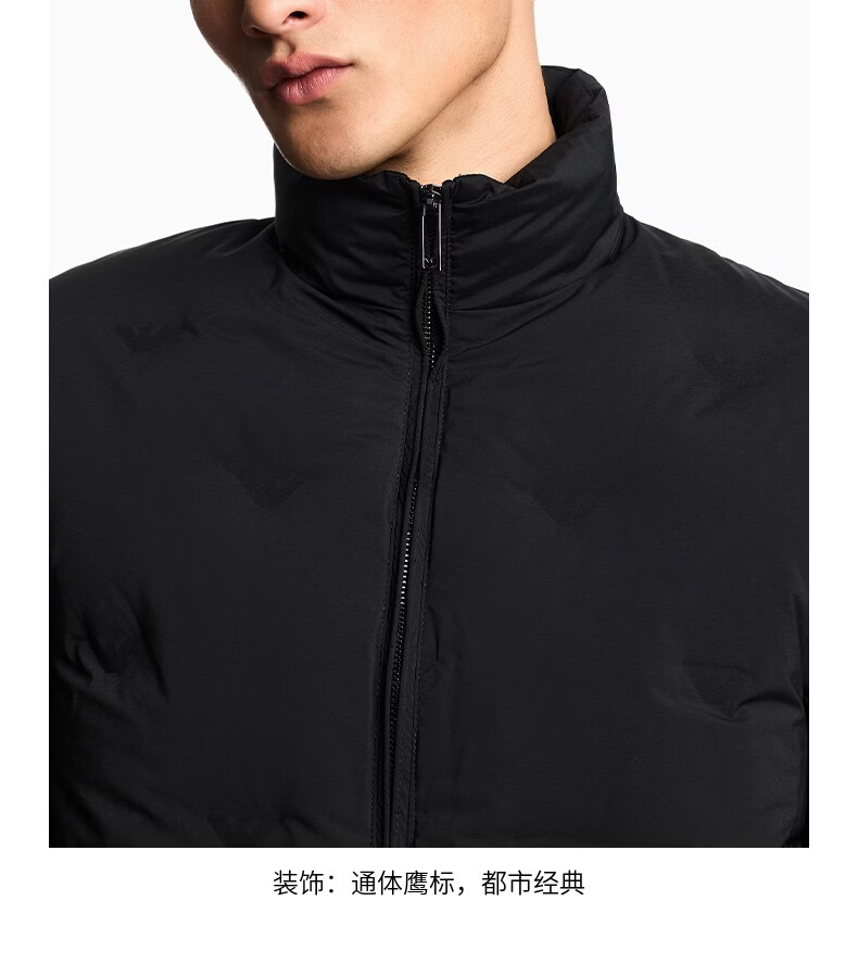 EMPORIO ARMANI/阿玛尼官方旗舰新款男士80白鸭绒短款立领羽绒服外套冬季 UC001-黑色 54 (2XL) (推荐:180-200斤)