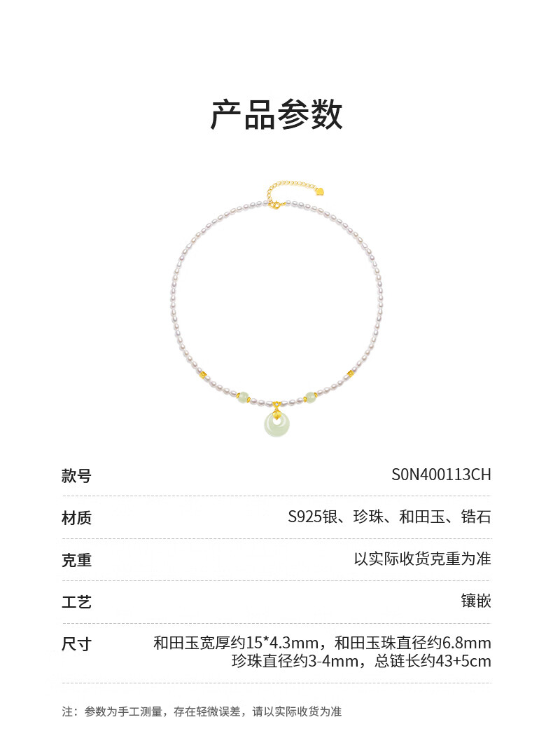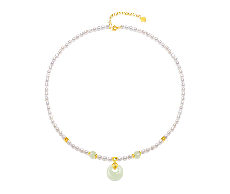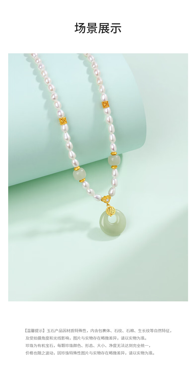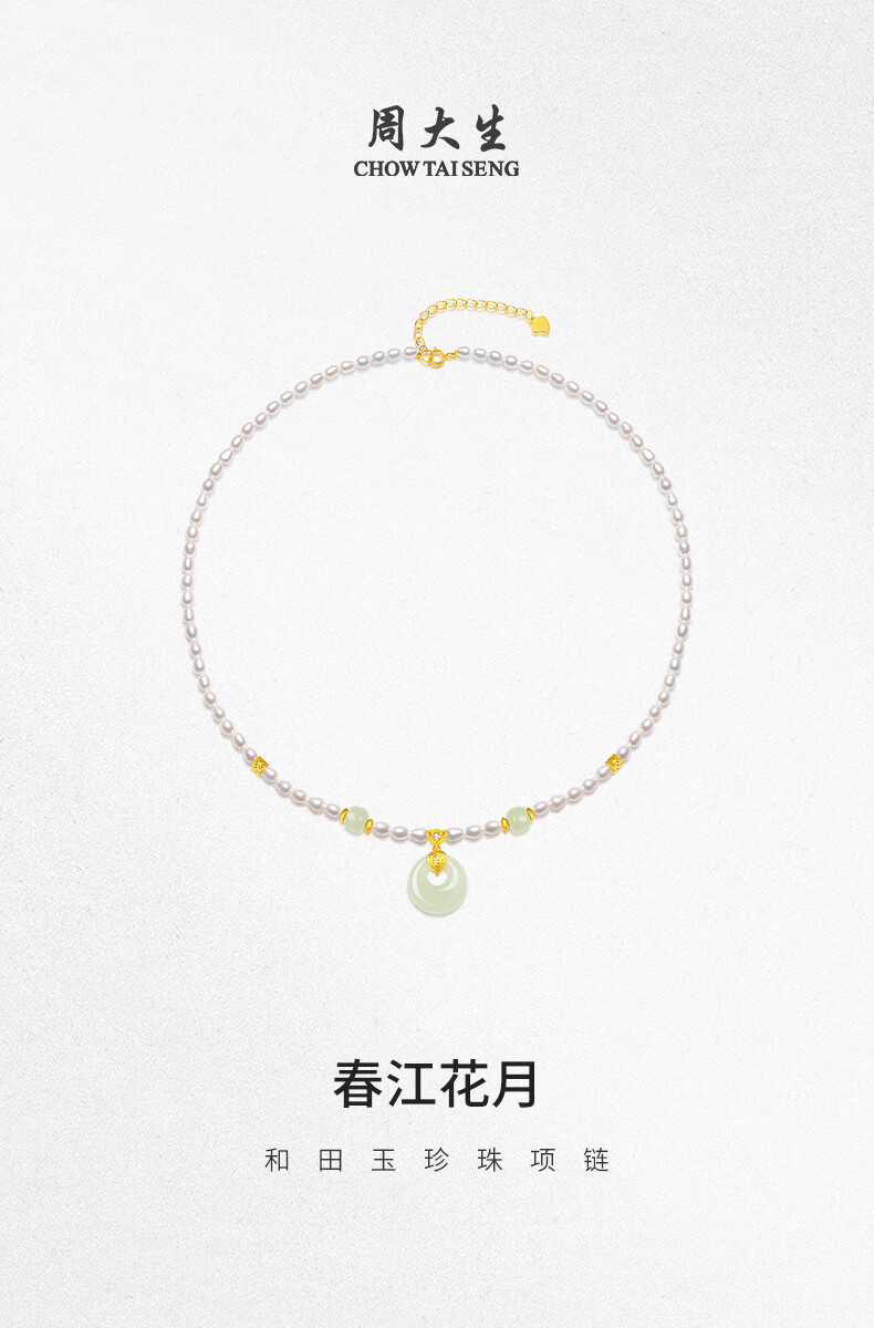 周大生【新年礼物】珍珠项链小米珠和田玉平安扣吊坠送女友送妈妈