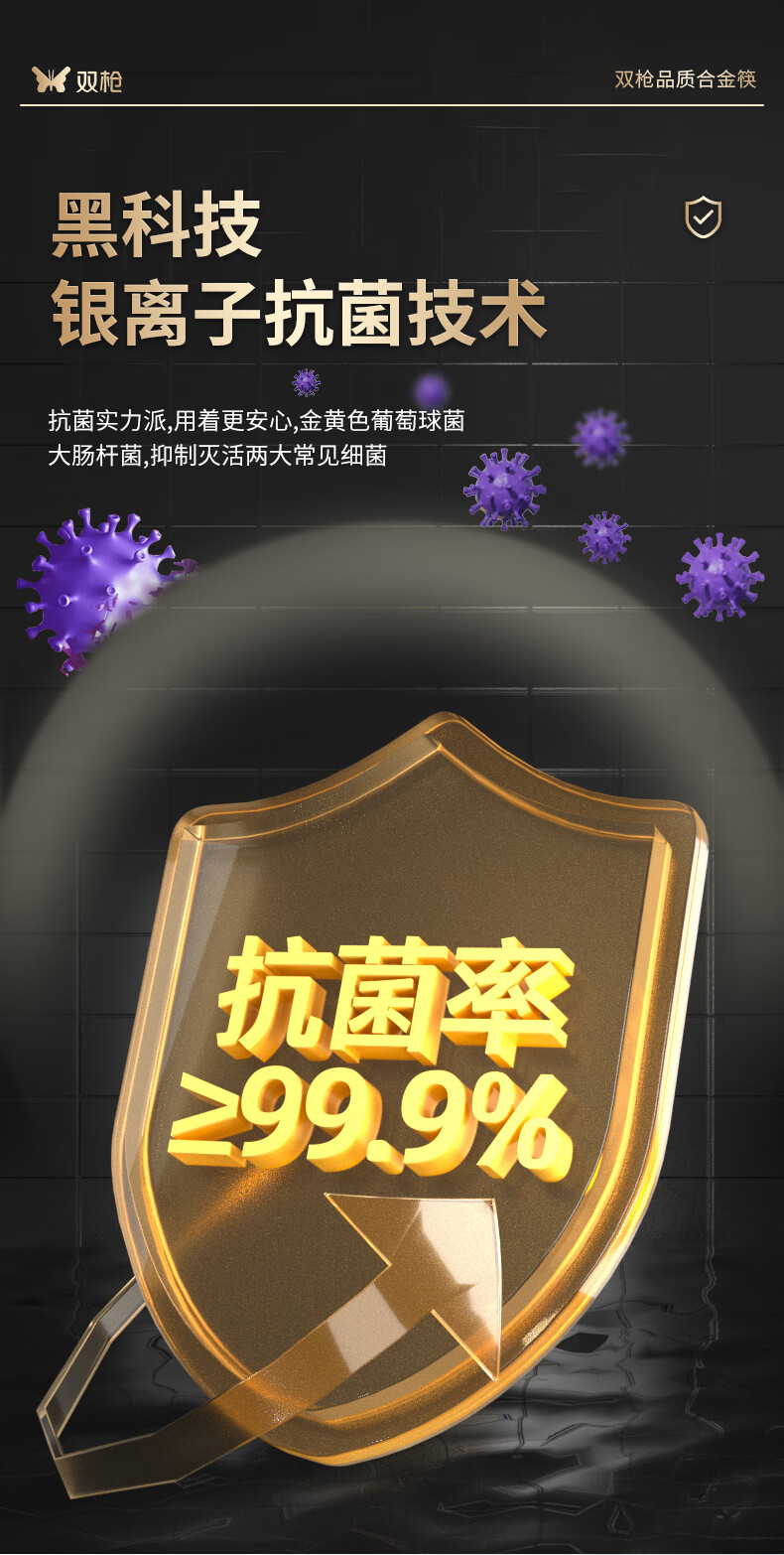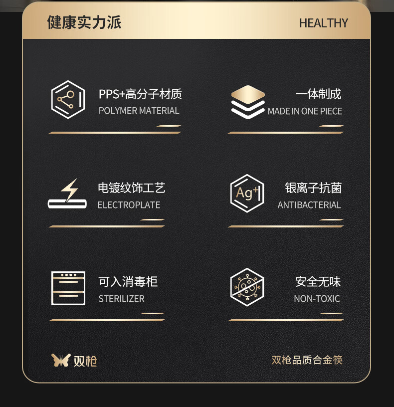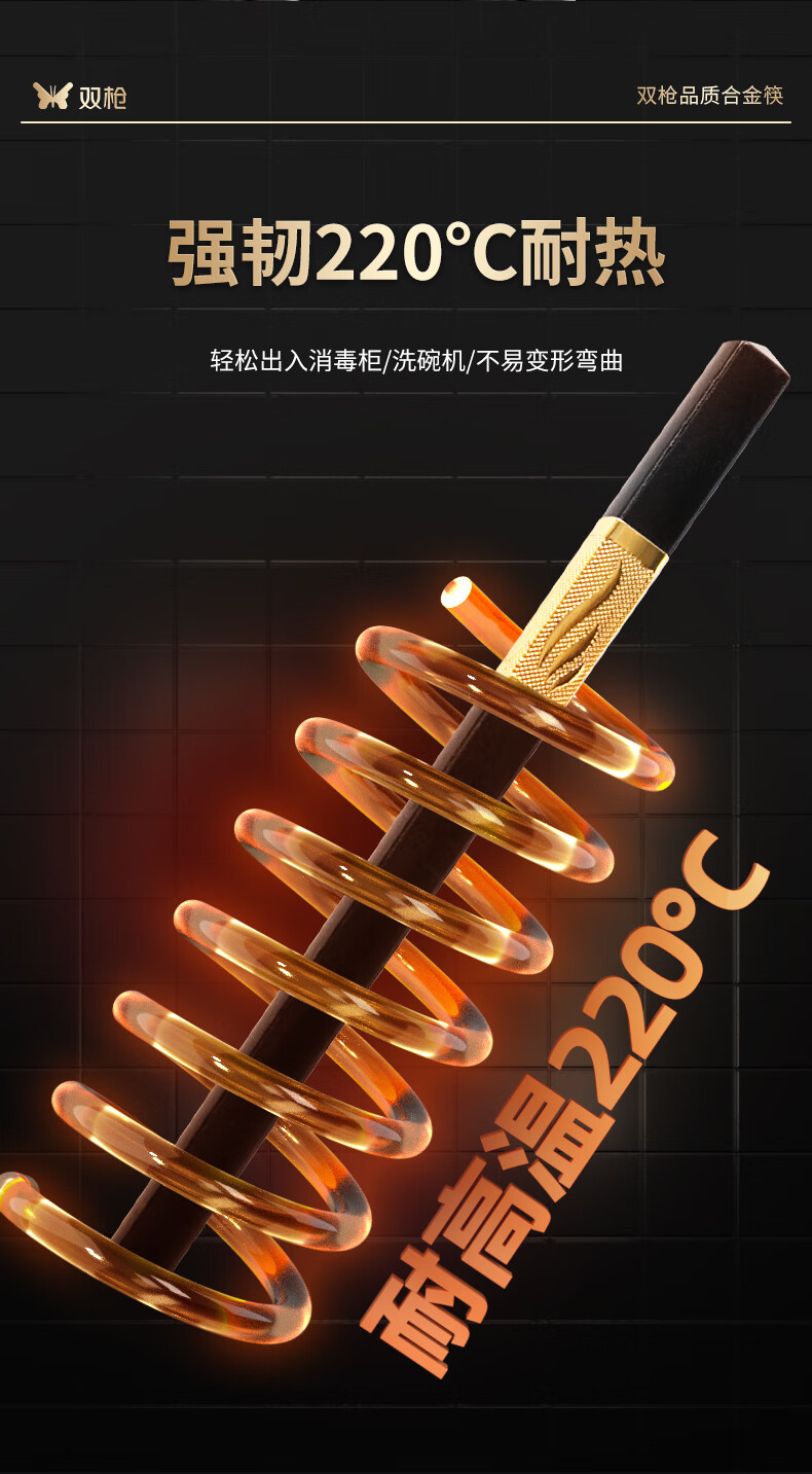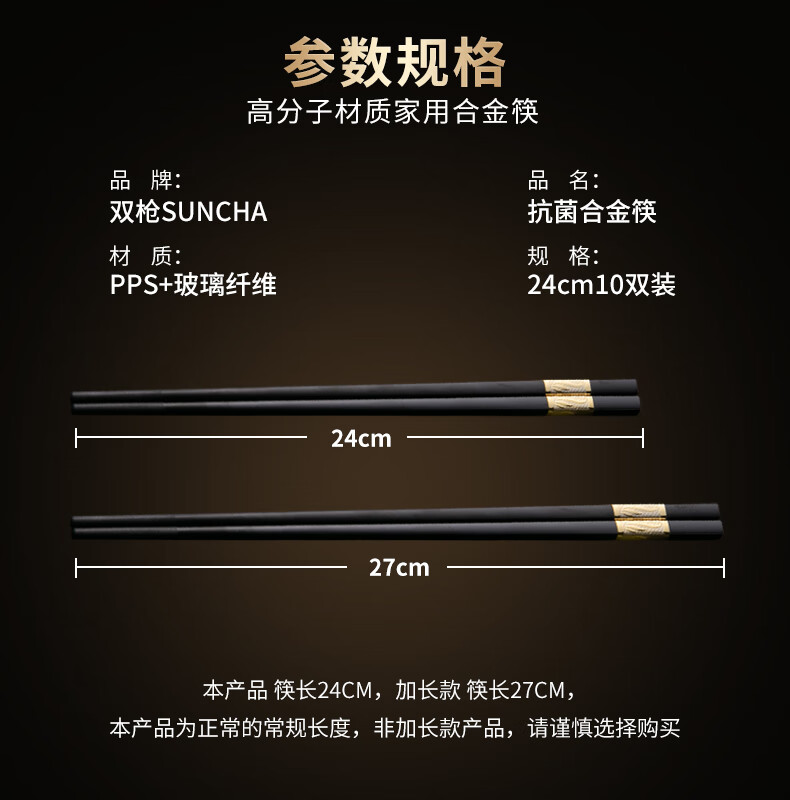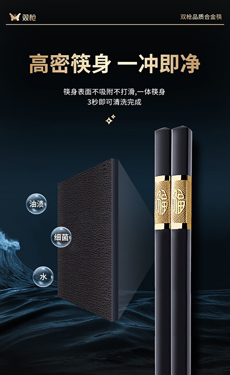双枪厨房好物抗菌金福合金筷子家用无漆无蜡pps筷餐具套装10双