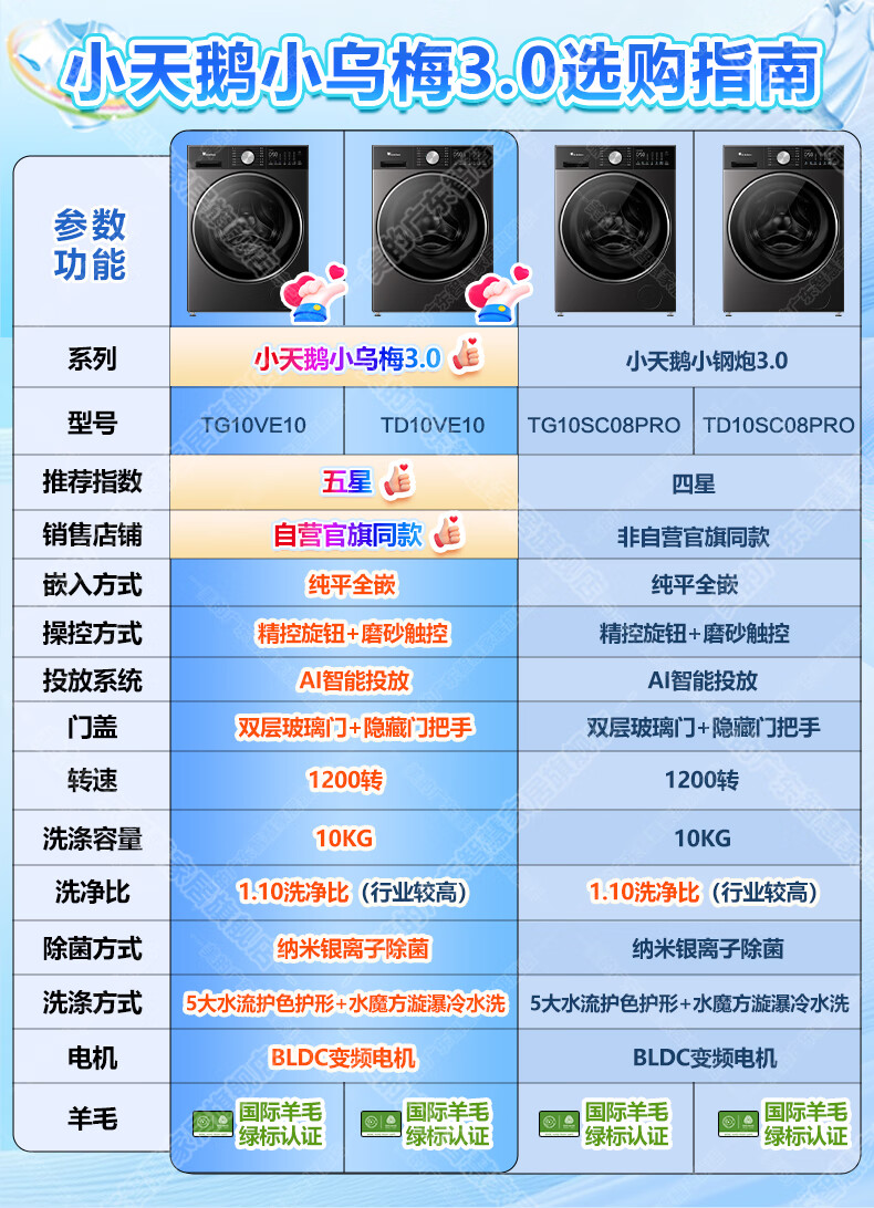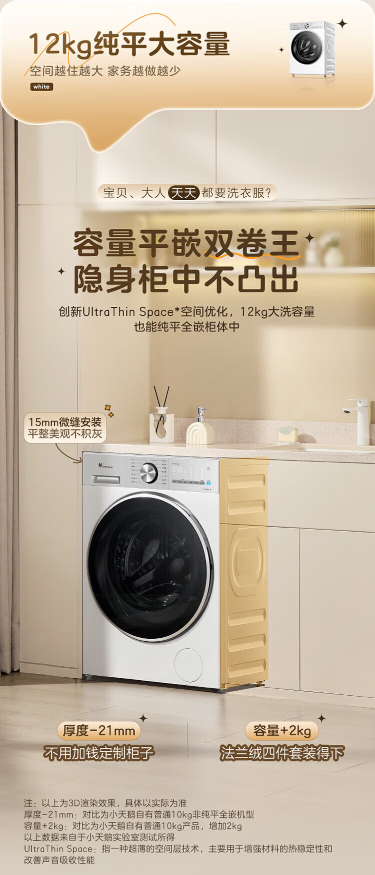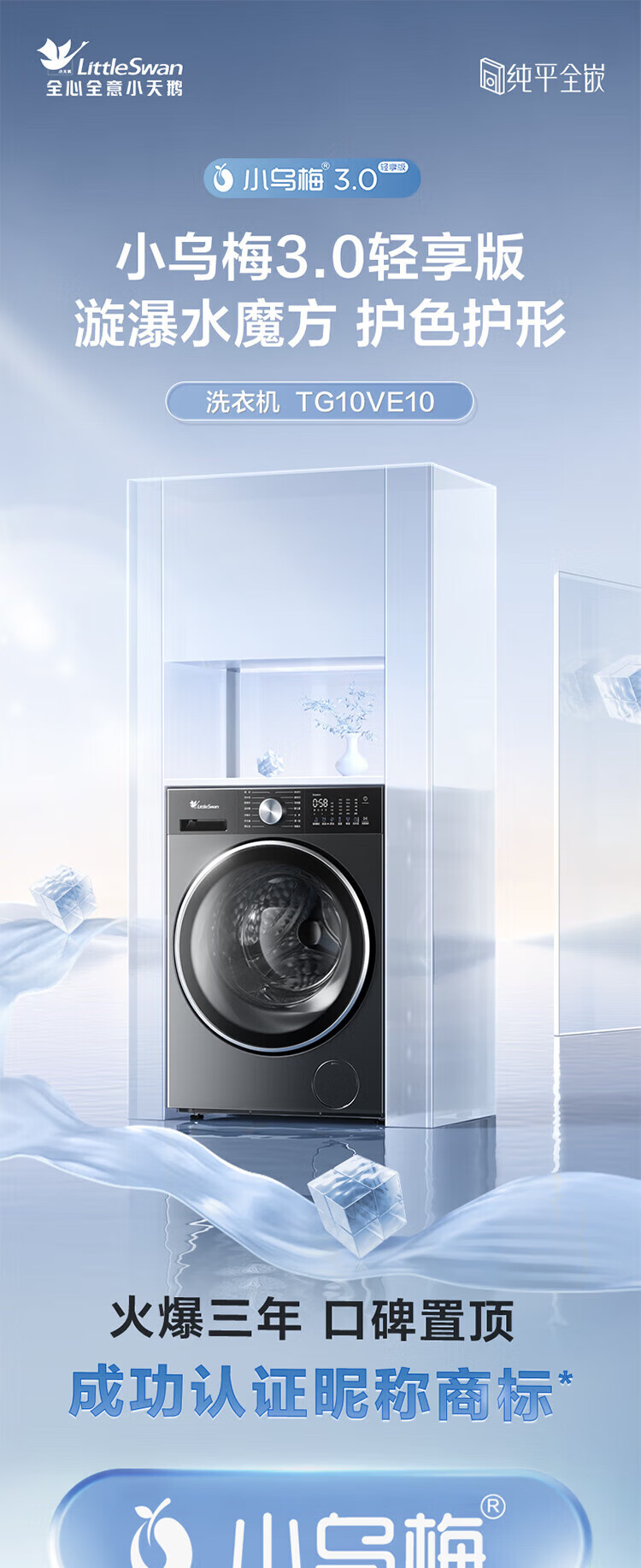小天鹅小乌梅3.0洗衣机全自动滚筒 纯平全嵌 水魔方漩瀑冷水洗 智能投放 全能机皇 家电补贴15% 【线下同款12K G银色带烘干】大容量纯平全嵌 滚筒