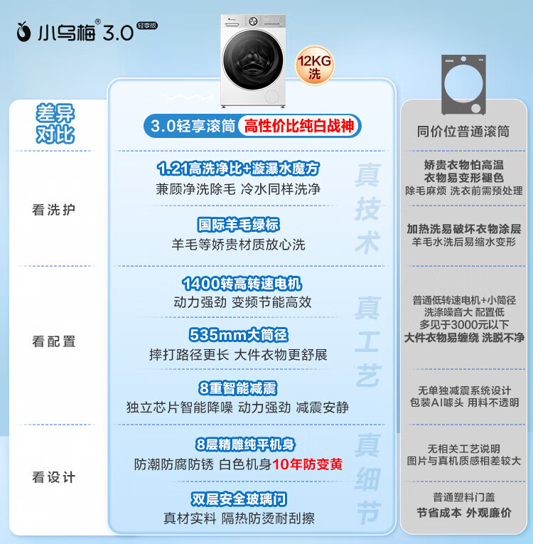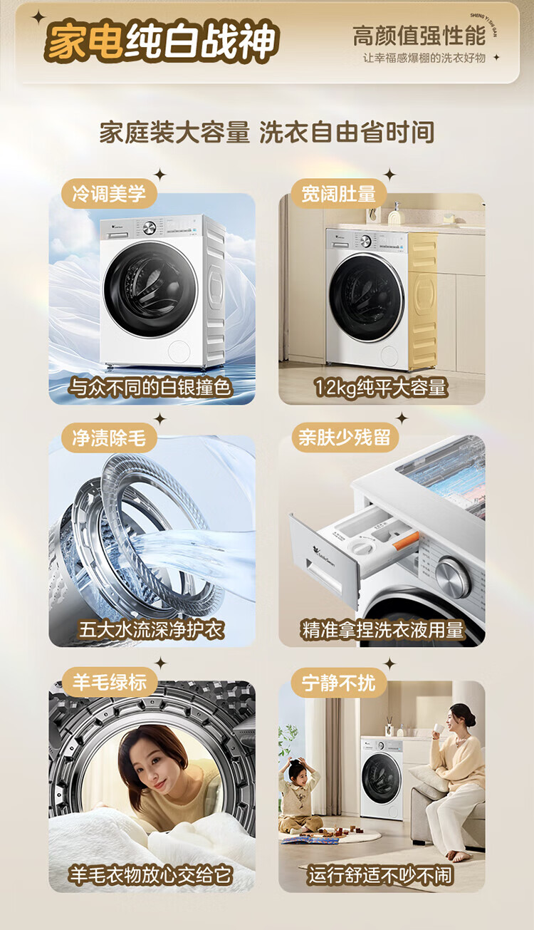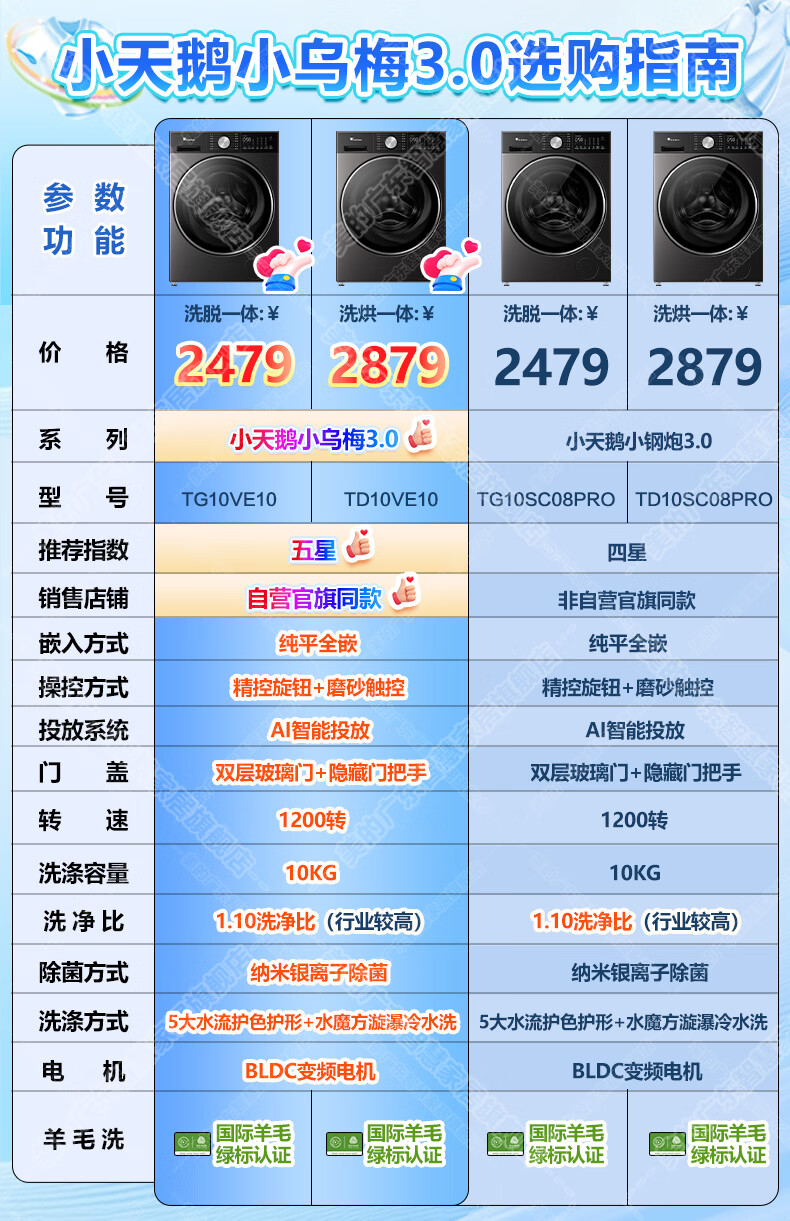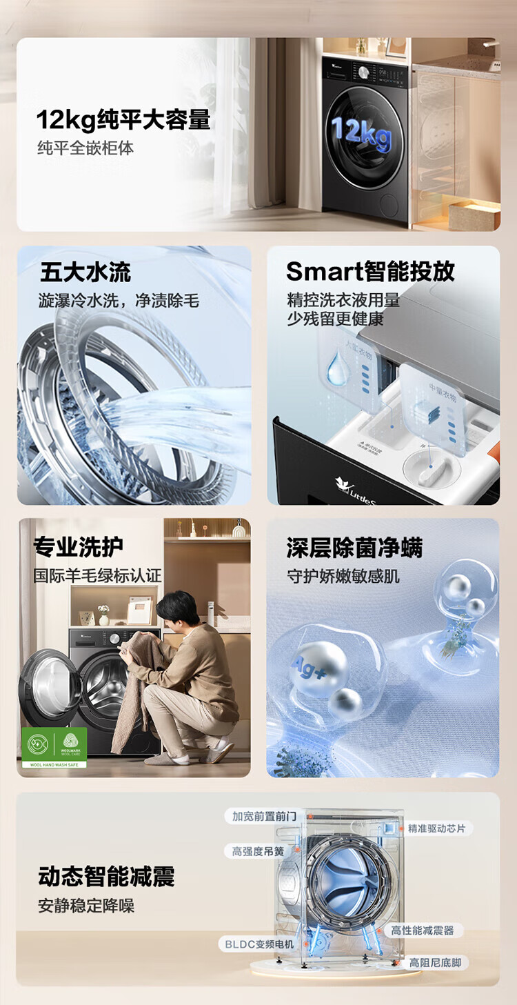 小天鹅小乌梅3.0洗衣机全自动滚筒 纯平全嵌 水魔方漩瀑冷水洗 智能投放 全能机皇 家电补贴15% 【线下同款12K G银色带烘干】大容量纯平全嵌 滚筒