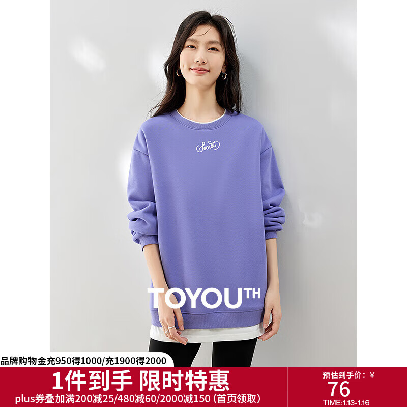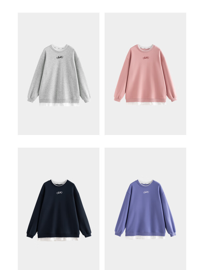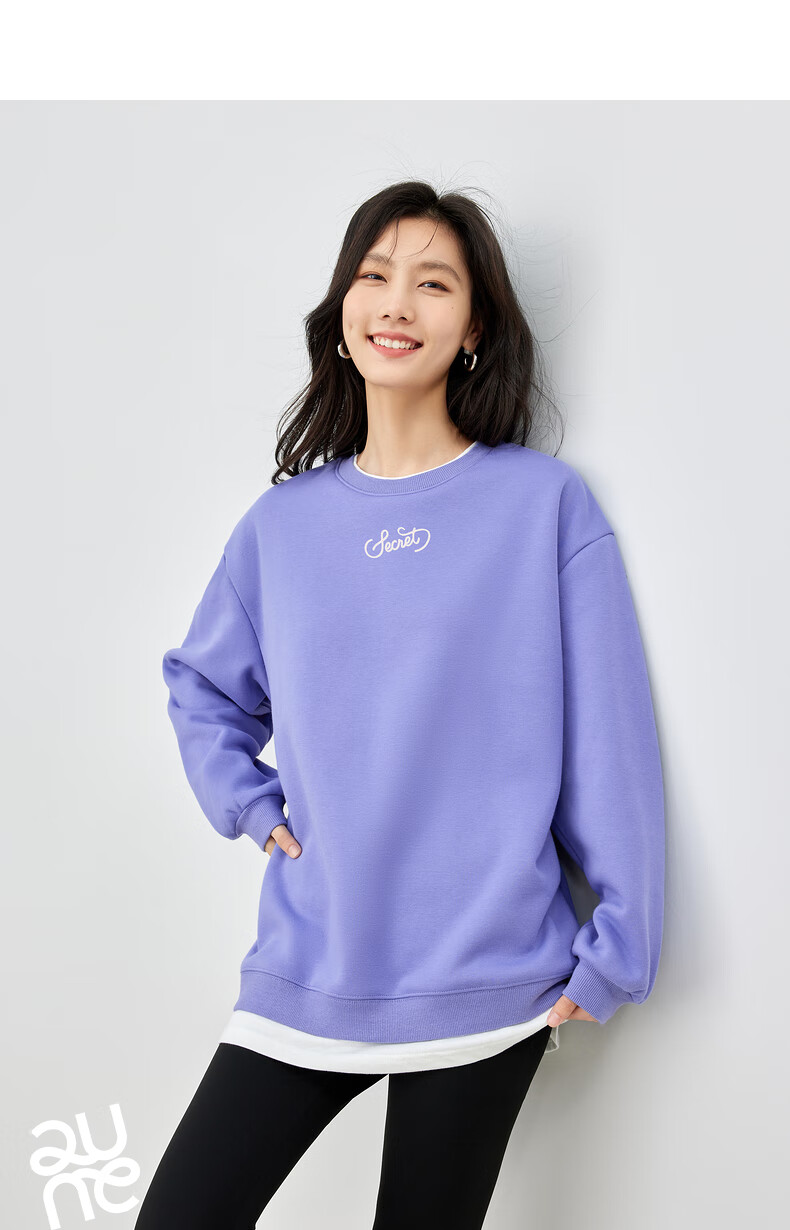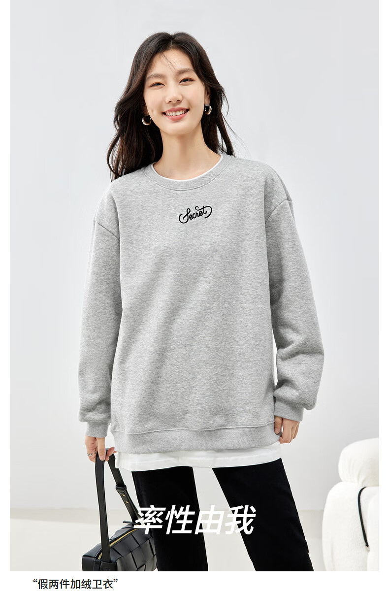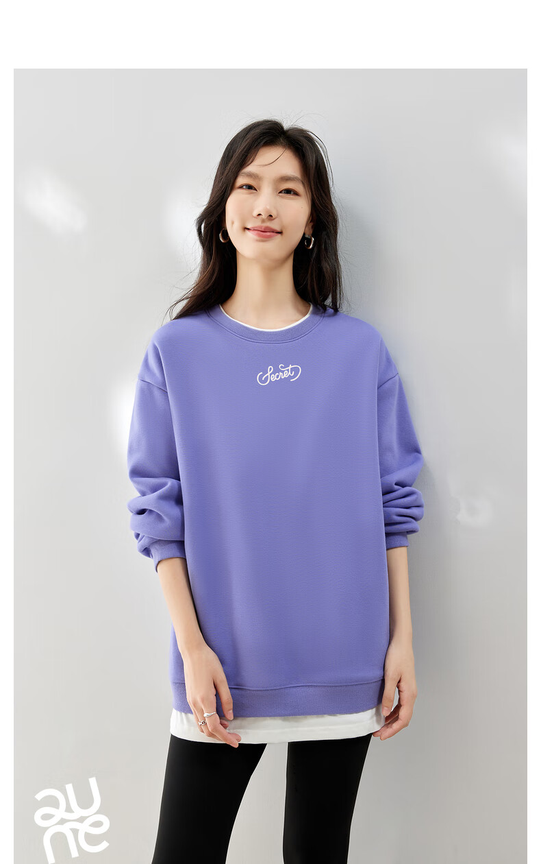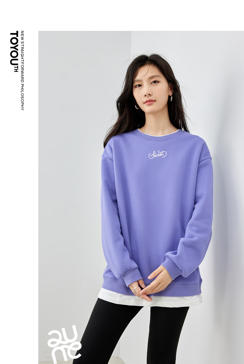 初语假两件加绒卫衣女2024秋冬新款宽松显瘦休闲圆领上衣 浅紫色-secret M