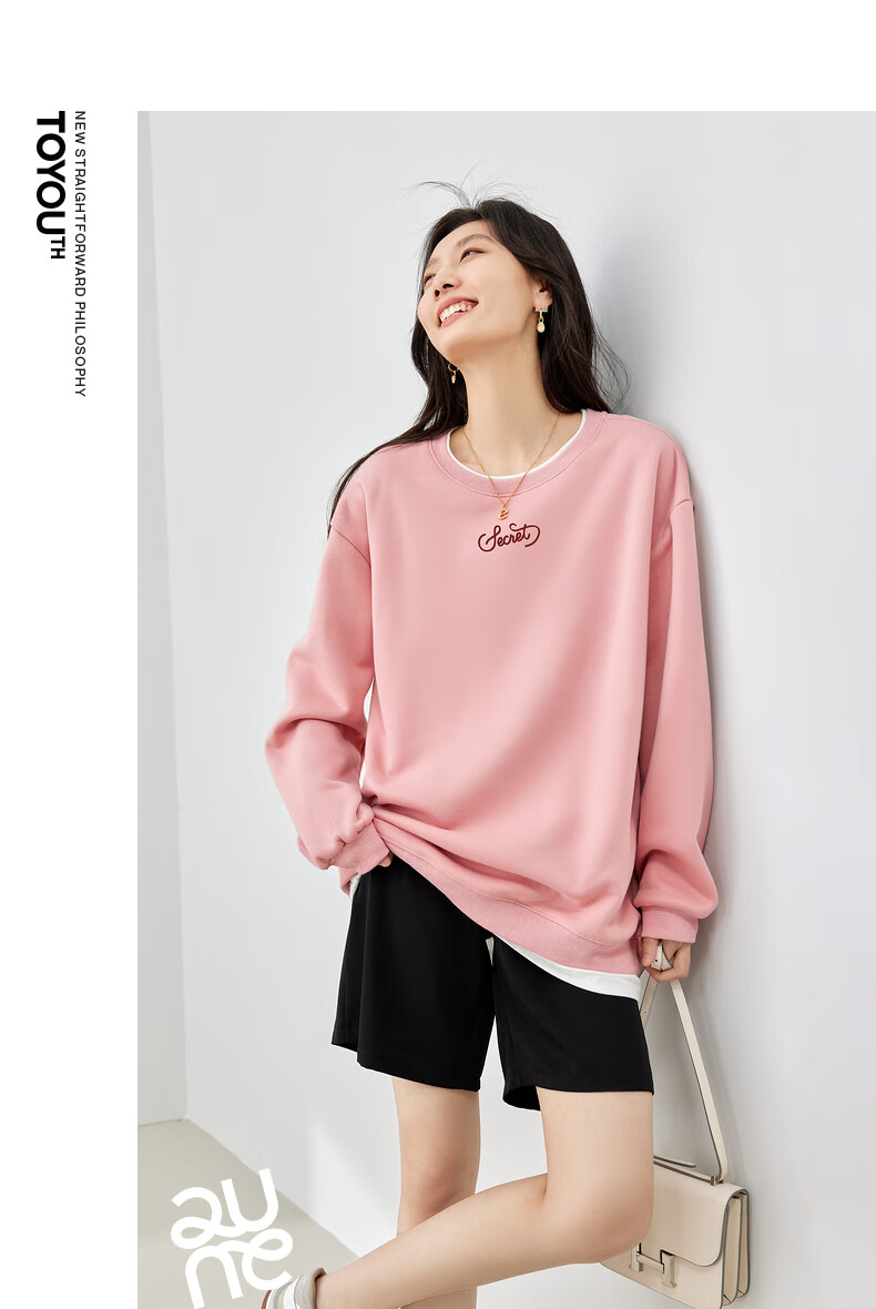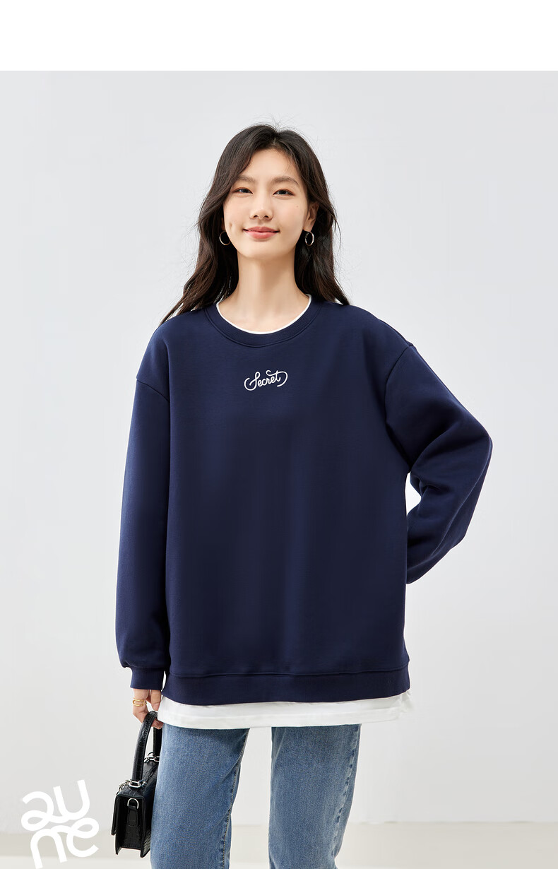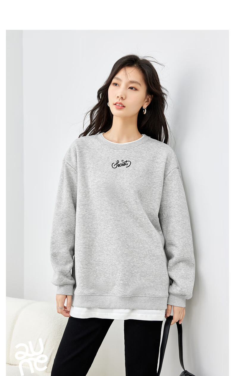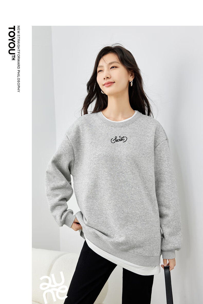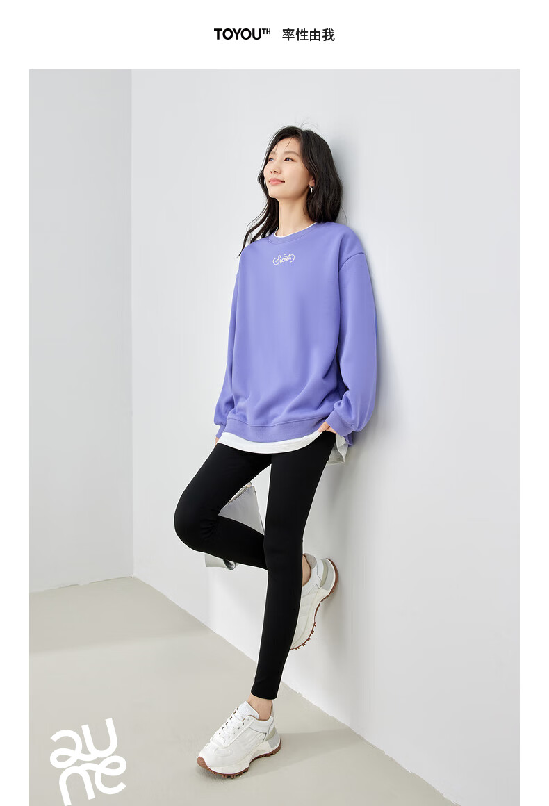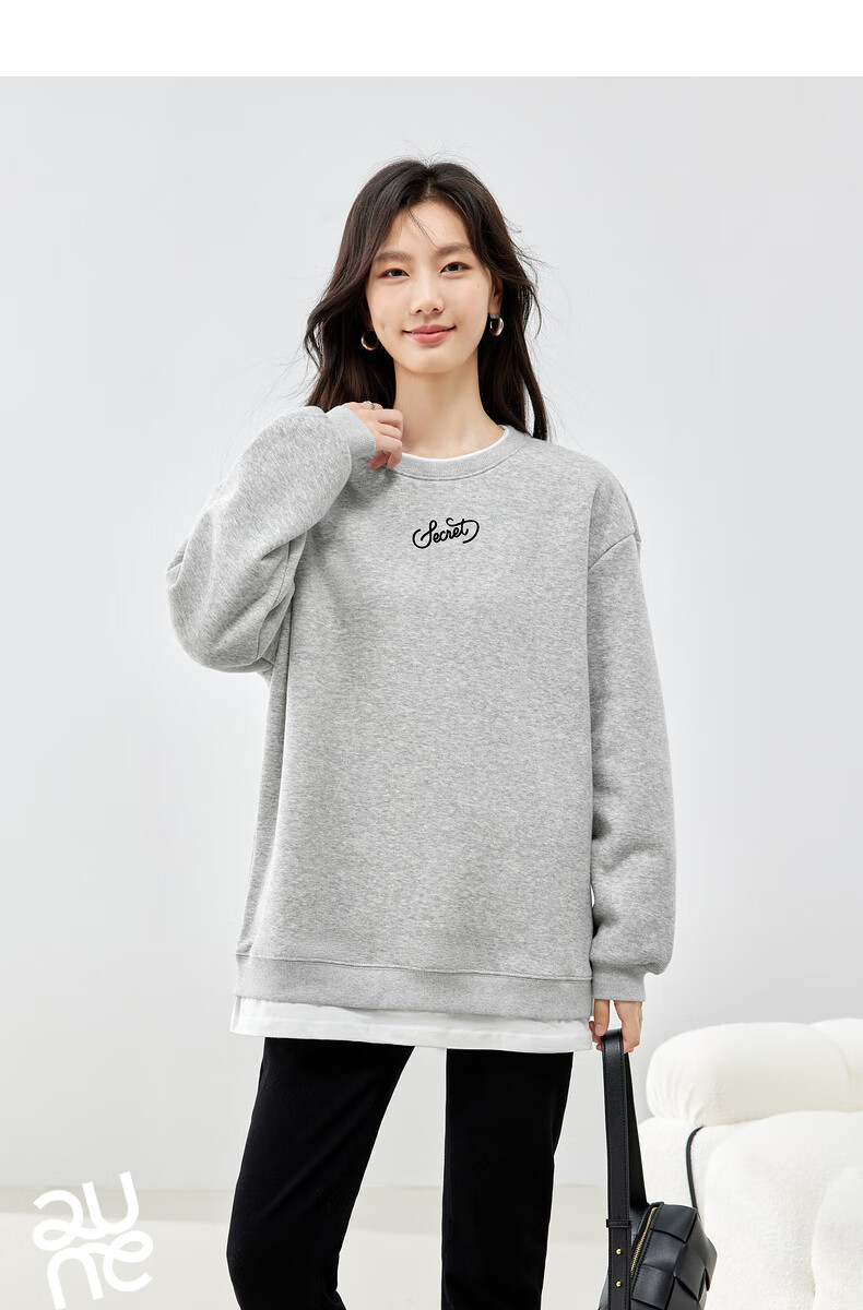 初语假两件加绒卫衣女2024秋冬新款宽松显瘦休闲圆领上衣 浅紫色-secret M
