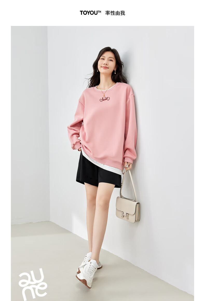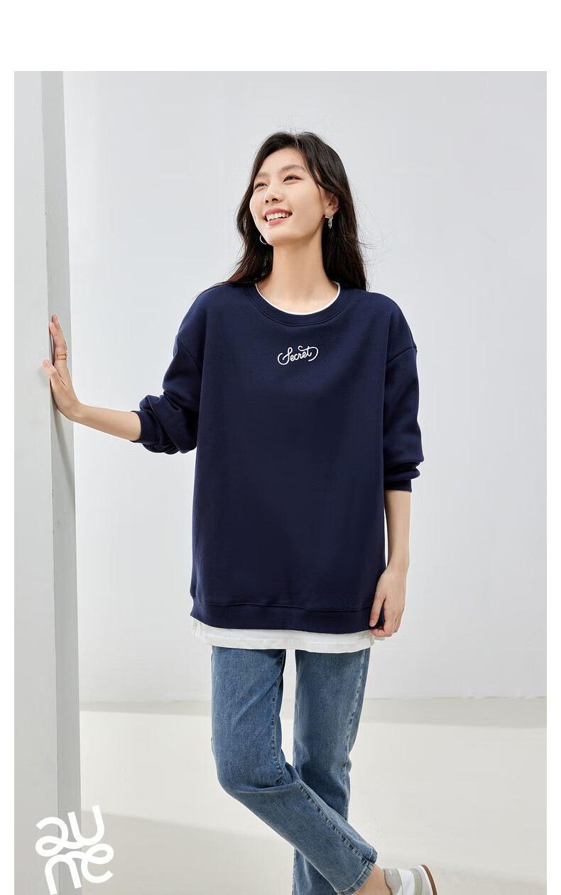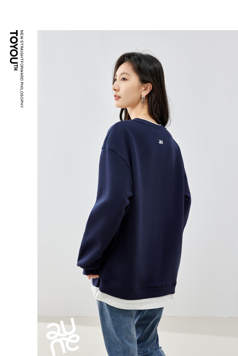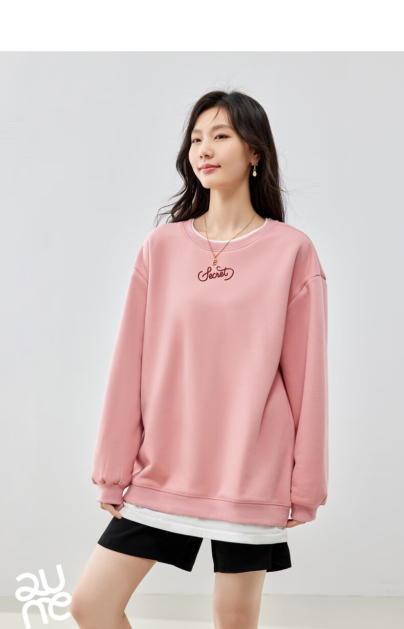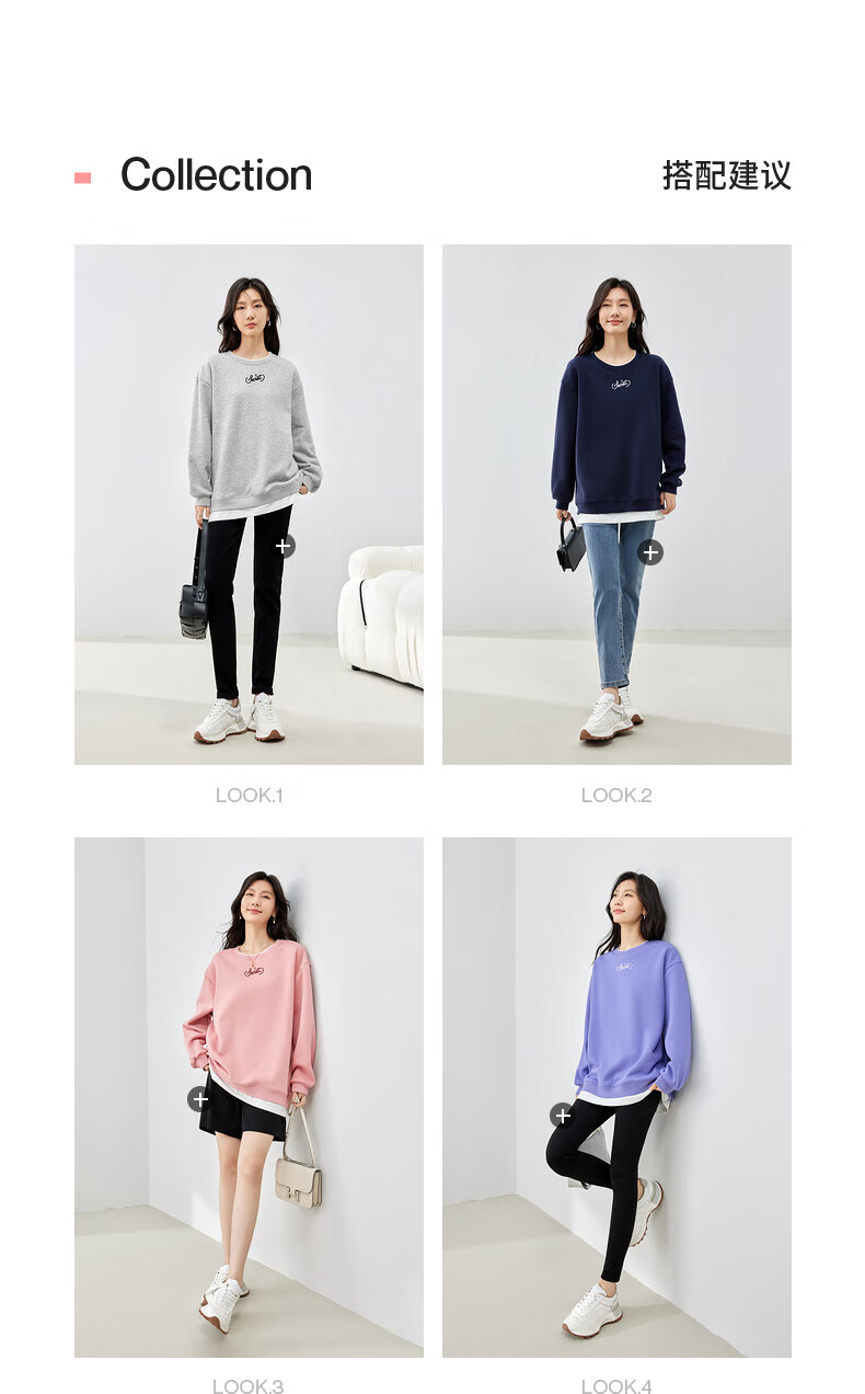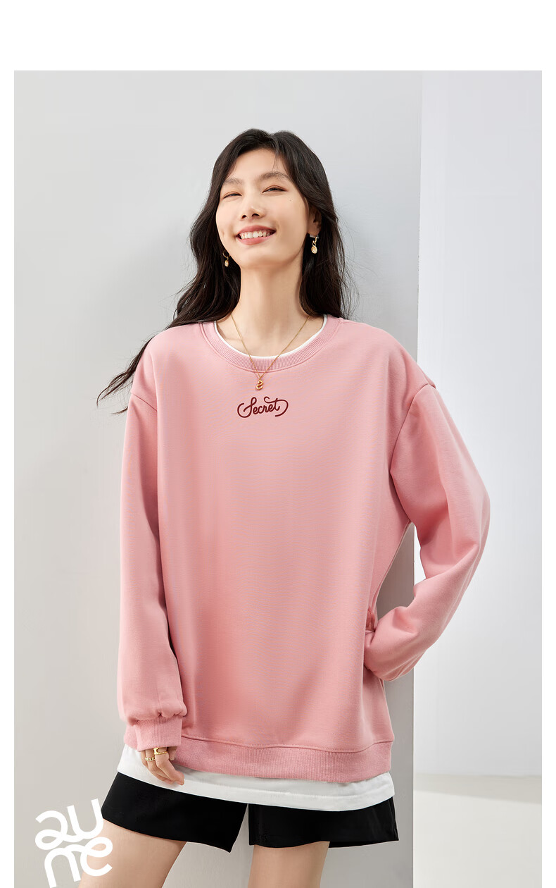 初语假两件加绒卫衣女2024秋冬新款宽松显瘦休闲圆领上衣 浅紫色-secret M