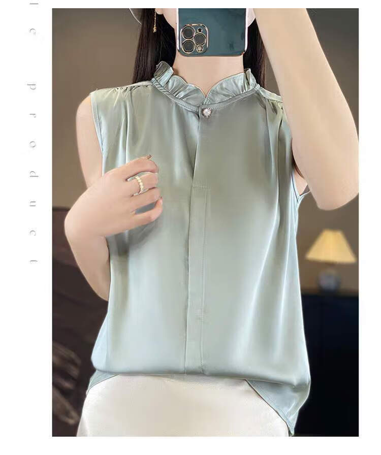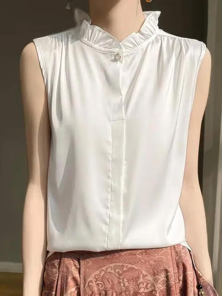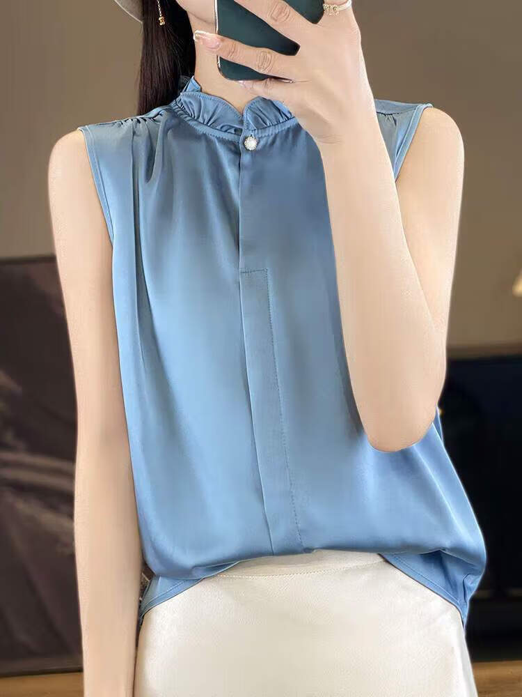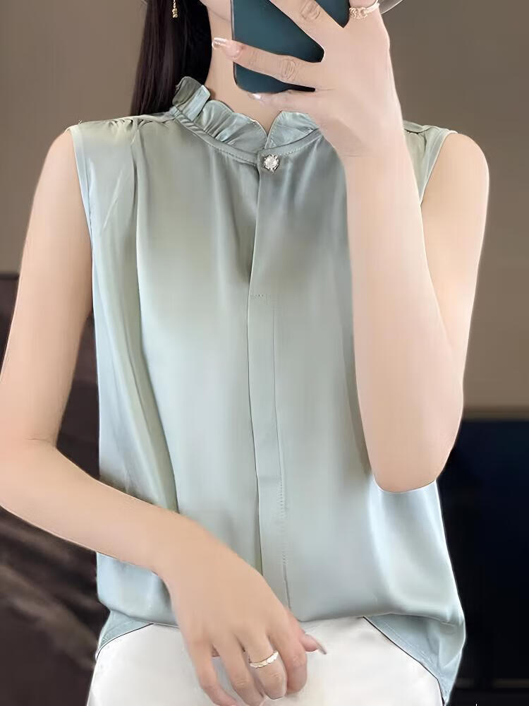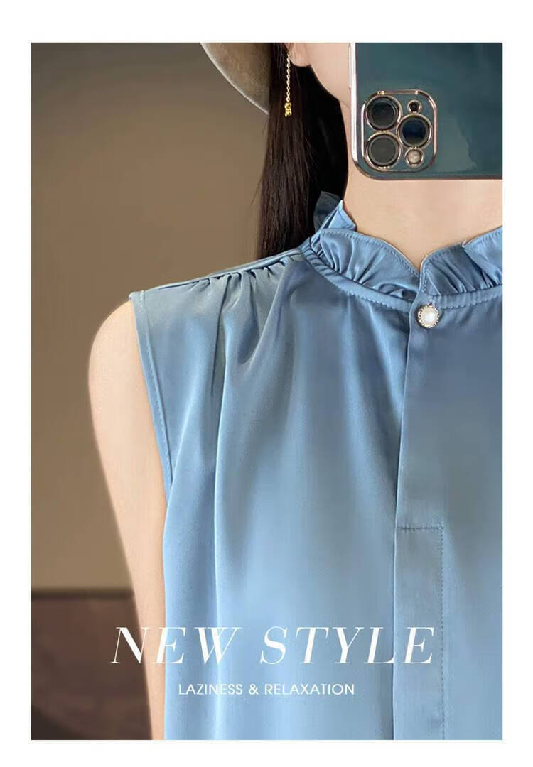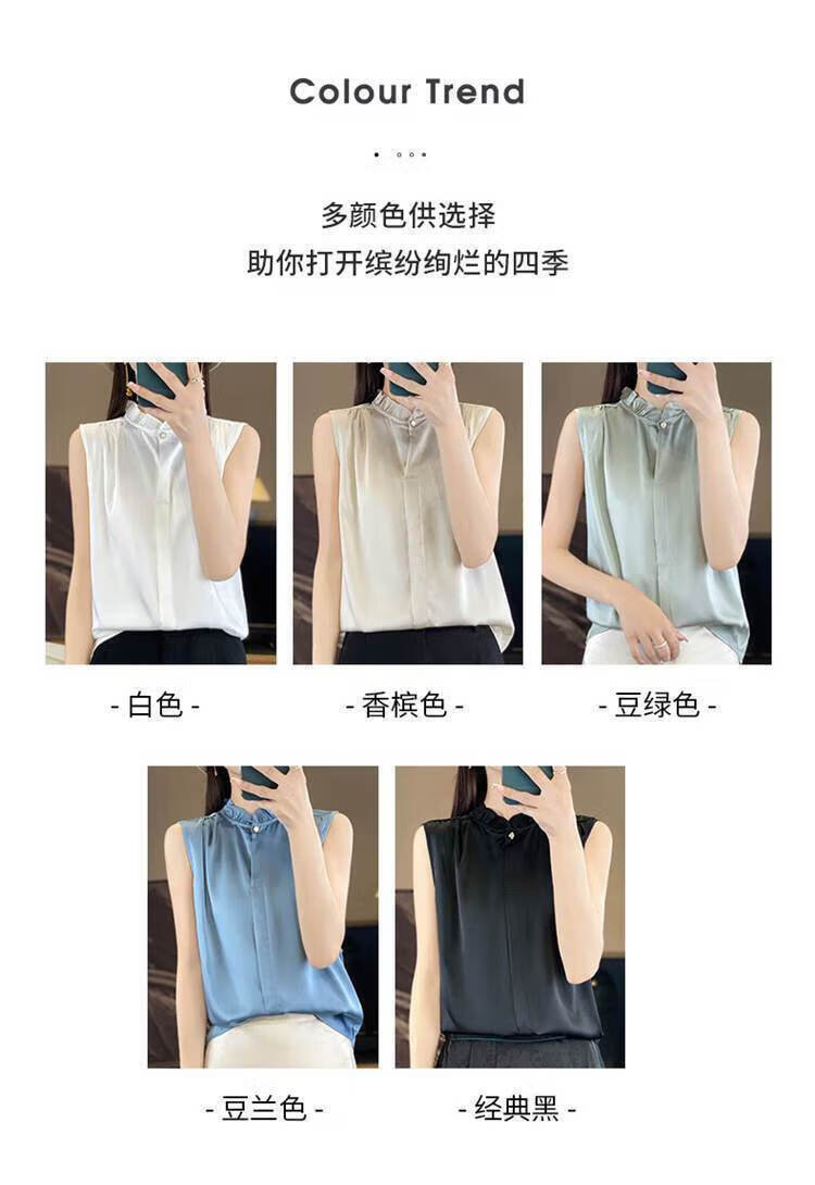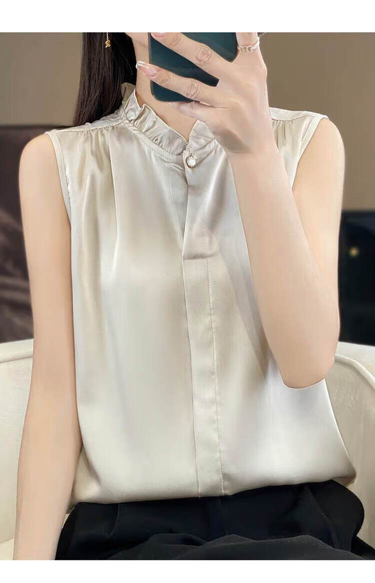 【现货清仓】2025新款法式花边缎面无袖内搭,百搭无袖上衣 香槟色 XL (建议110-120斤)