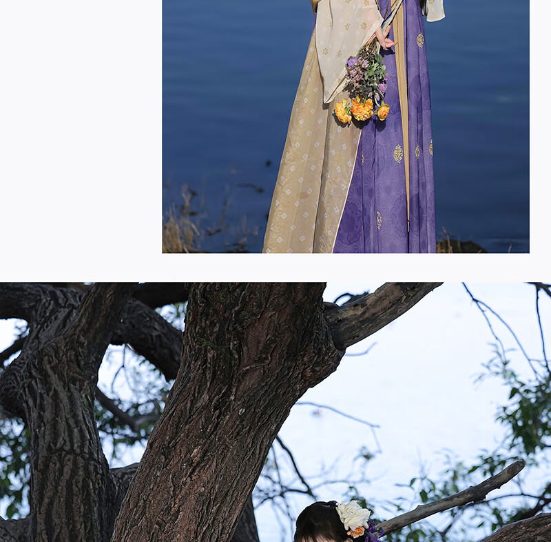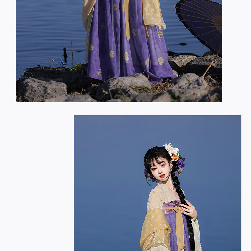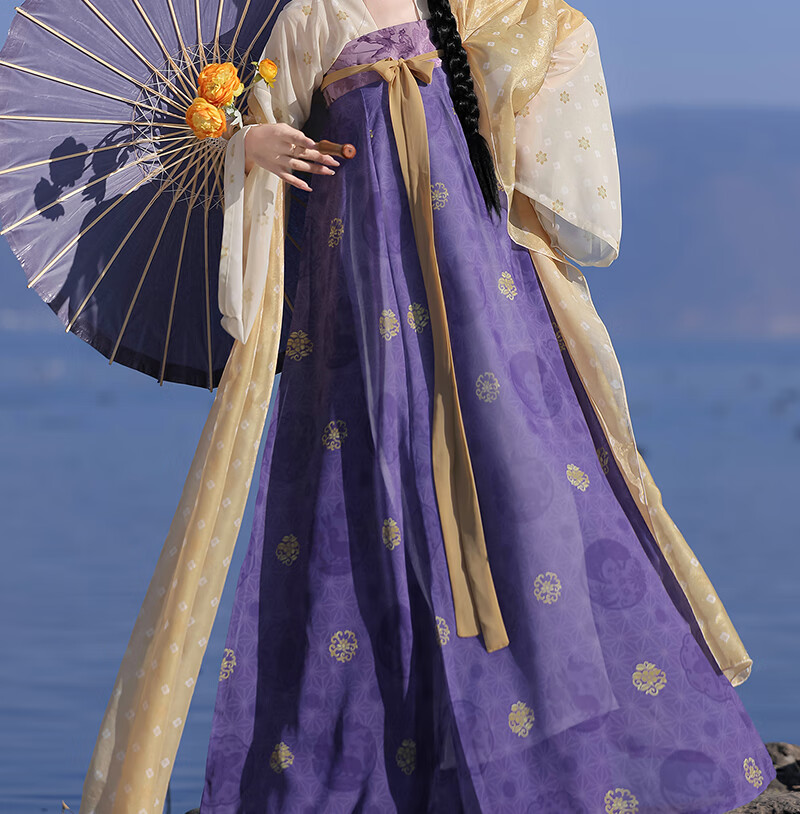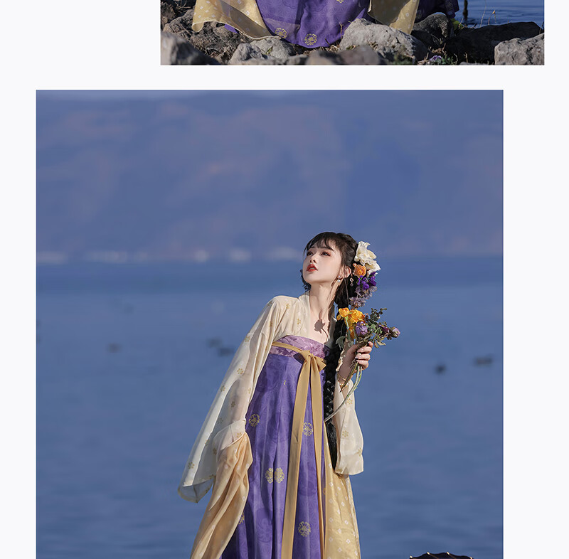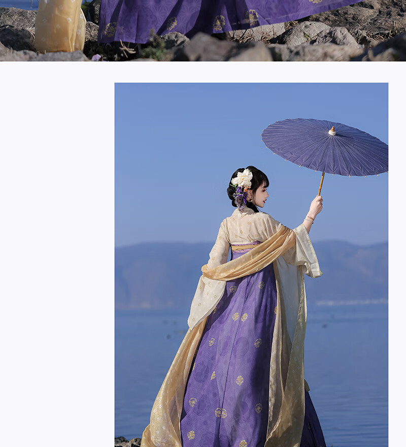 素羽华裳新款唐制汉服女【浮光】复原风团花齐胸襦裙日常仙气春夏 紫色套装(送披帛) M