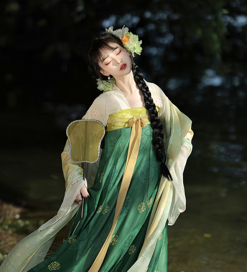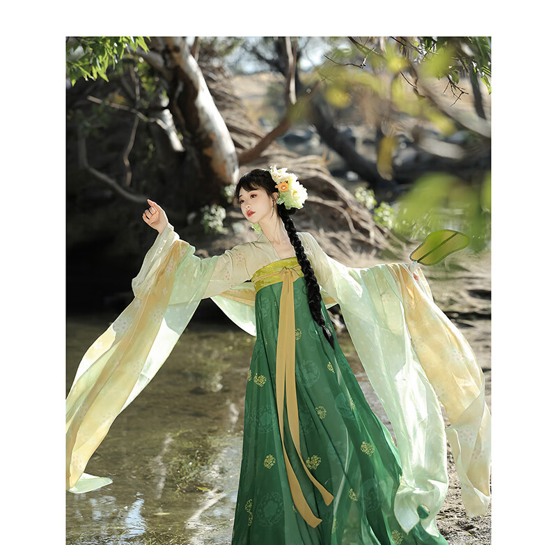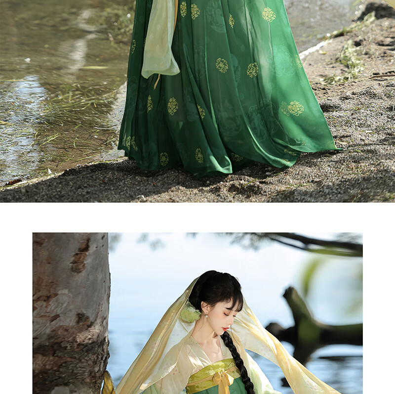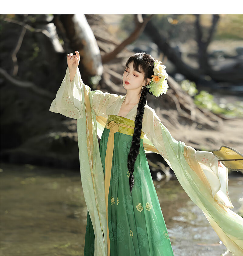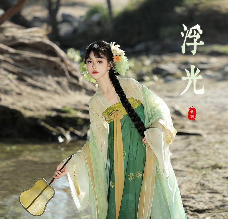 素羽华裳新款唐制汉服女【浮光】复原风团花齐胸襦裙日常仙气春夏 紫色套装(送披帛) M