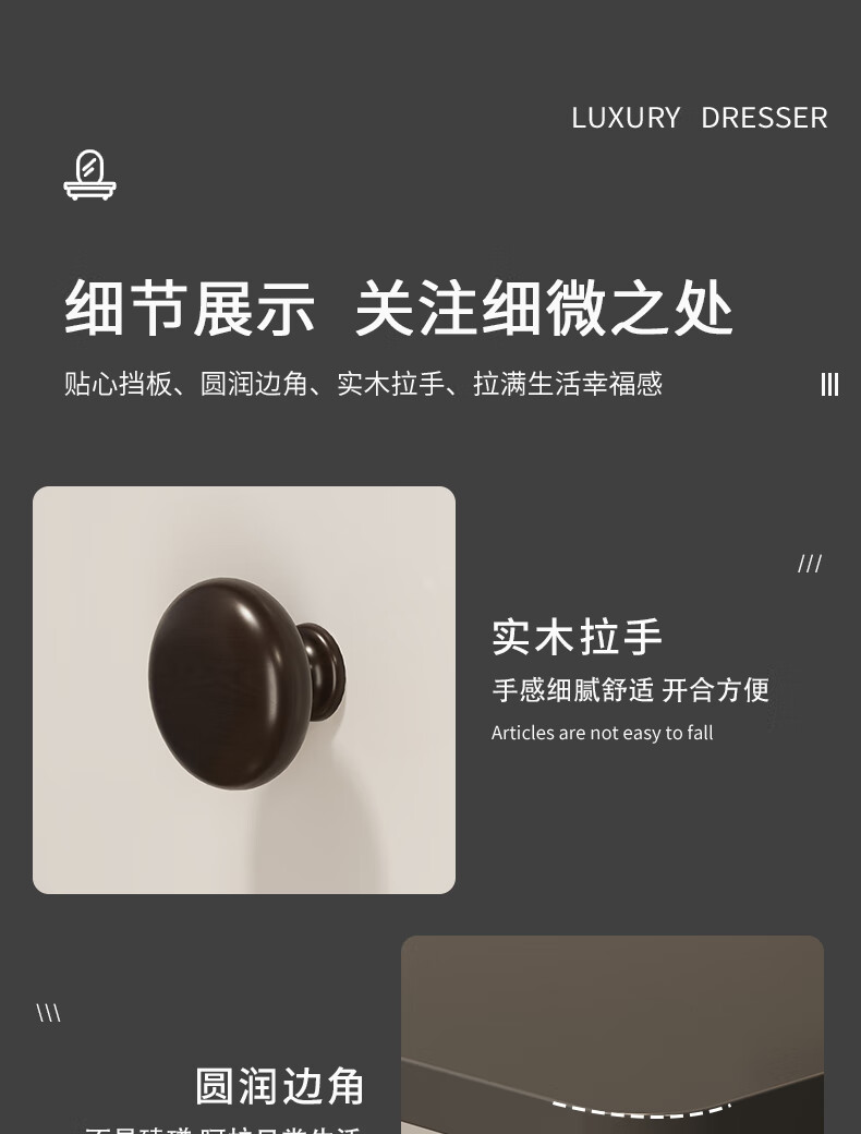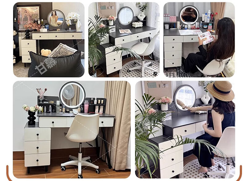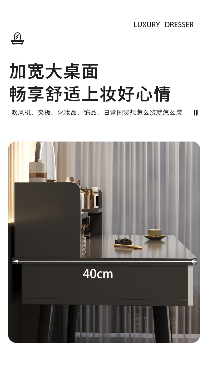 甘慕实木梳妆台斗柜收纳一体化妆桌家用卧室可伸缩简约灯镜化妆台桌子 五抽单桌-灰色100cm 加厚板材 3年质保