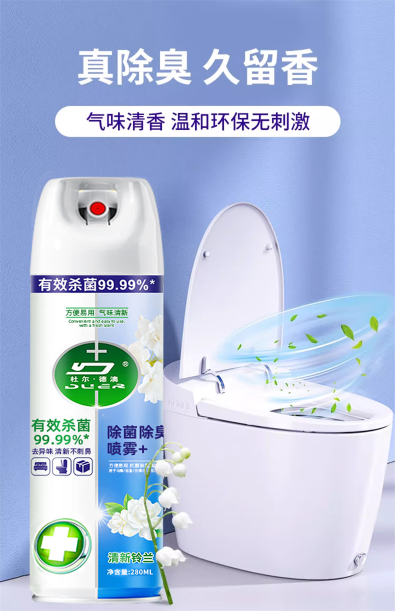 杜尔.德澳马桶消毒喷雾剂浴室防臭去味鞋子除臭厕所除菌清洁空气清新剂 柑橘香+铃兰香 280ml 2瓶