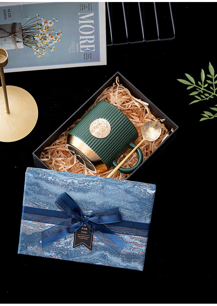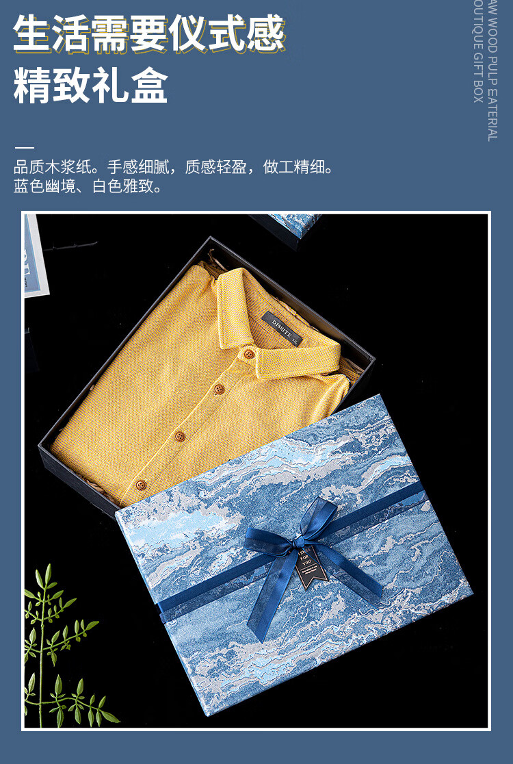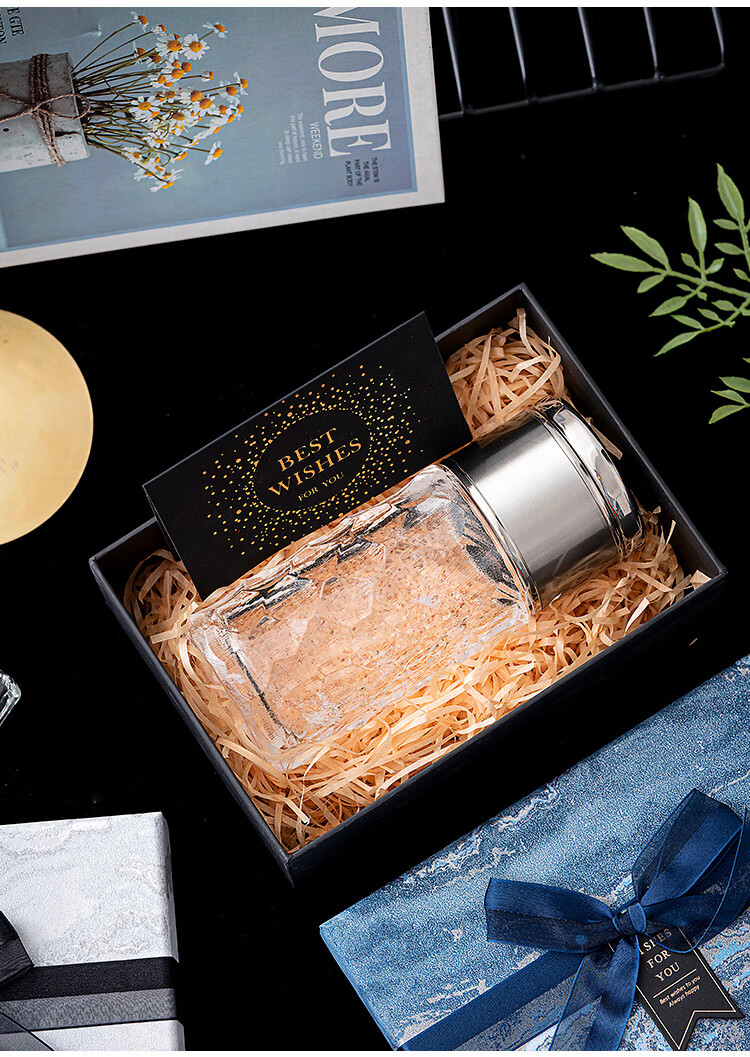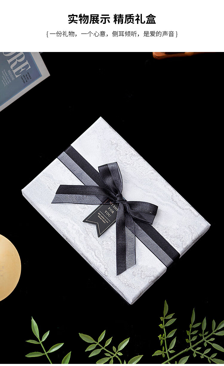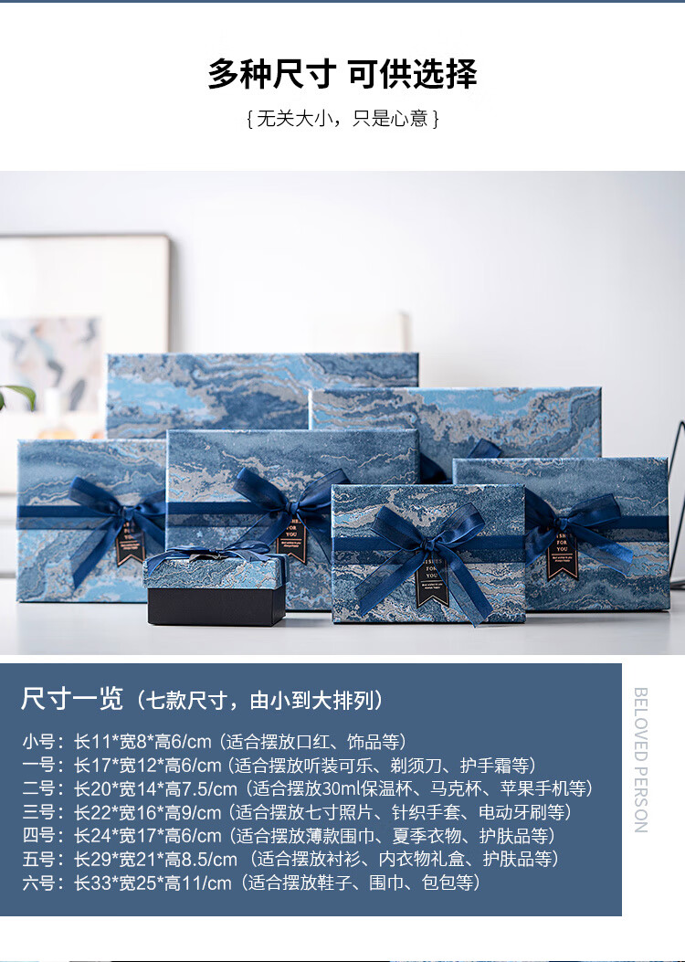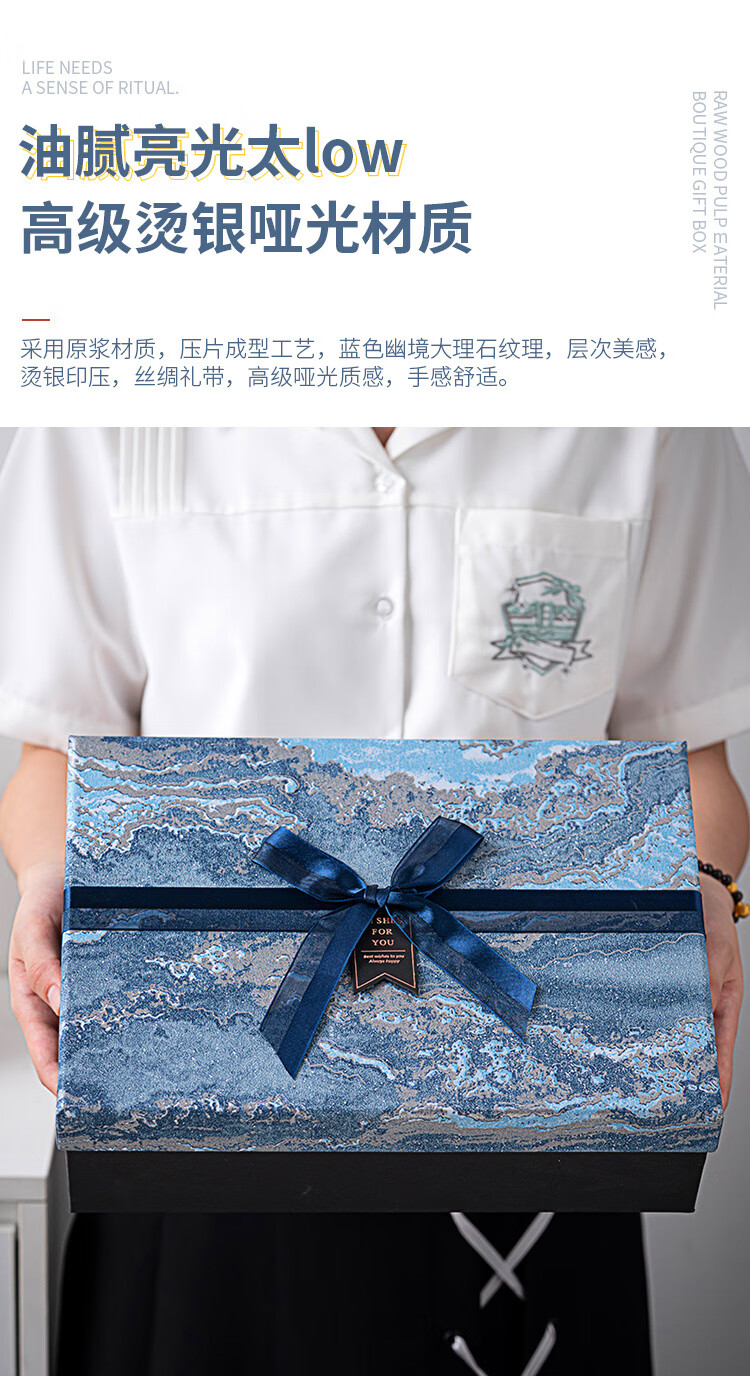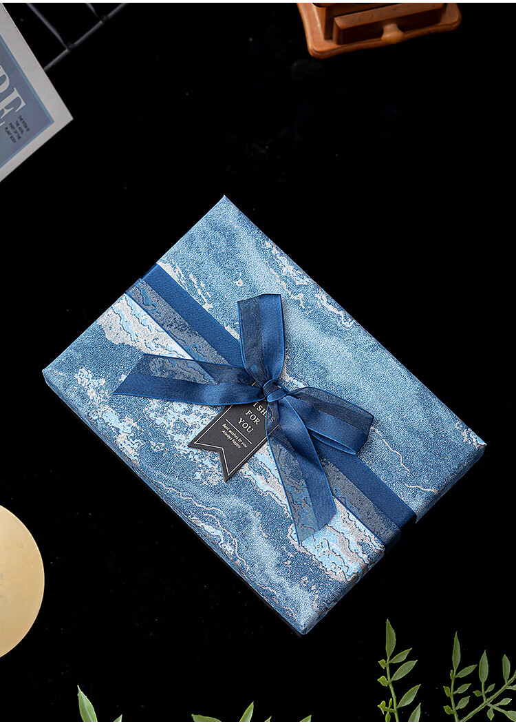 维诺亚礼盒空盒大号男生款生日礼物包装盒小号口红香水围巾仪式感礼品盒 蓝采雅纹(送拉菲草.贺卡) 小号11*8*5.5CM