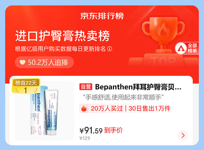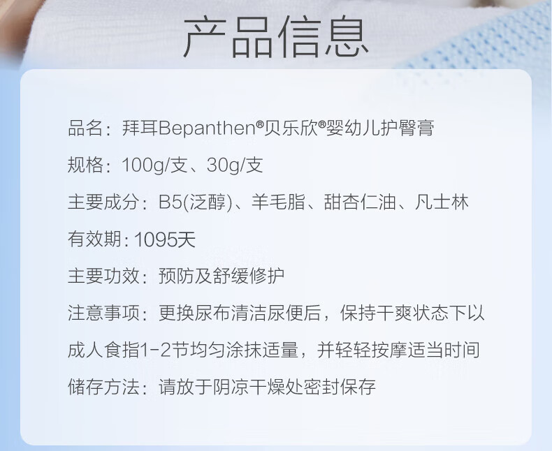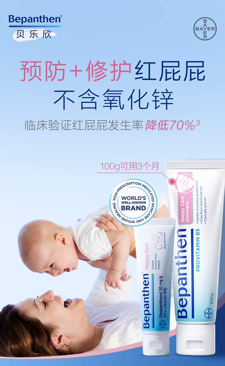 拜耳护臀膏贝乐欣新生婴儿护臀膏霜宝宝屁屁乐膏100g*2/套 德国进口