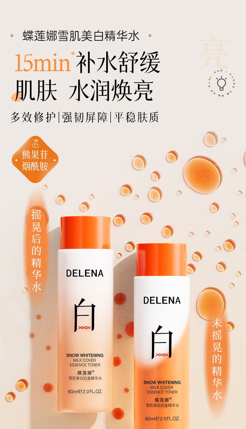 蝶莲娜烟酰胺发光水美白淡斑去黄气保湿滋润抗糖抗氧VC爽肤水男女 奶盖水60ML*1支
