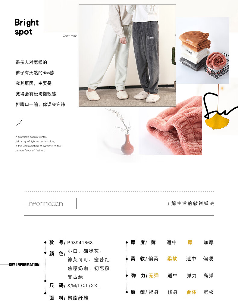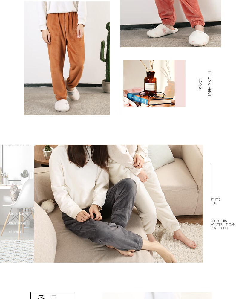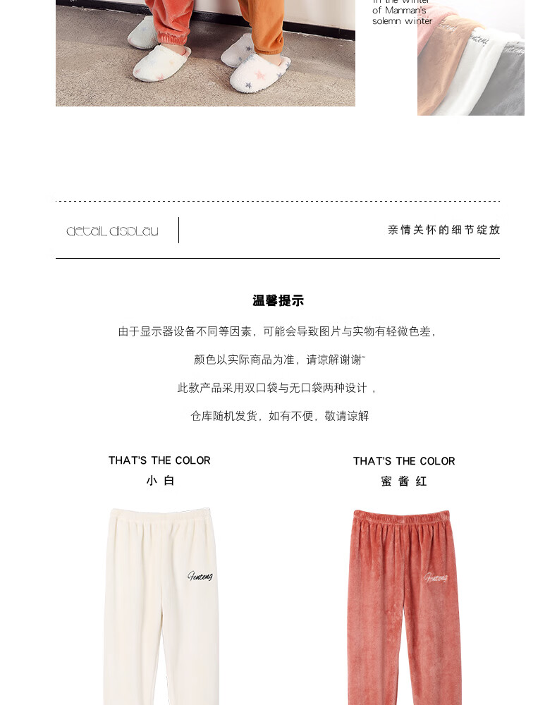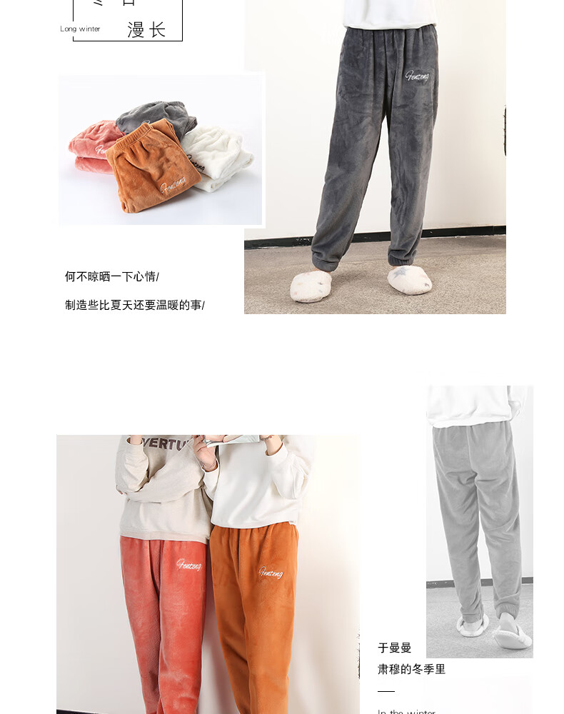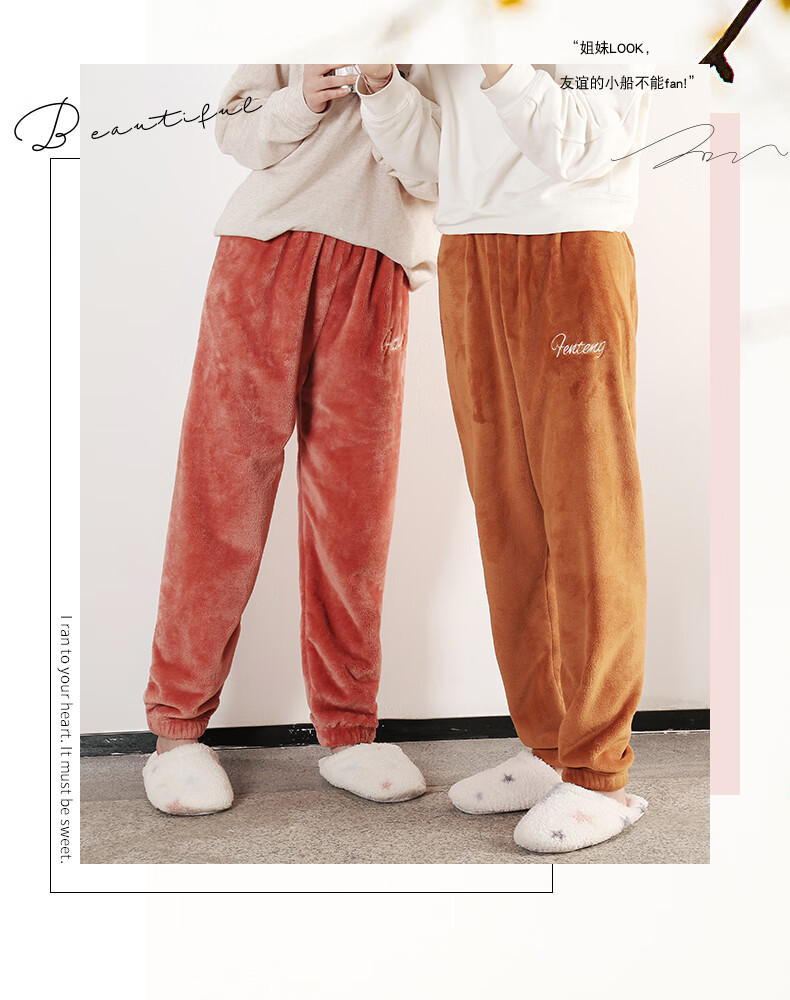 芬腾睡裤女珊瑚绒秋冬季新款加绒加厚裤子保暖休闲大码家居裤单裤绒裤