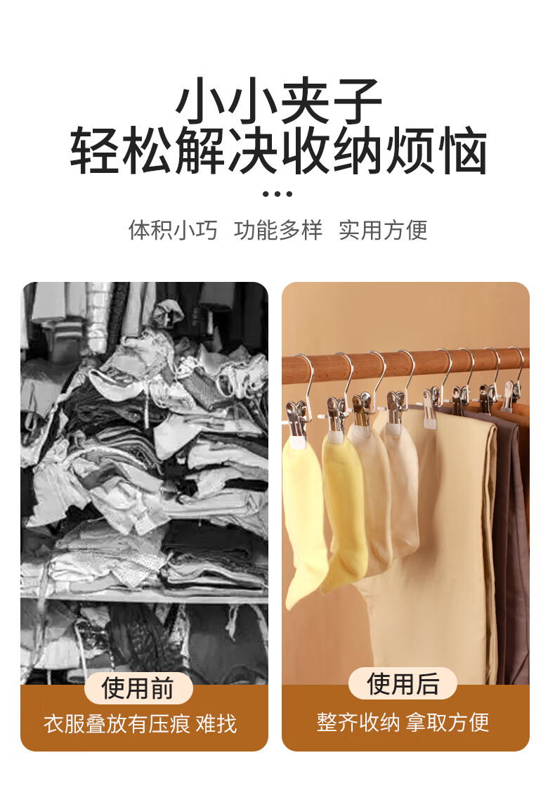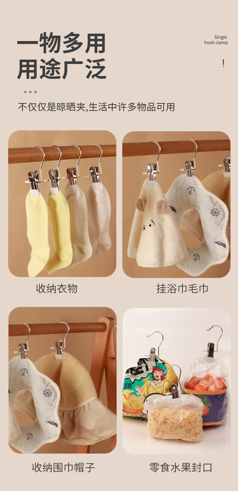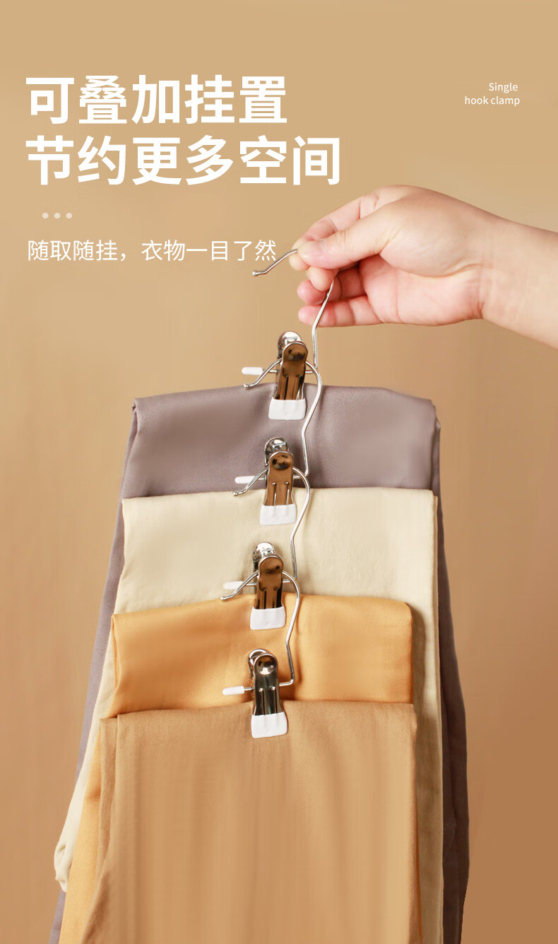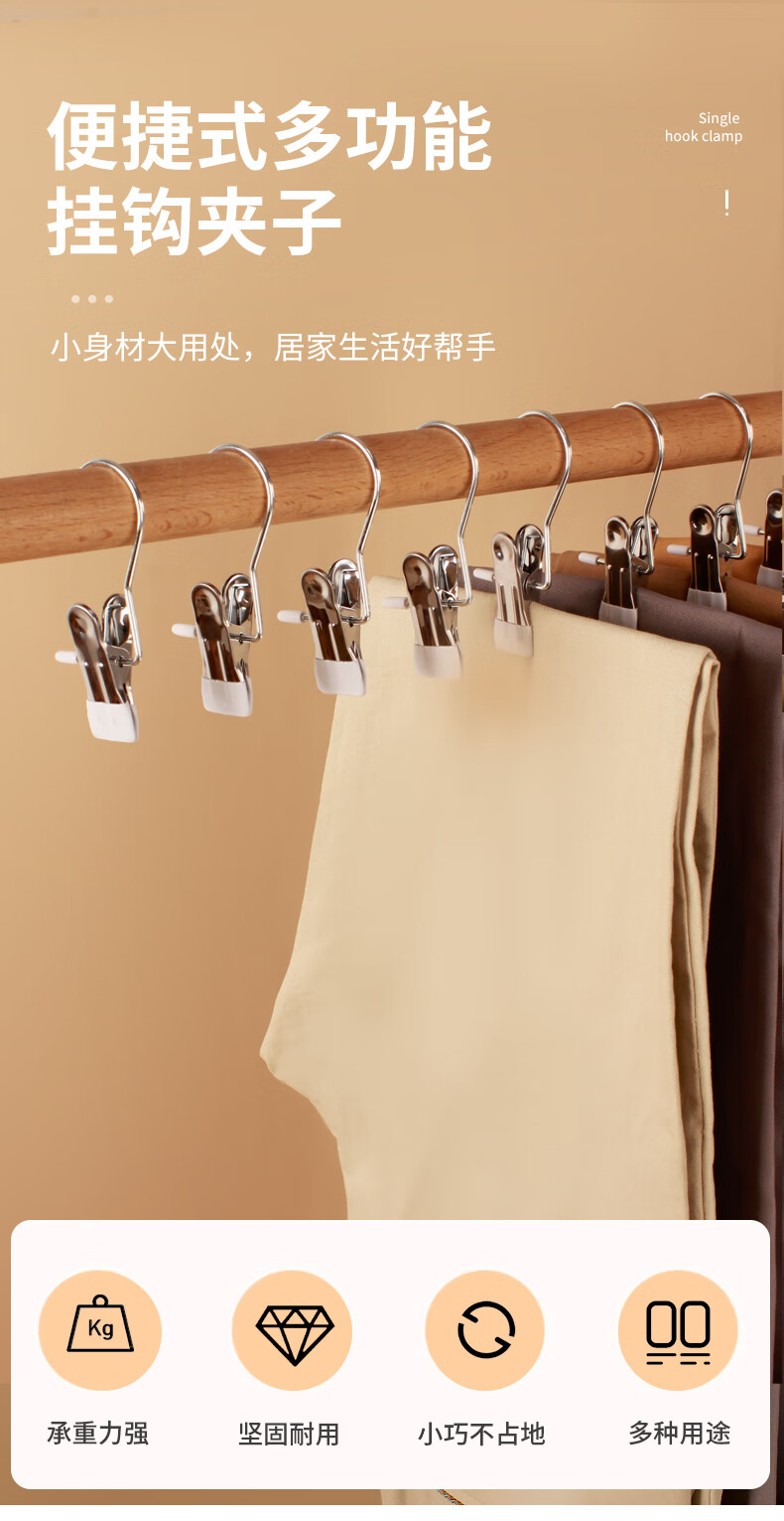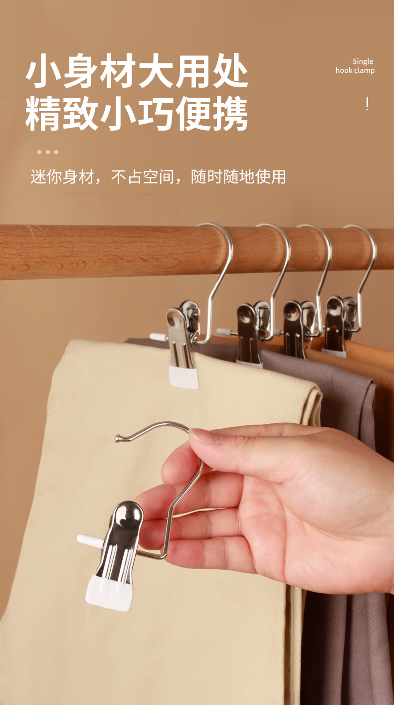 喜泽裤夹子家用无痕裤子衣架专用收纳神器多功能挂钩晾衣夹帽子单裤架 多功能挂钩夹10个装