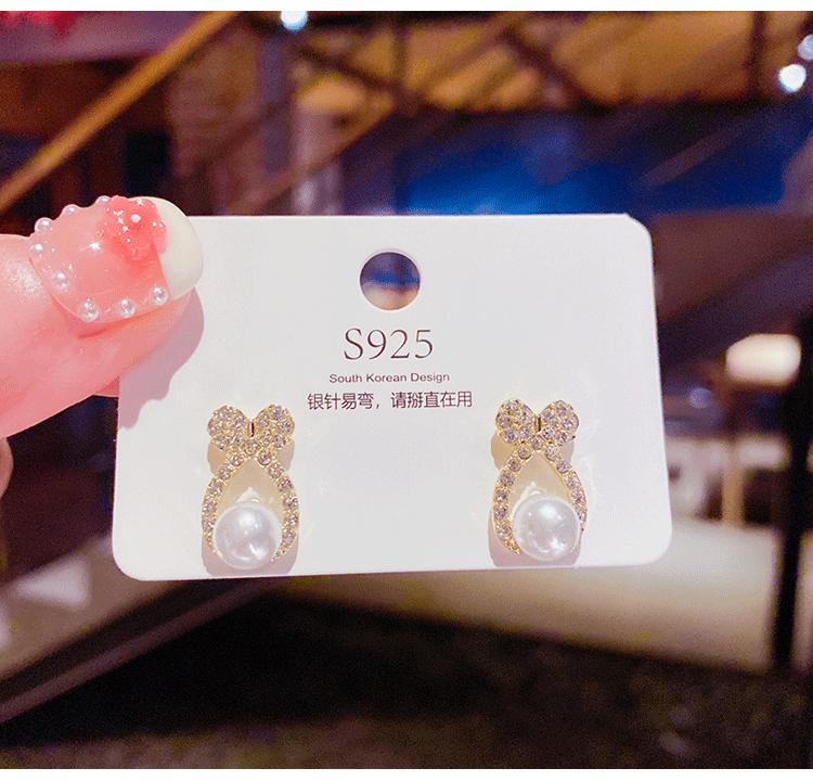 玖维娅925银针珍珠耳环女新款闪钻气质韩国个性简约百搭耳钉新年耳饰品 JYD213珍珠耳钉一对