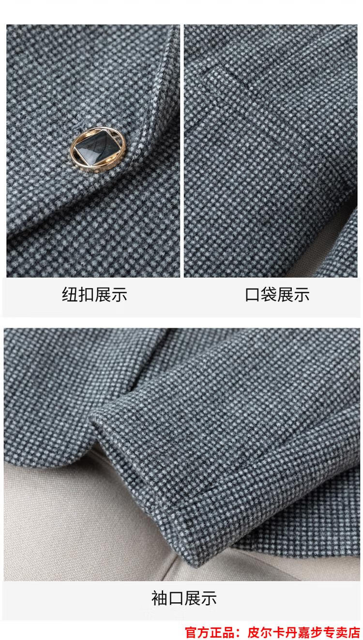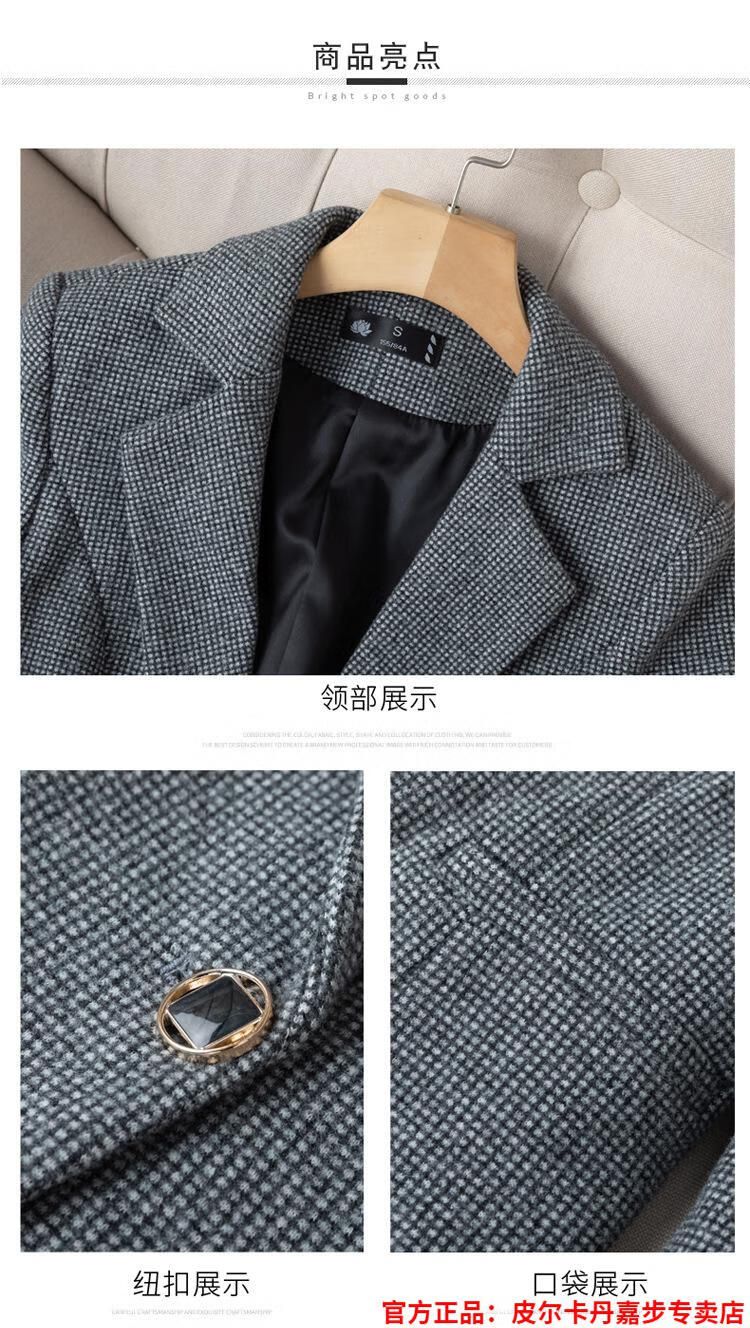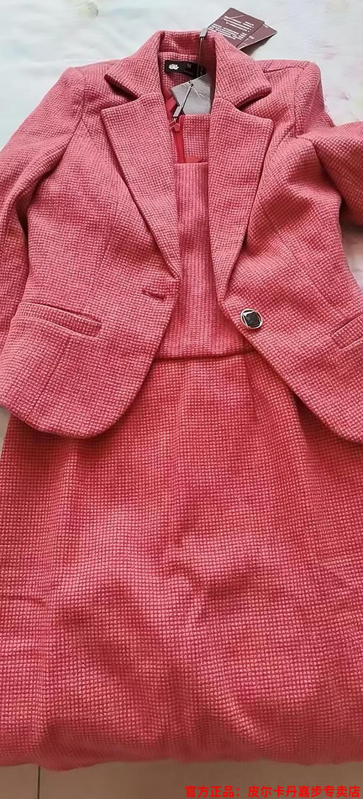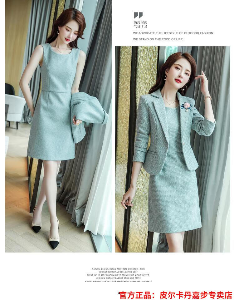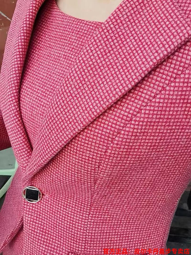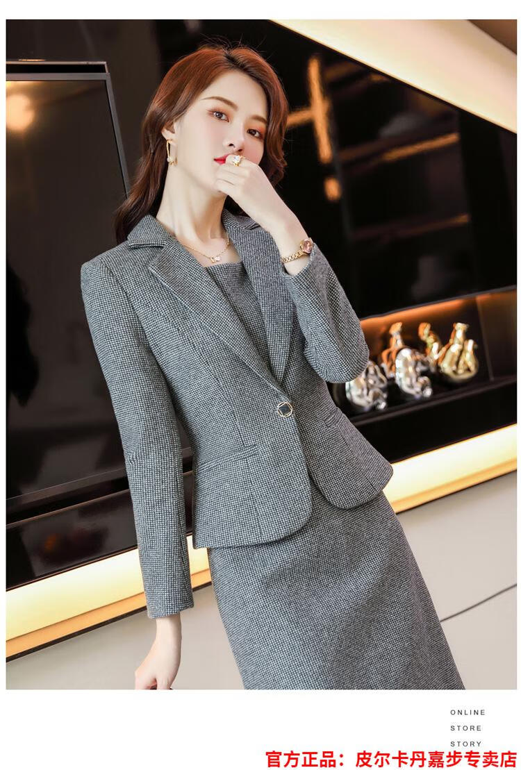 皮尔卡丹格子小西装外套女秋短款2025秋季新款职业装连衣裙春秋西服裙套装 杏西装+杏连衣裙 S 【90斤以内】