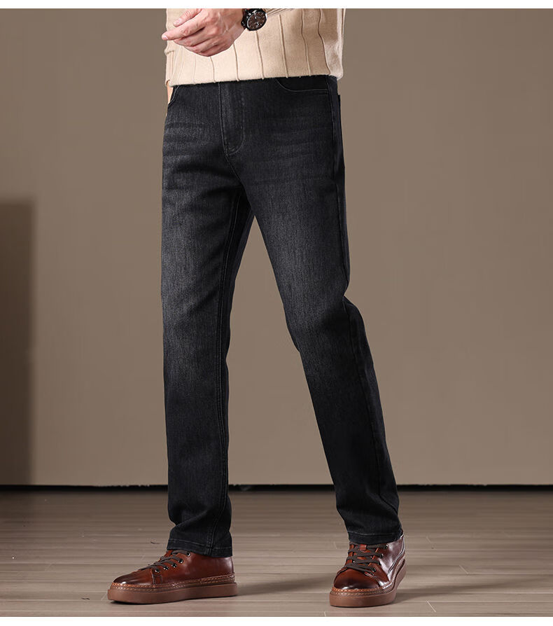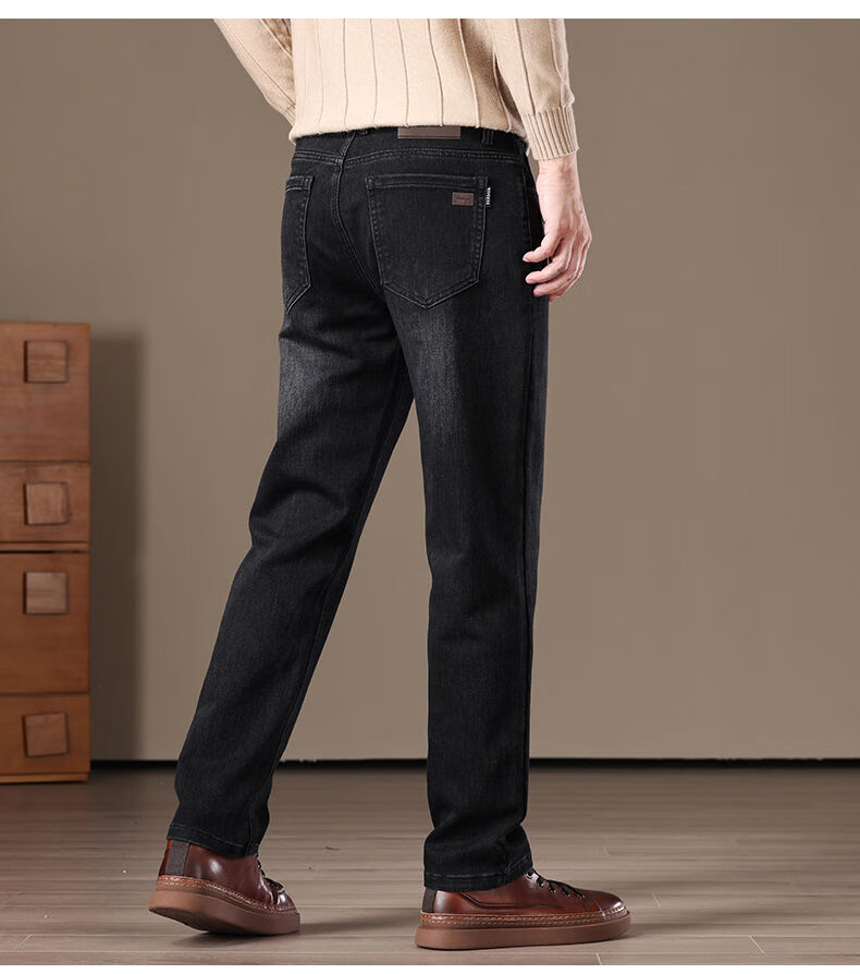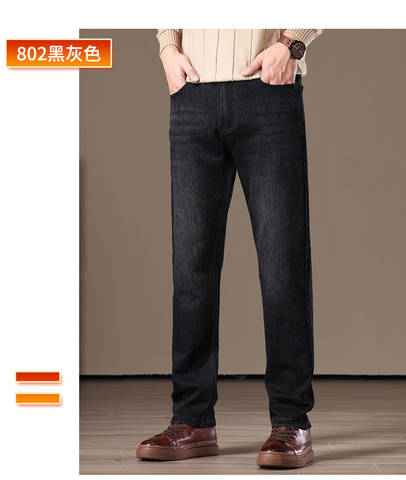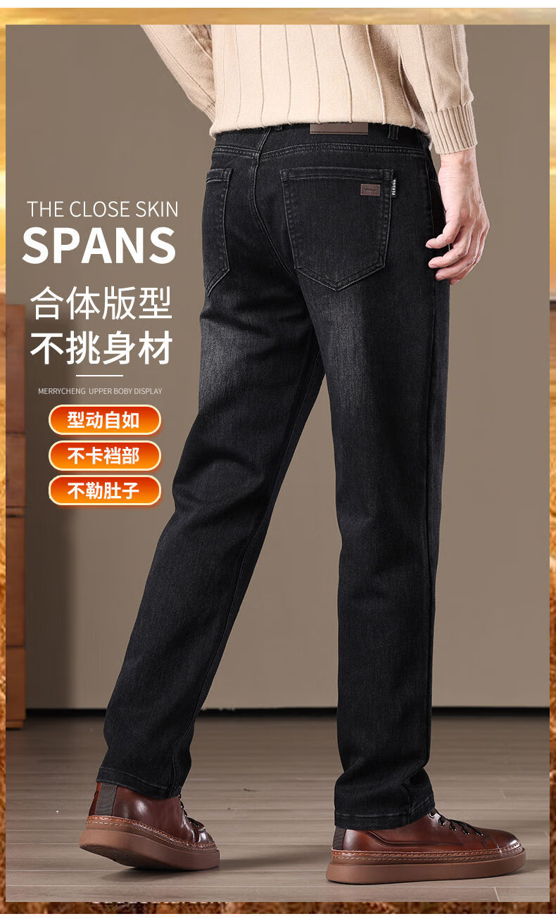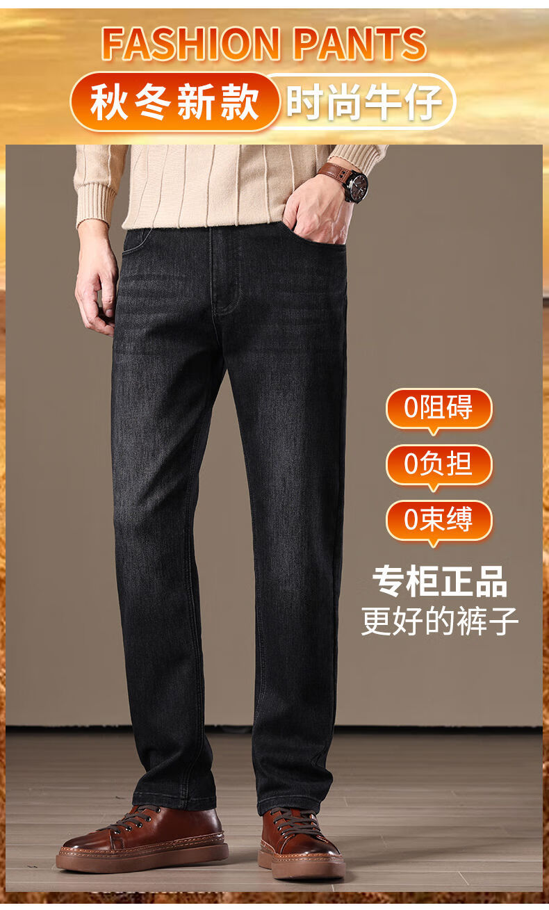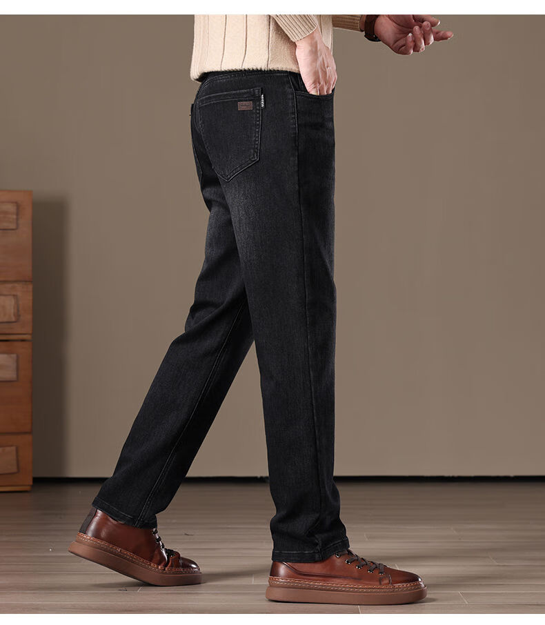 金盾(KIN DON)金盾秋冬加厚加绒男士牛仔裤2025新款直筒宽松商务中年保暖长裤子 706-钻石蓝冬季加绒 34