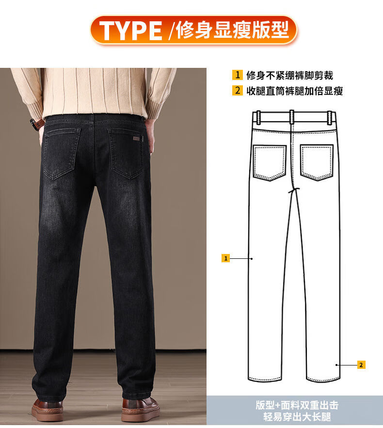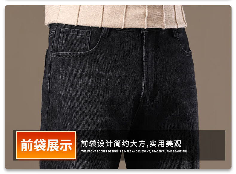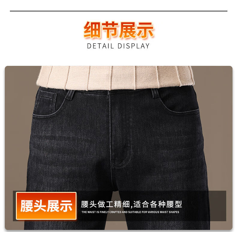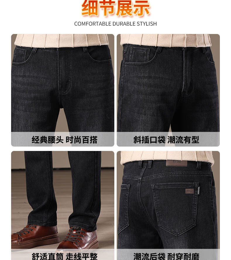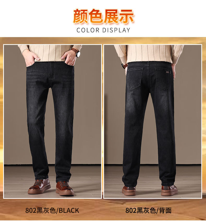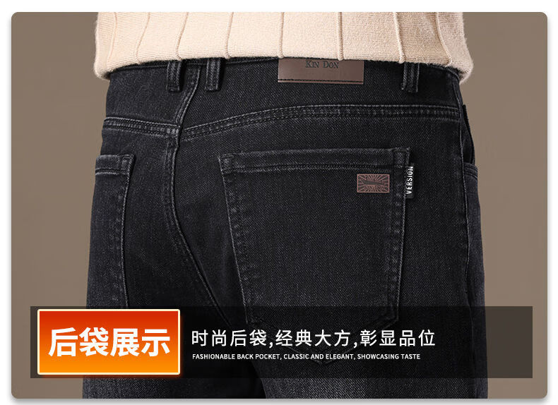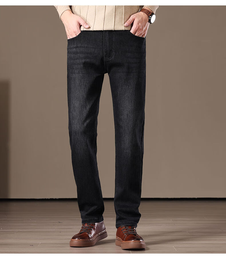 金盾(KIN DON)金盾秋冬加厚加绒男士牛仔裤2025新款直筒宽松商务中年保暖长裤子 706-钻石蓝冬季加绒 34