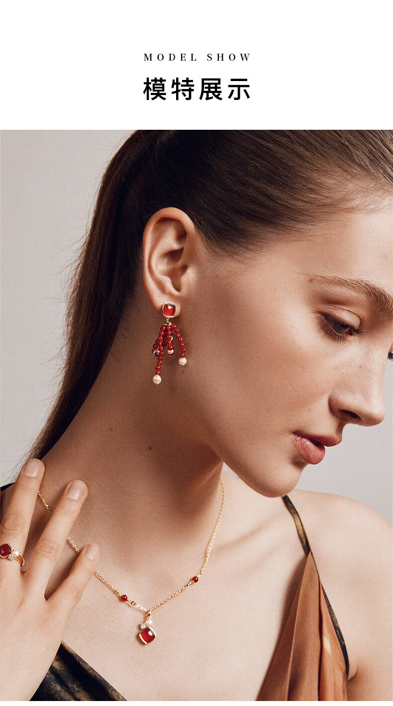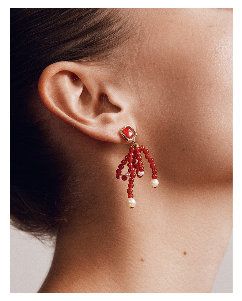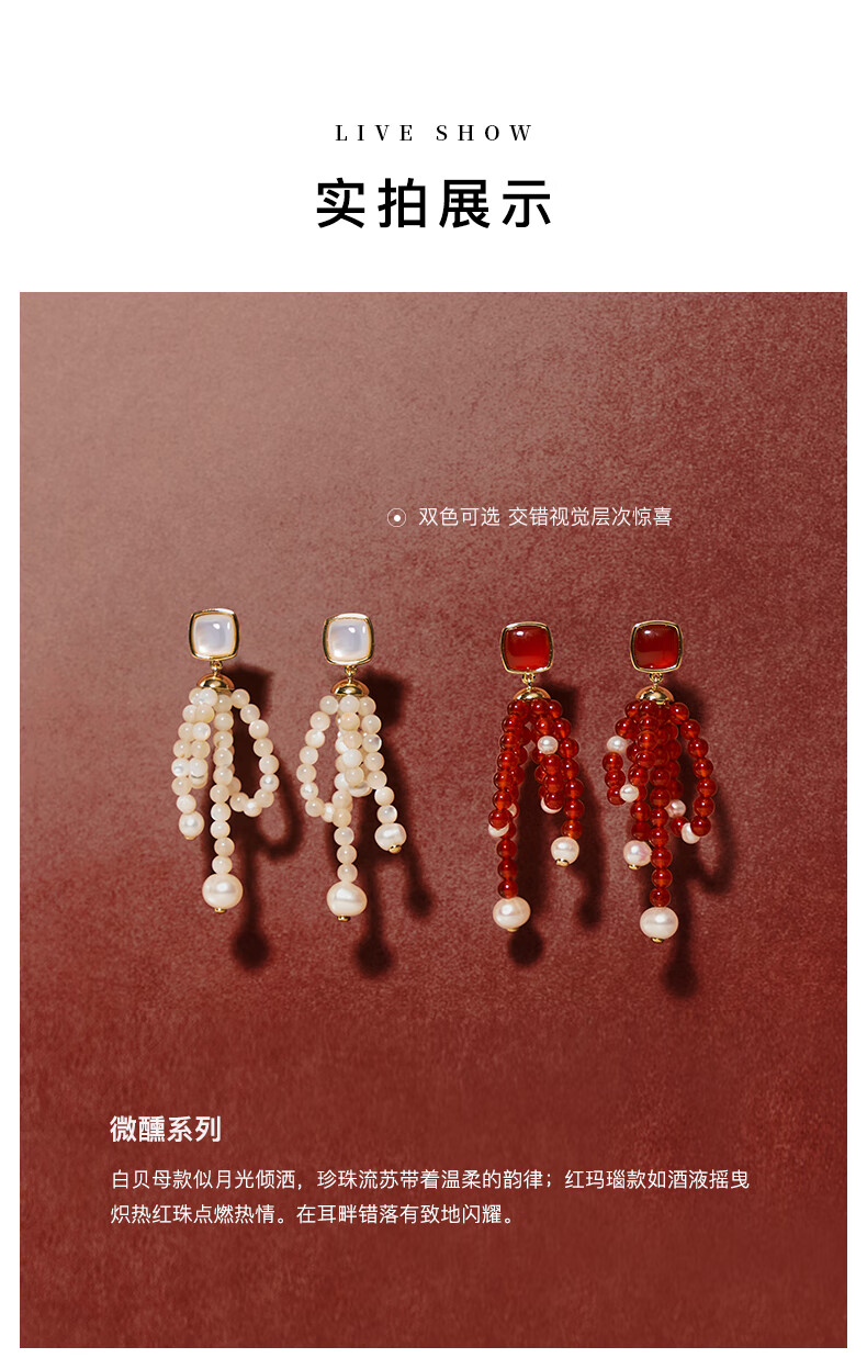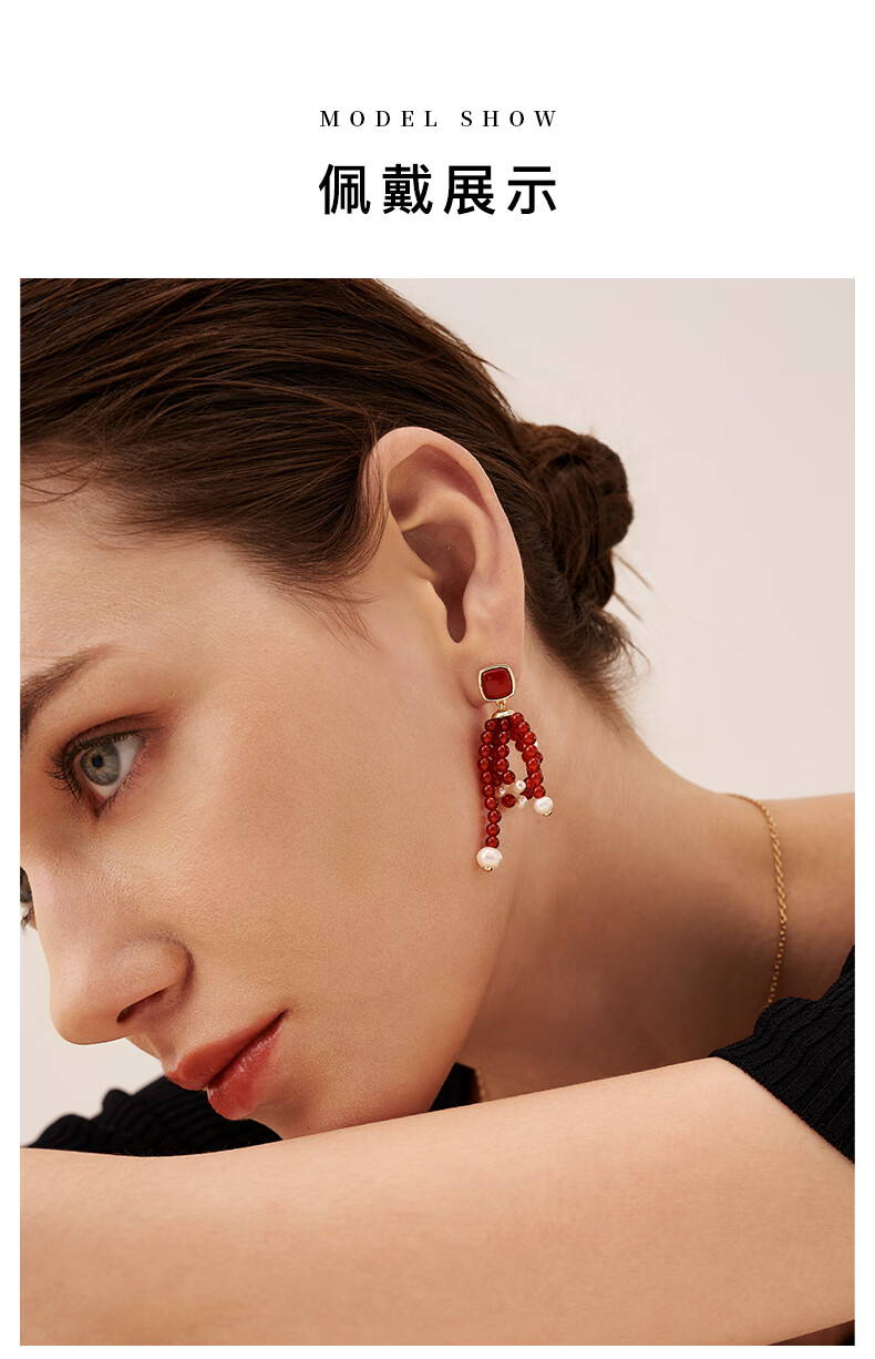 Amber Lollipop珍珠耳环女士小众感红玛瑙流苏耳坠新年情人节生日礼物送女友老婆 红色-微醺