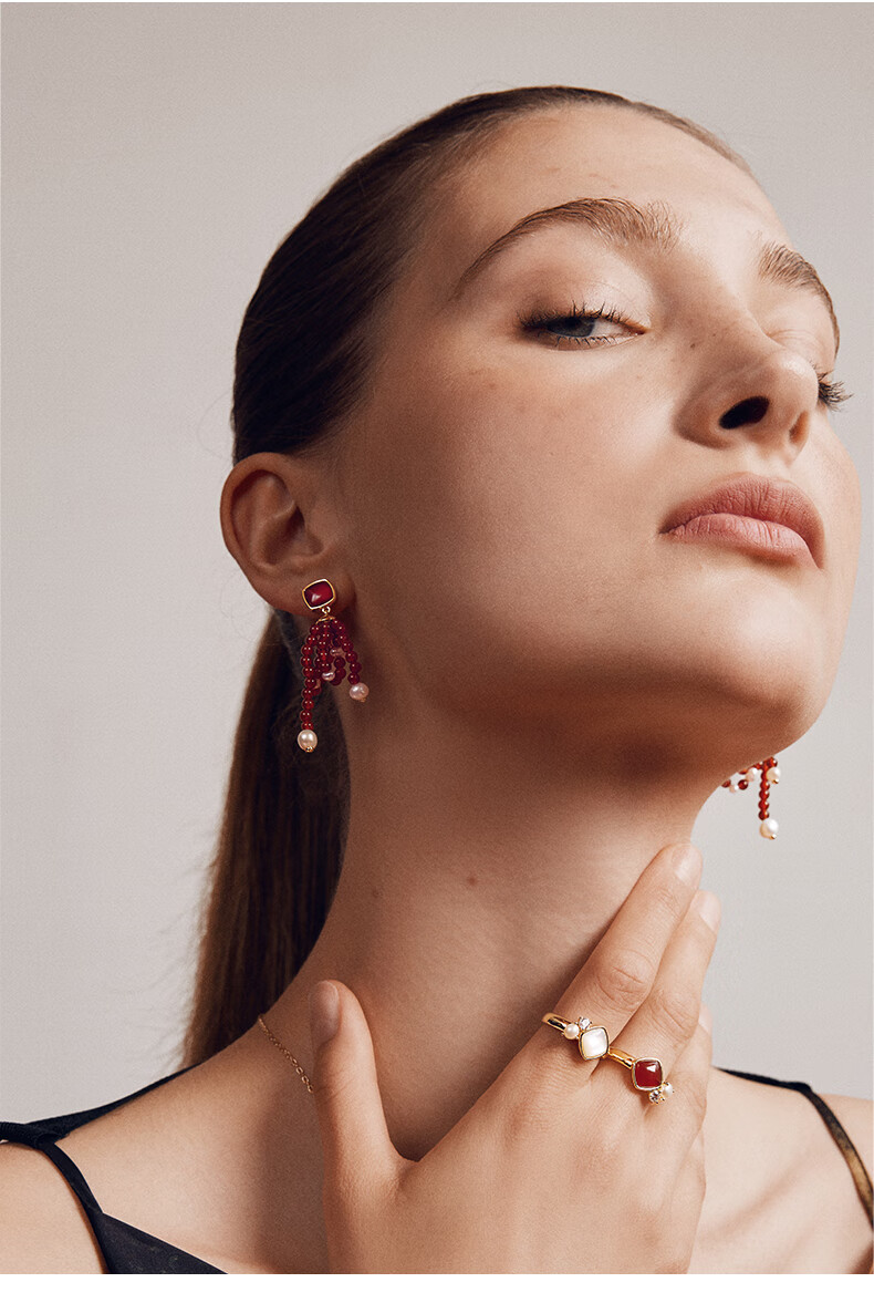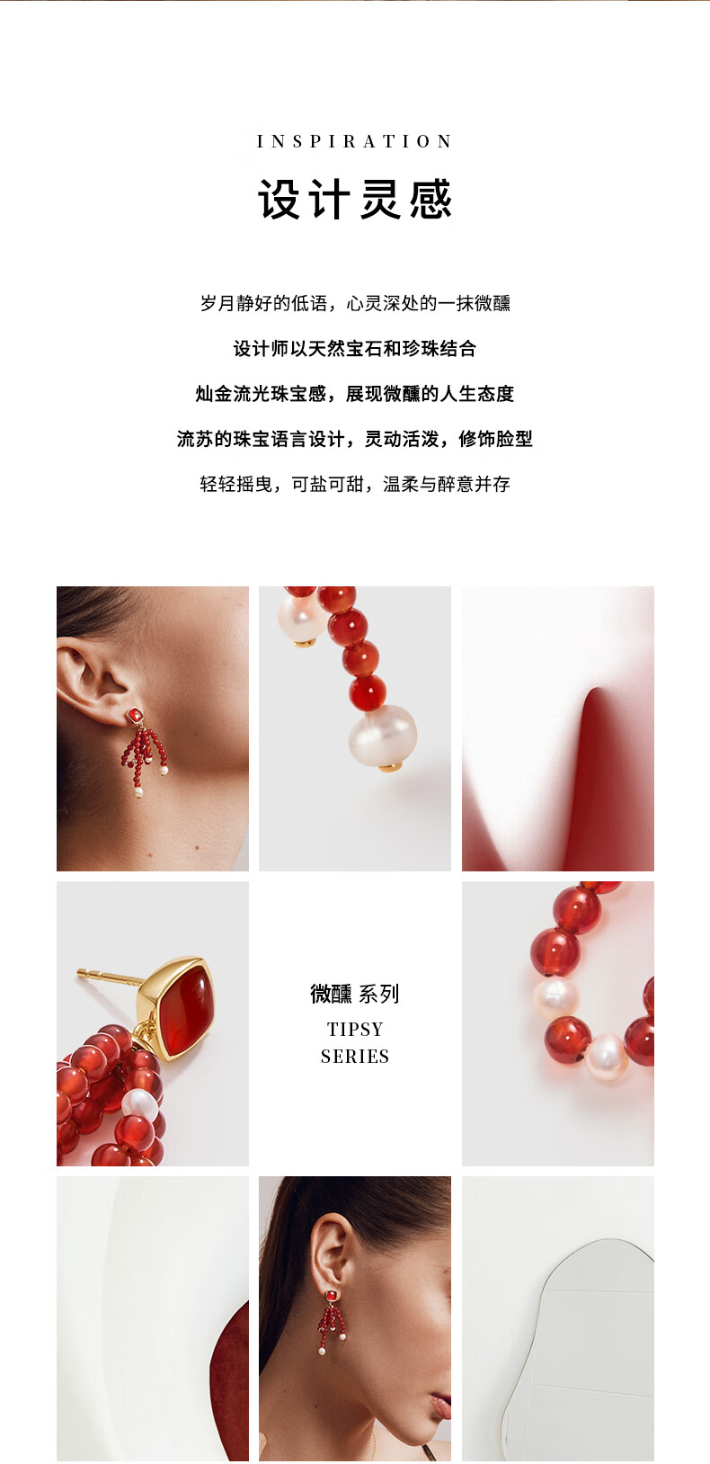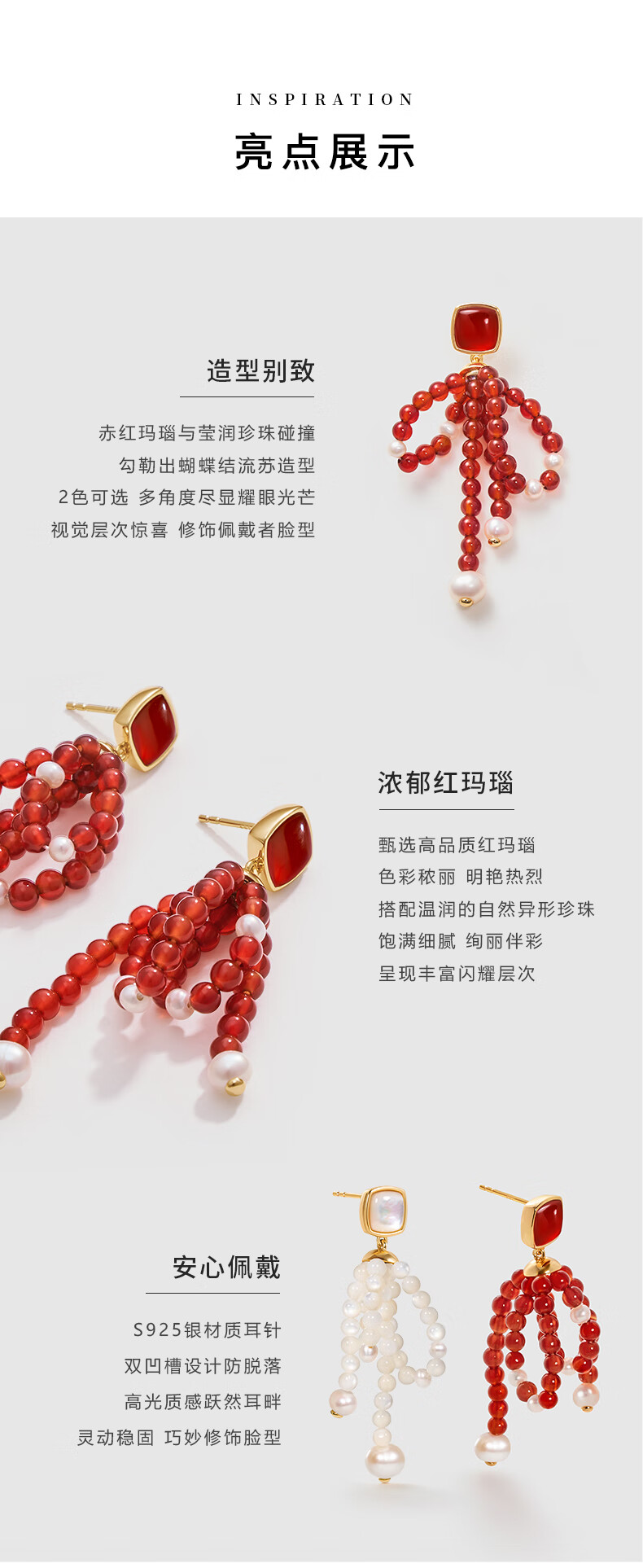 Amber Lollipop珍珠耳环女士小众感红玛瑙流苏耳坠新年情人节生日礼物送女友老婆 红色-微醺