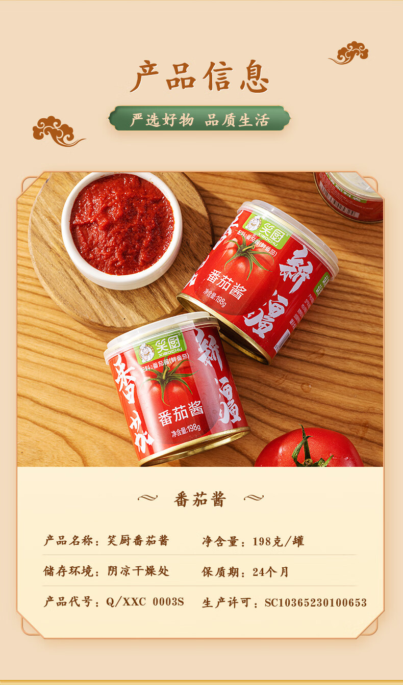 笑厨(XIAOCHU)新疆番茄酱198g*1罐装家用轻食番茄膏0脂肪0添加意面酱儿童可食用