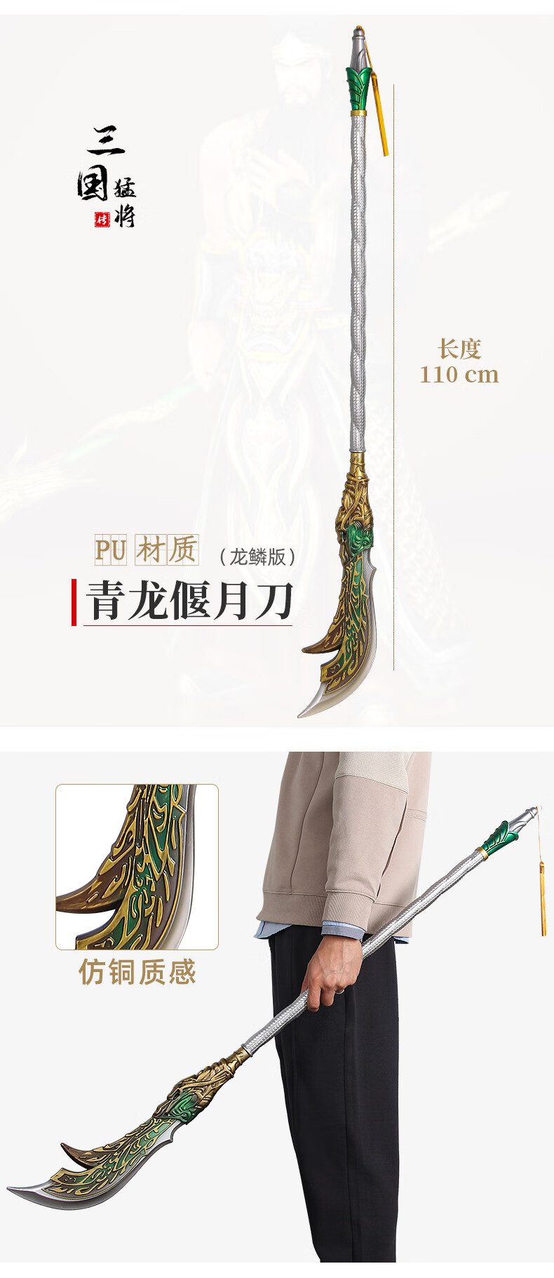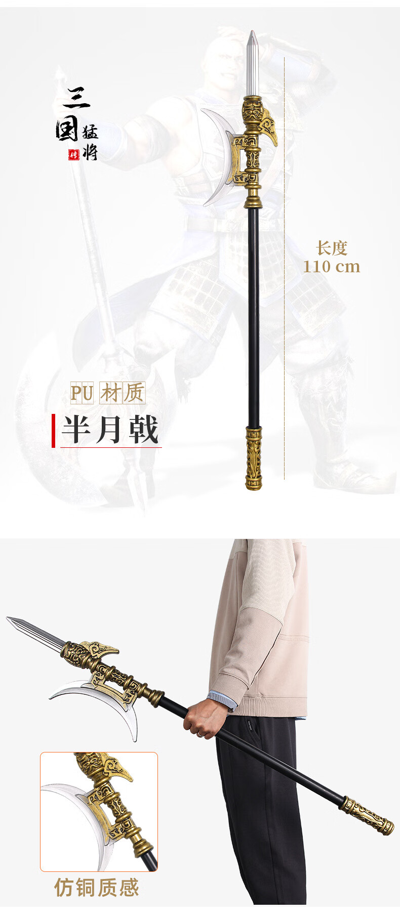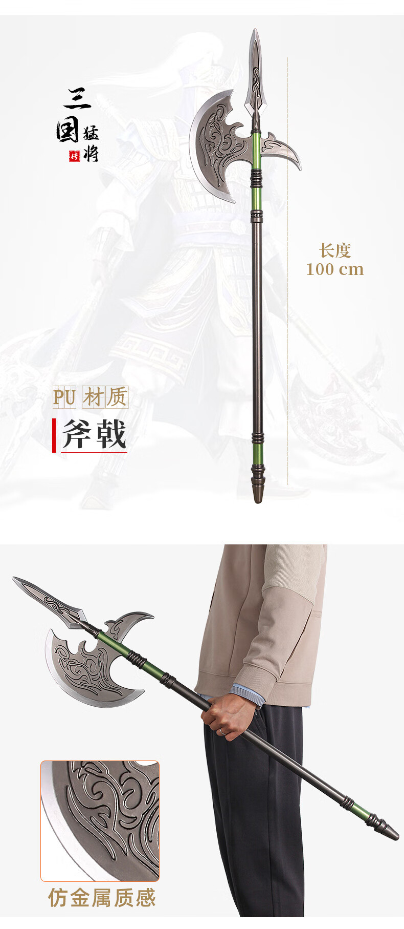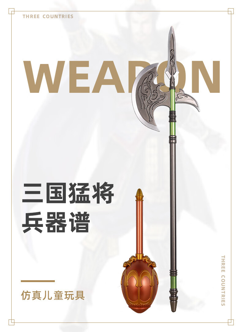 关羽青龙偃月刀大刀宝剑儿童玩具武器三国古代兵器模型PU软胶材质 张辽-战斧(100cm)