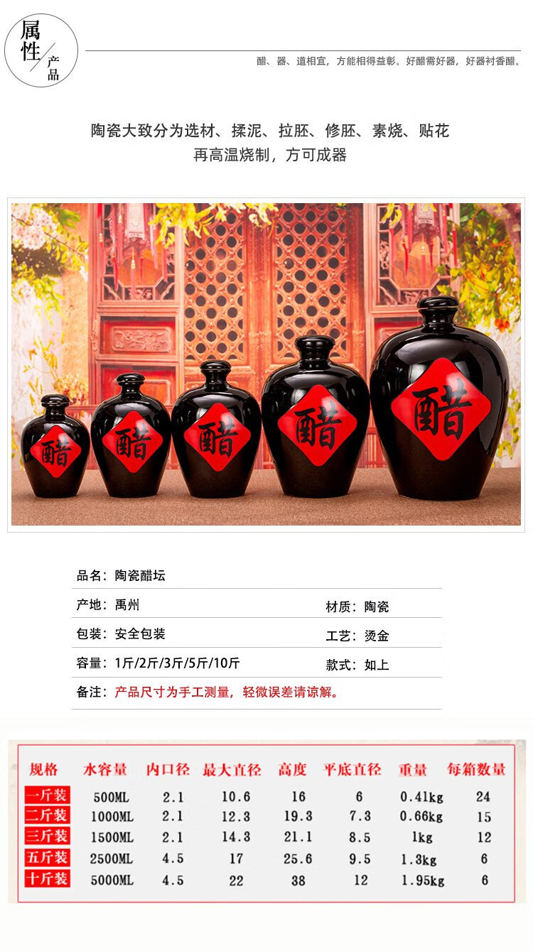 半斤1斤2斤三斤五山西老式陶瓷醋坛子空礼盒醋罐瓶子装醋的小醋壶 100ml黑醋坛裸瓶 6个