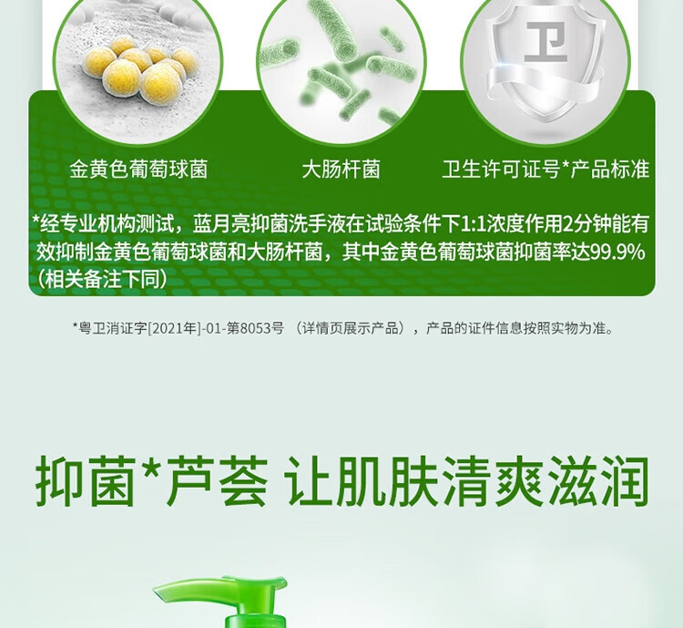 蓝月亮芦荟抑菌洗手液 抑菌率99.9% 清爽滋润 温和配方 300g*3瓶