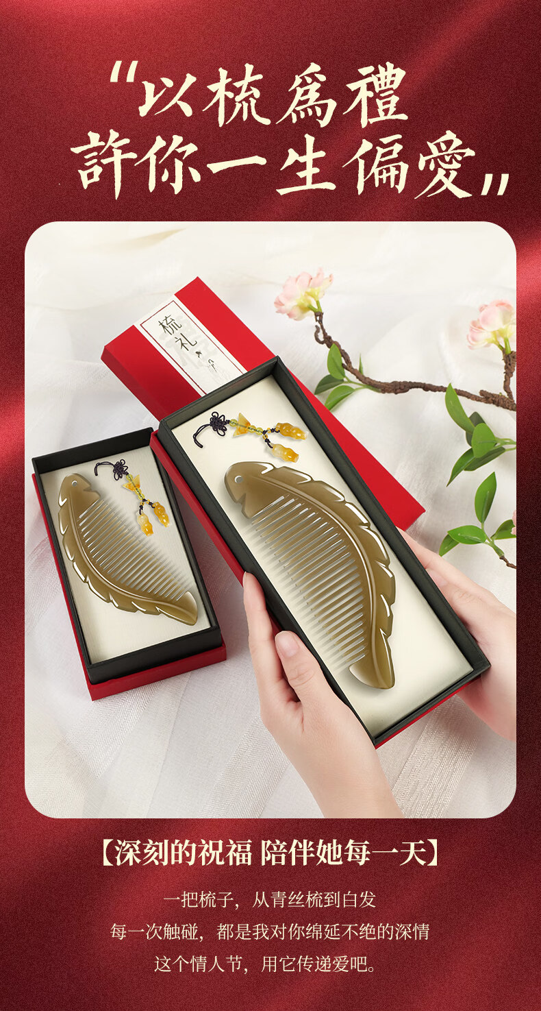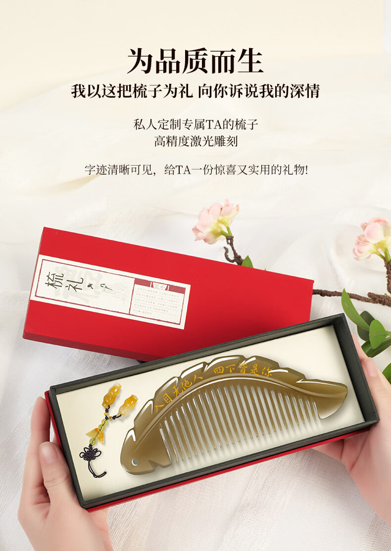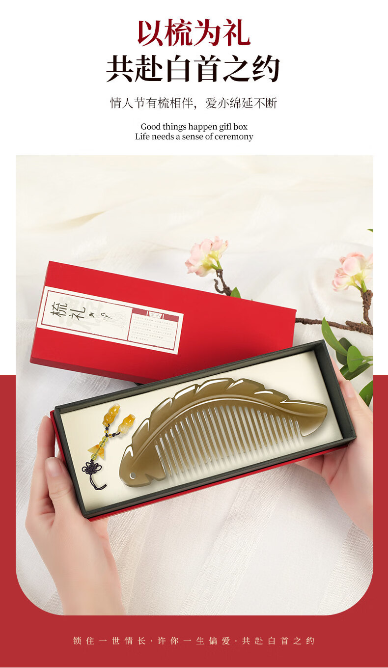 谭木匠母亲节礼物实用送妈妈牛角梳子女友老婆按摩梳礼盒装生日礼物 母亲节礼物【送礼盒+收纳袋+精油】