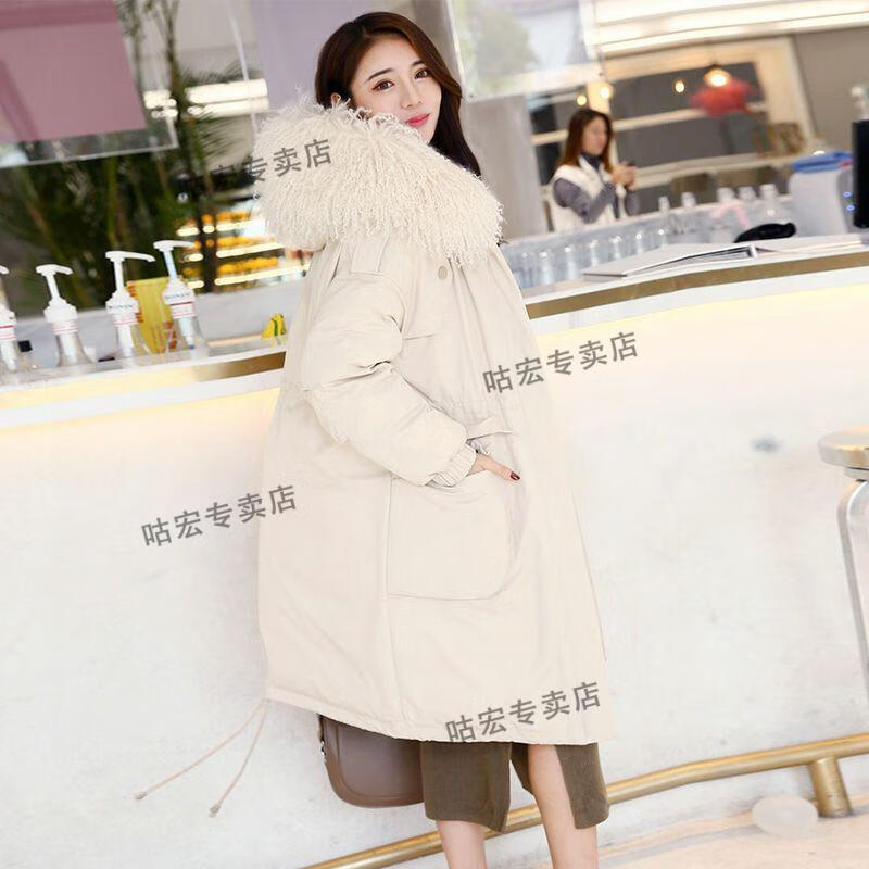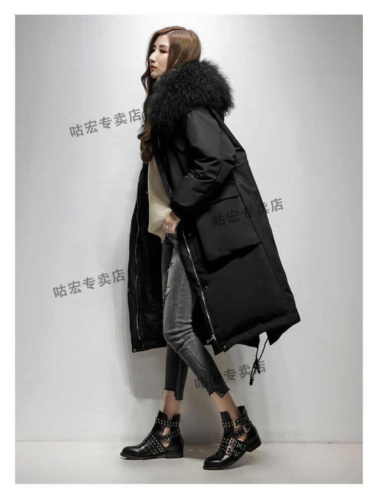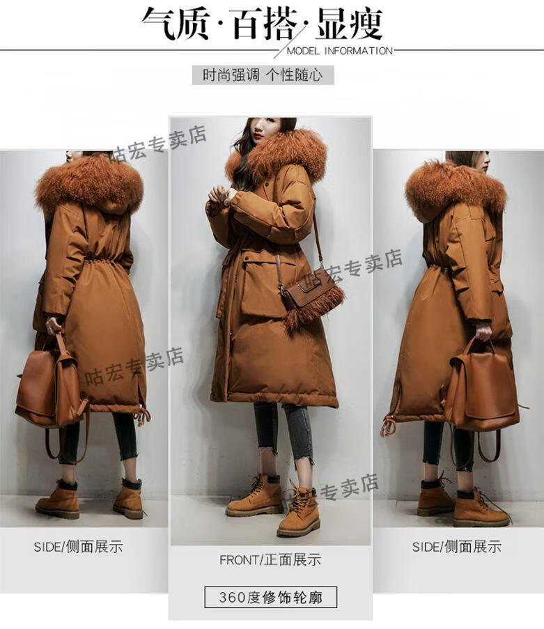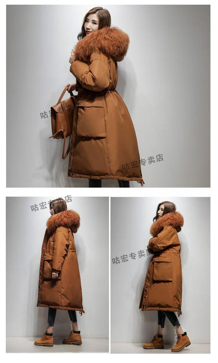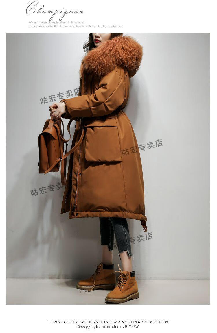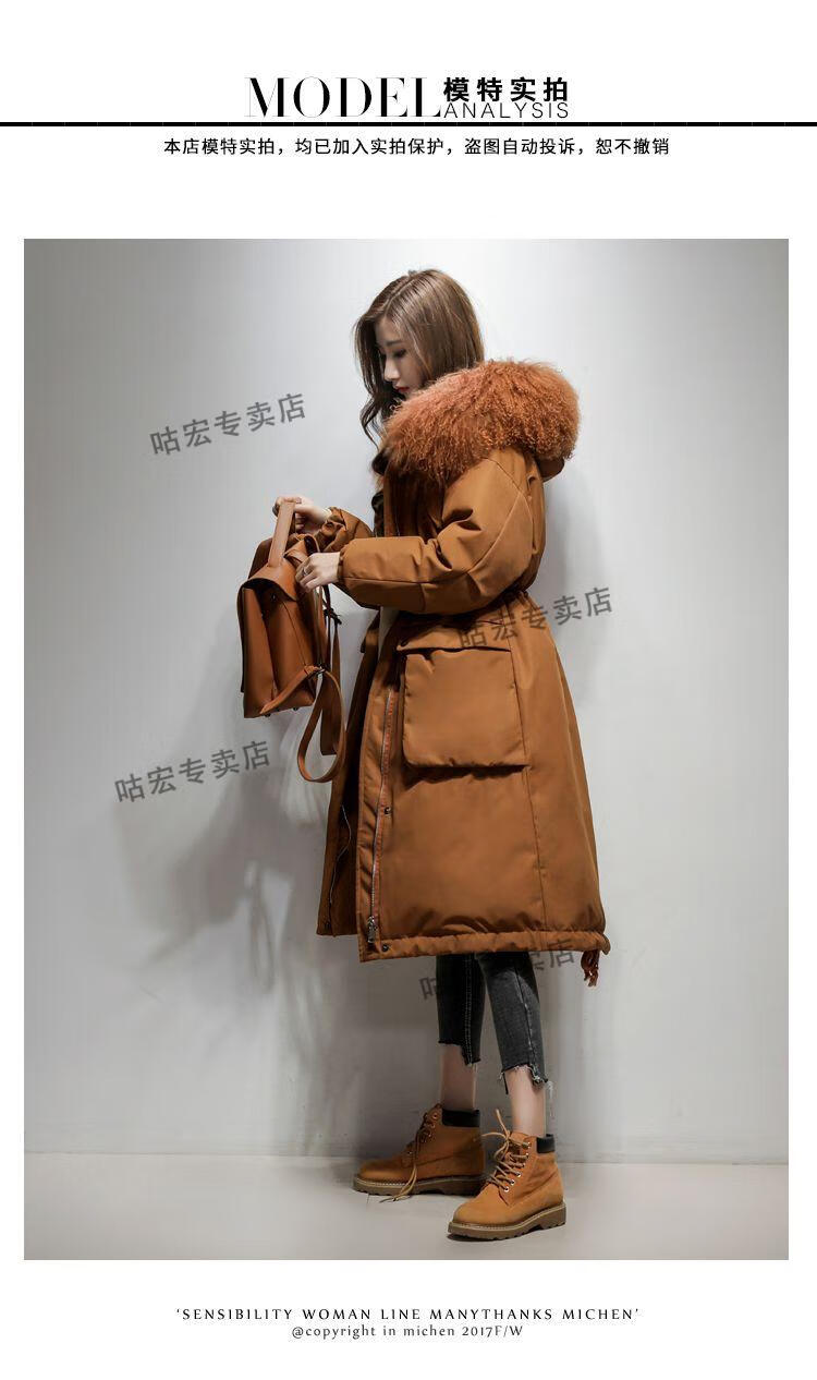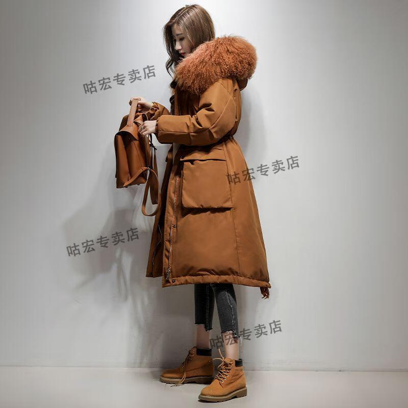 雅鹿羽绒服2026轻薄新款大毛领长款服女长过膝韩版收腰显瘦时尚工装派 焦糖色(滩羊毛) M (110-125斤)