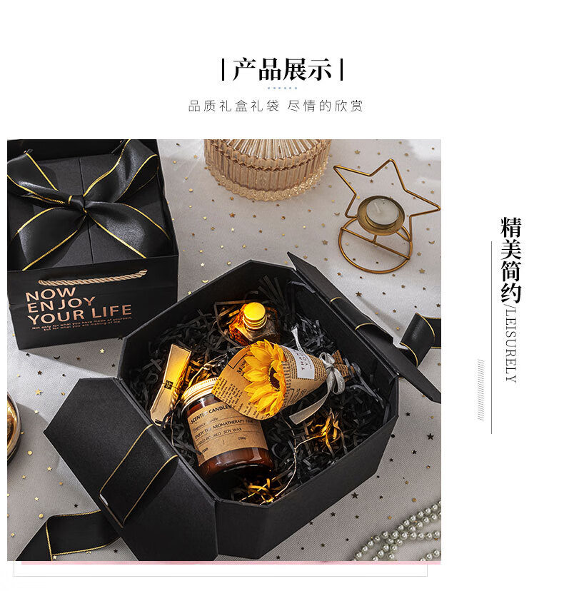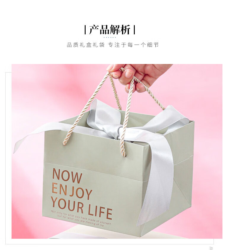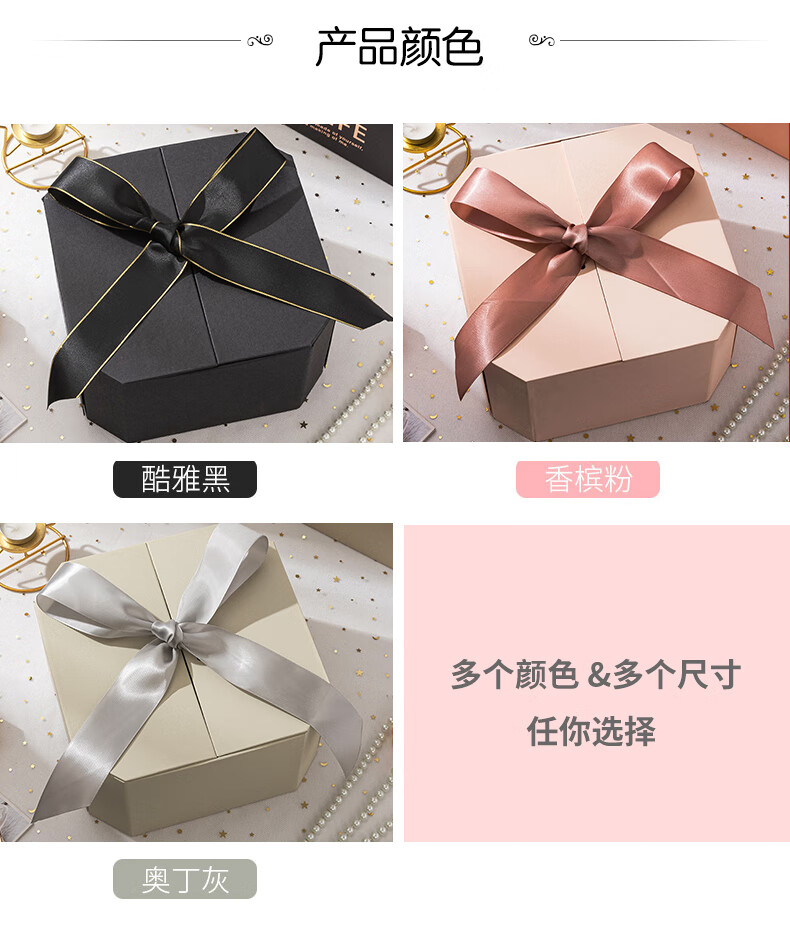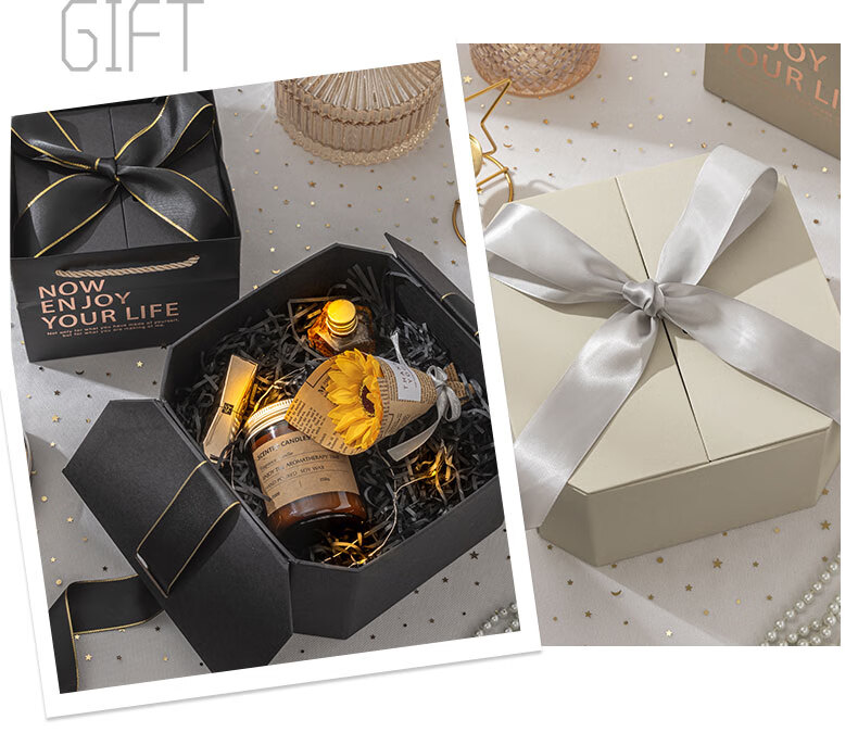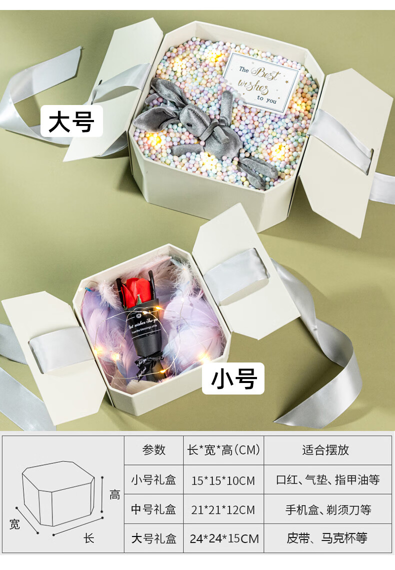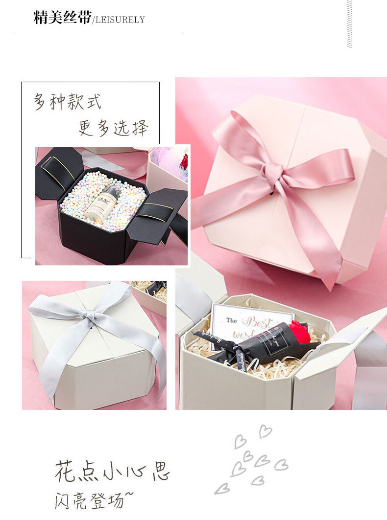 赛乐透品质礼盒空盒包装女友伴手礼品包装盒礼物盒空盒子生 小号15*15*10可装马克 灰八角拉菲草+贺卡无礼袋