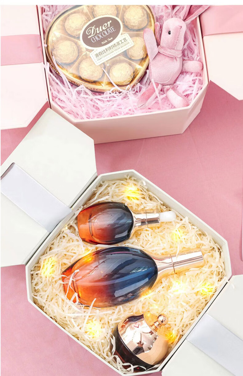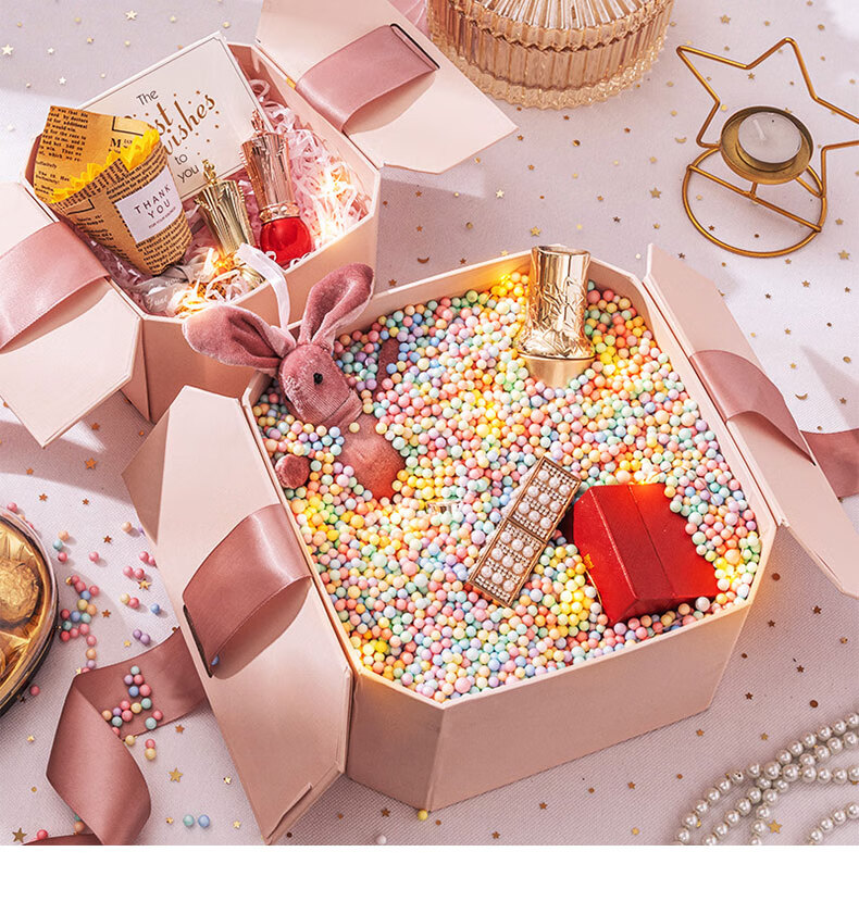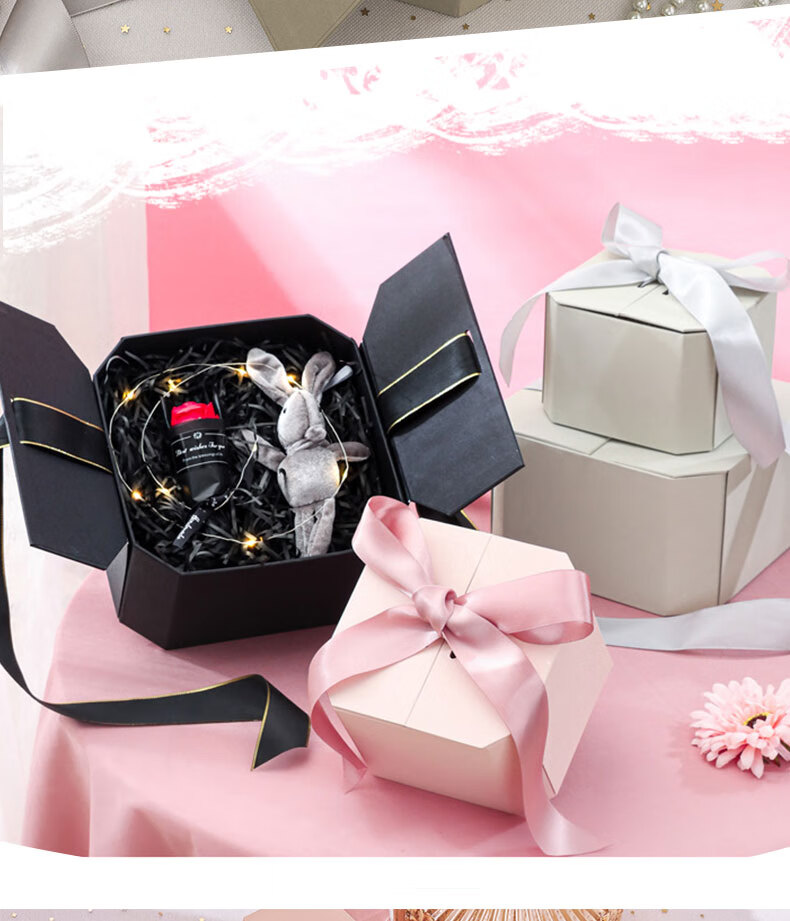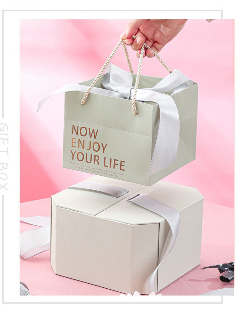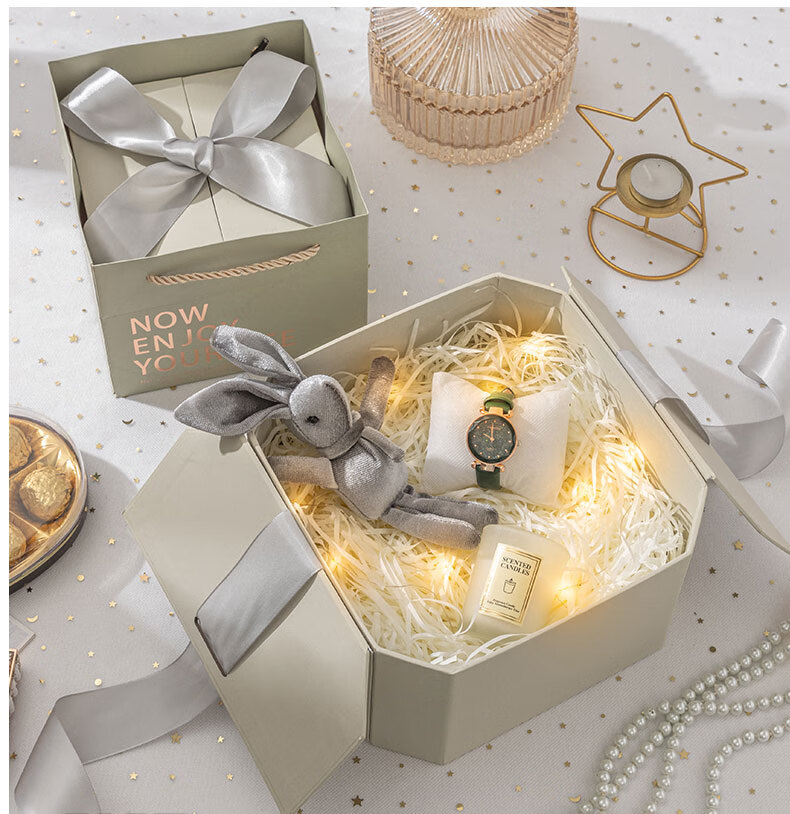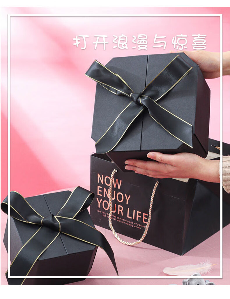 赛乐透品质礼盒空盒包装女友伴手礼品包装盒礼物盒空盒子生 小号15*15*10可装马克 灰八角拉菲草+贺卡无礼袋