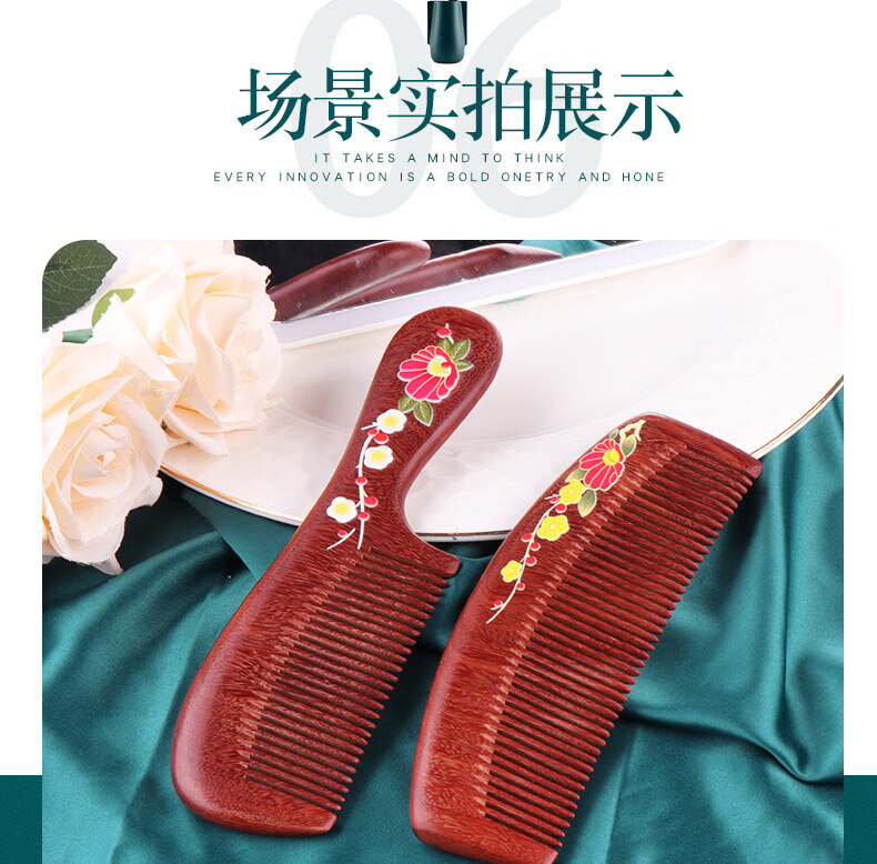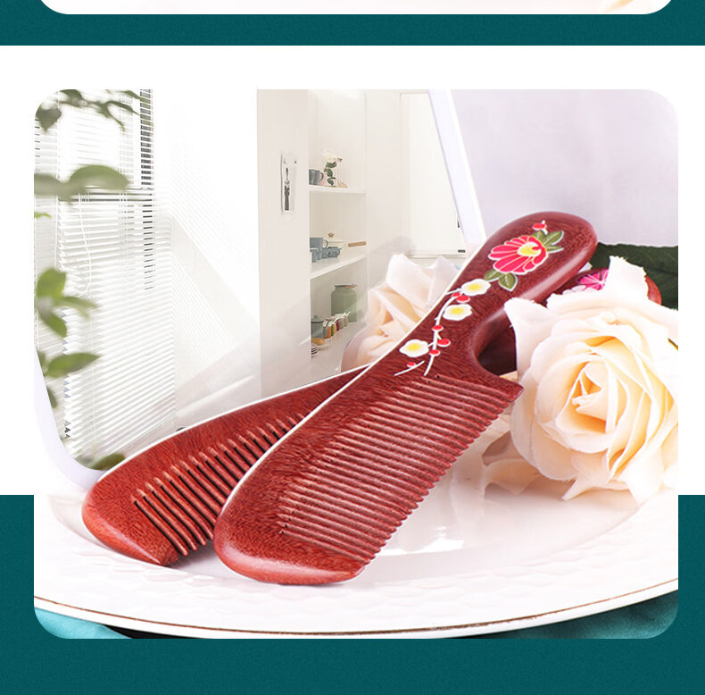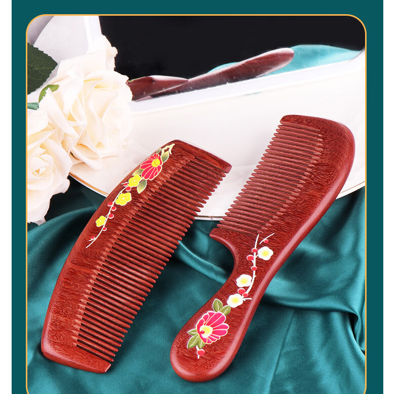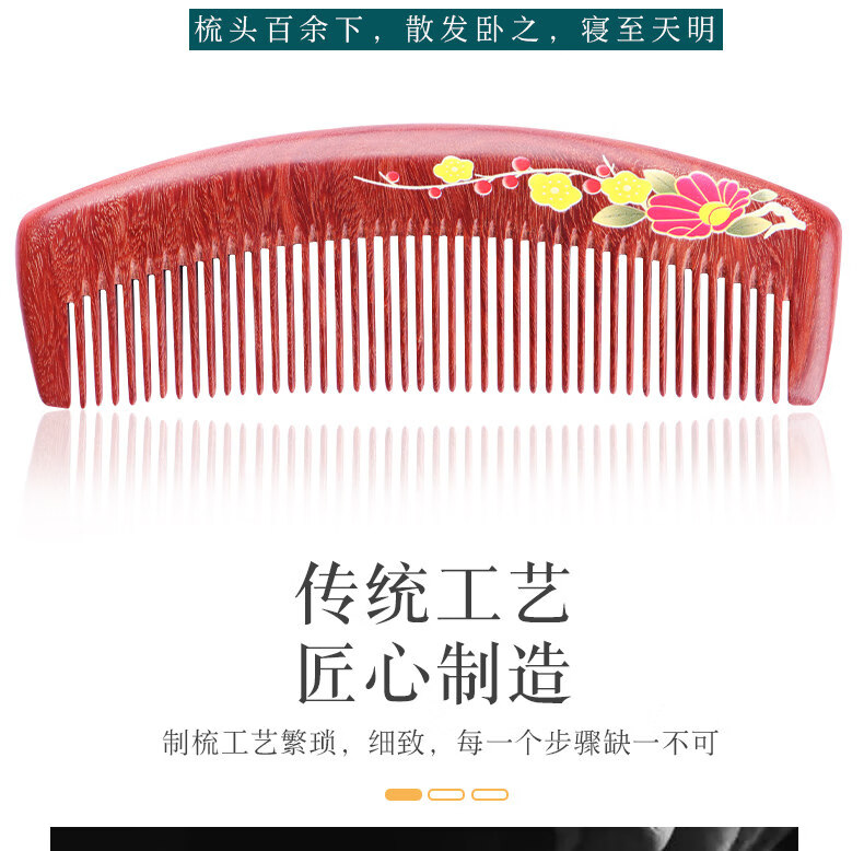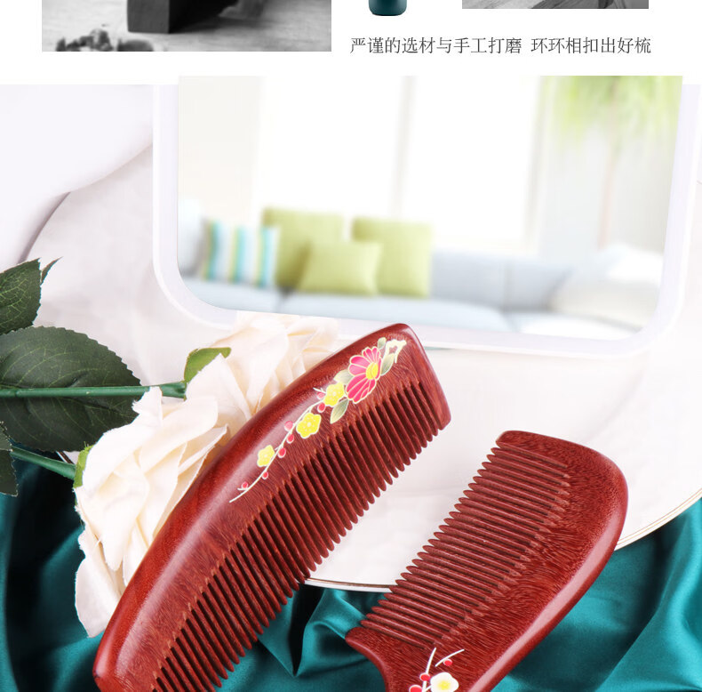 谭木匠檀香木梳子天然静电防檀木梳脱发按摩男女士专家用顺发细密齿 18cm金丝红檀木梳-梨花彩绘礼盒