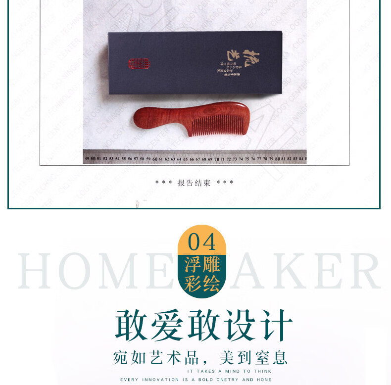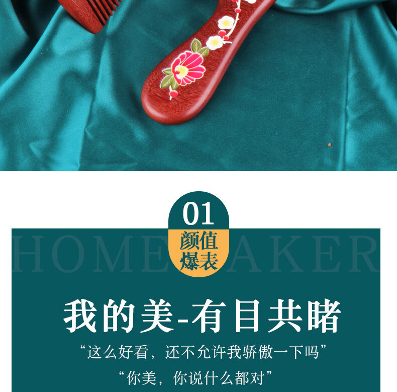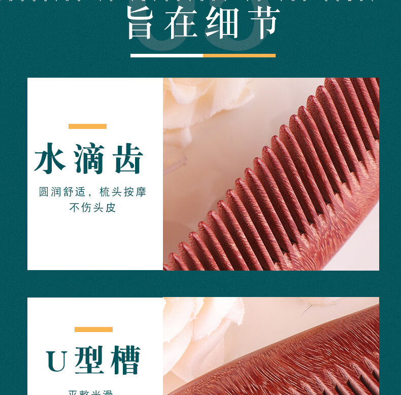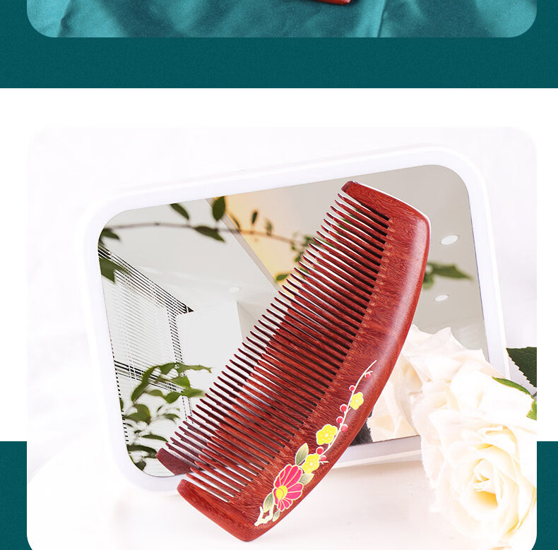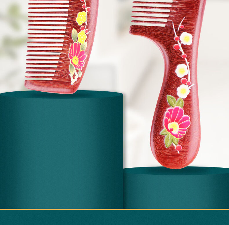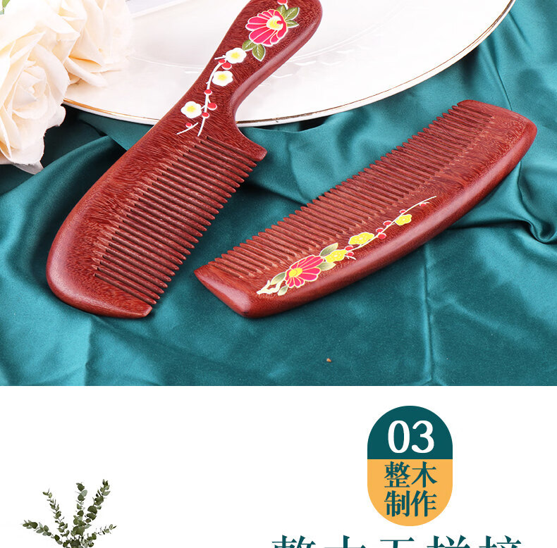 谭木匠檀香木梳子天然静电防檀木梳脱发按摩男女士专家用顺发细密齿 18cm金丝红檀木梳-梨花彩绘礼盒