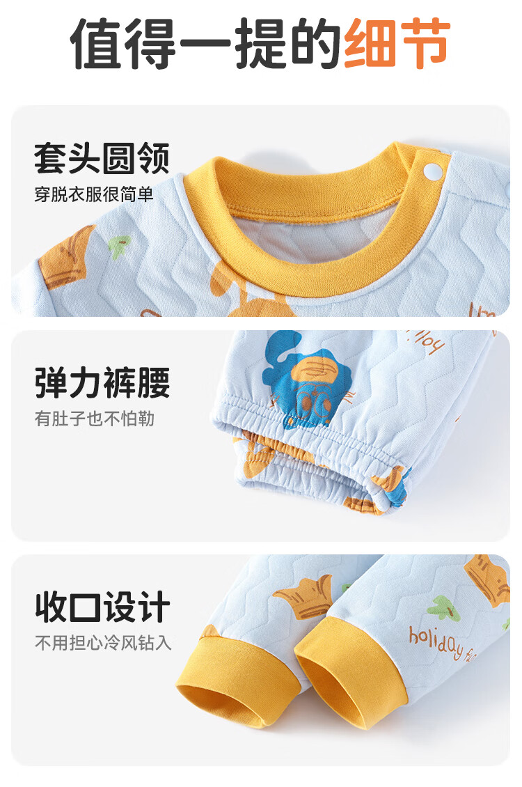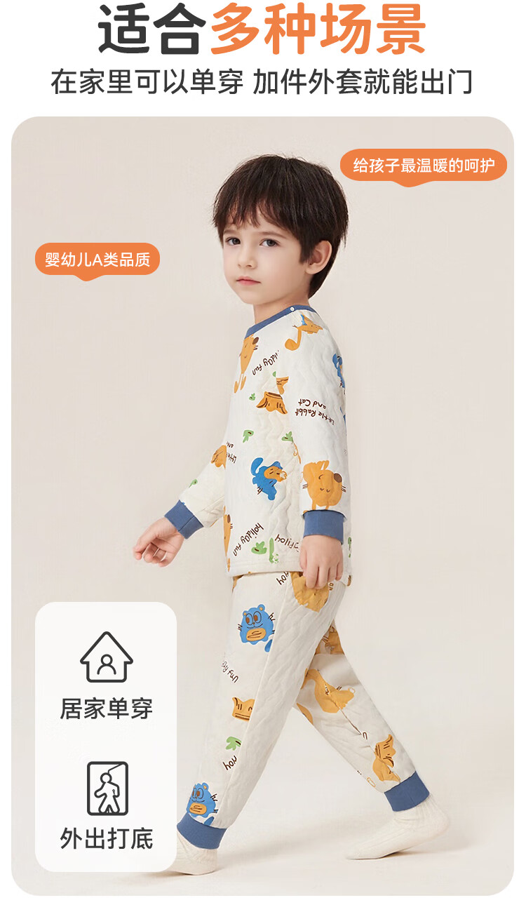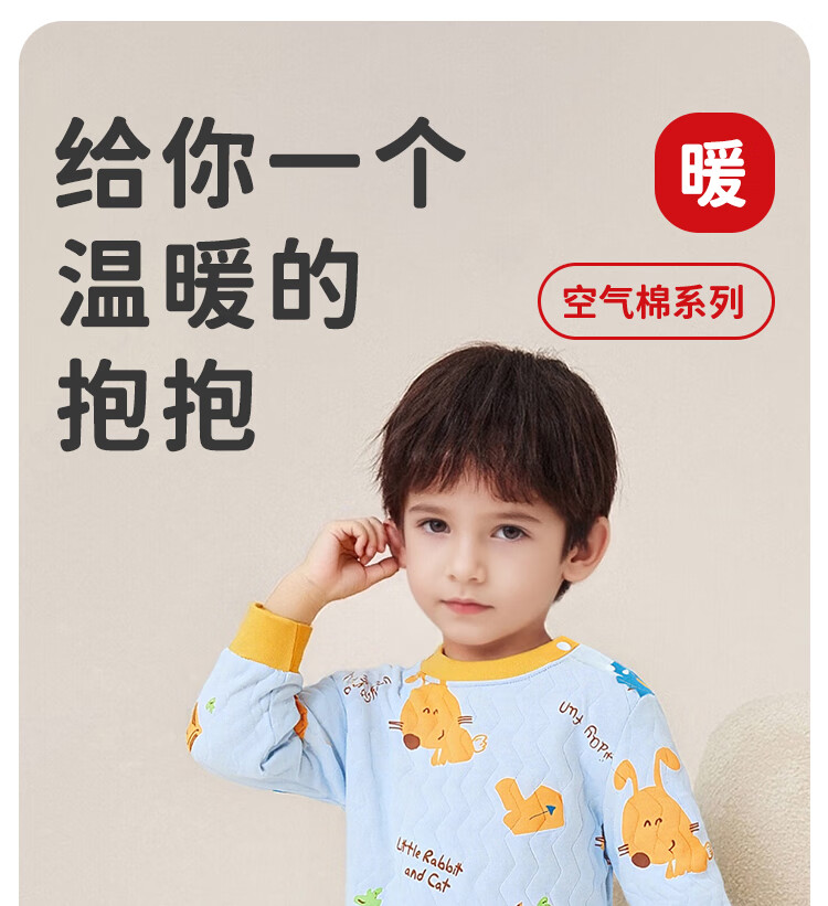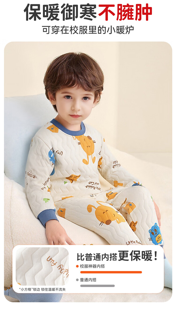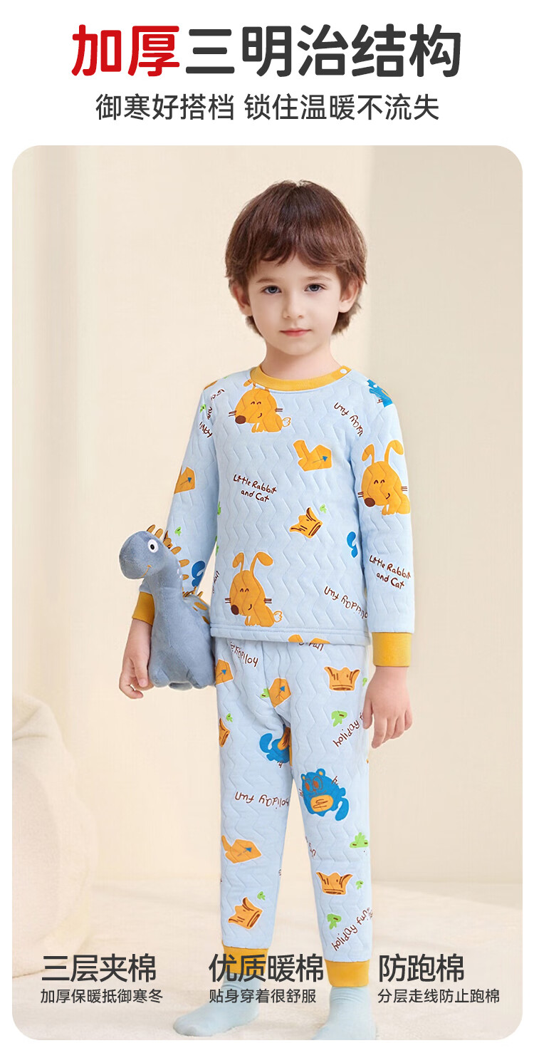 俞兆林(YUZHAOLIN)儿童保暖内衣男童秋衣秋裤套装冬季夹棉加厚睡衣童装 猫兔赛跑